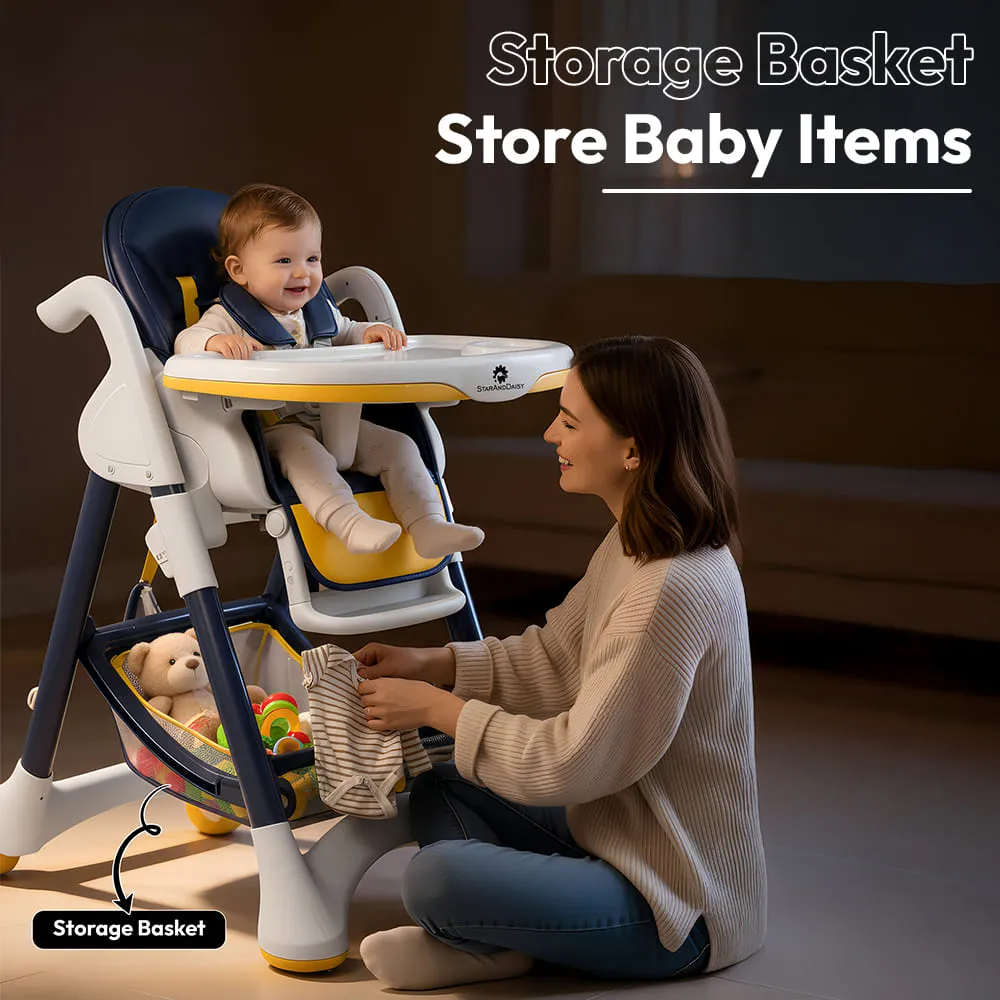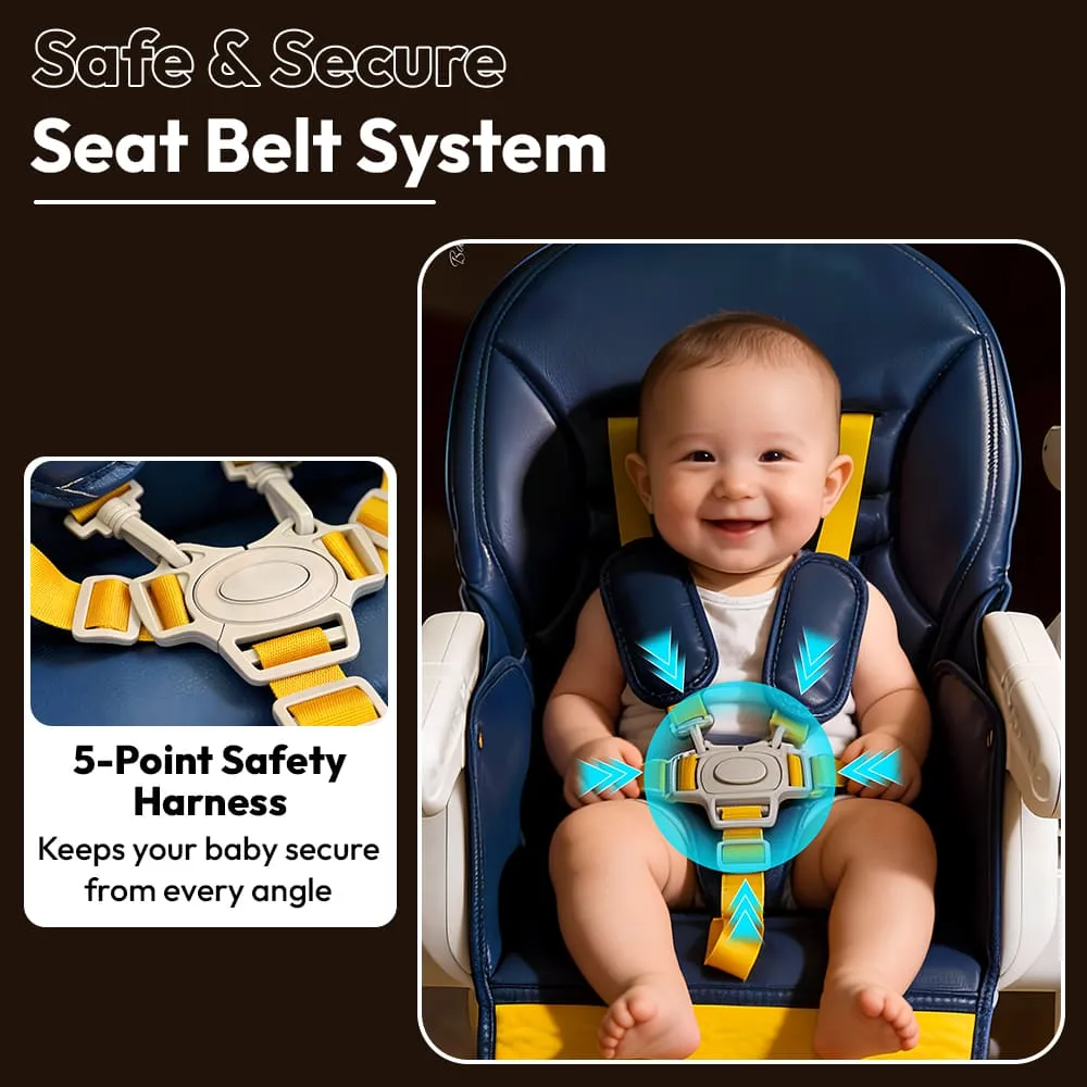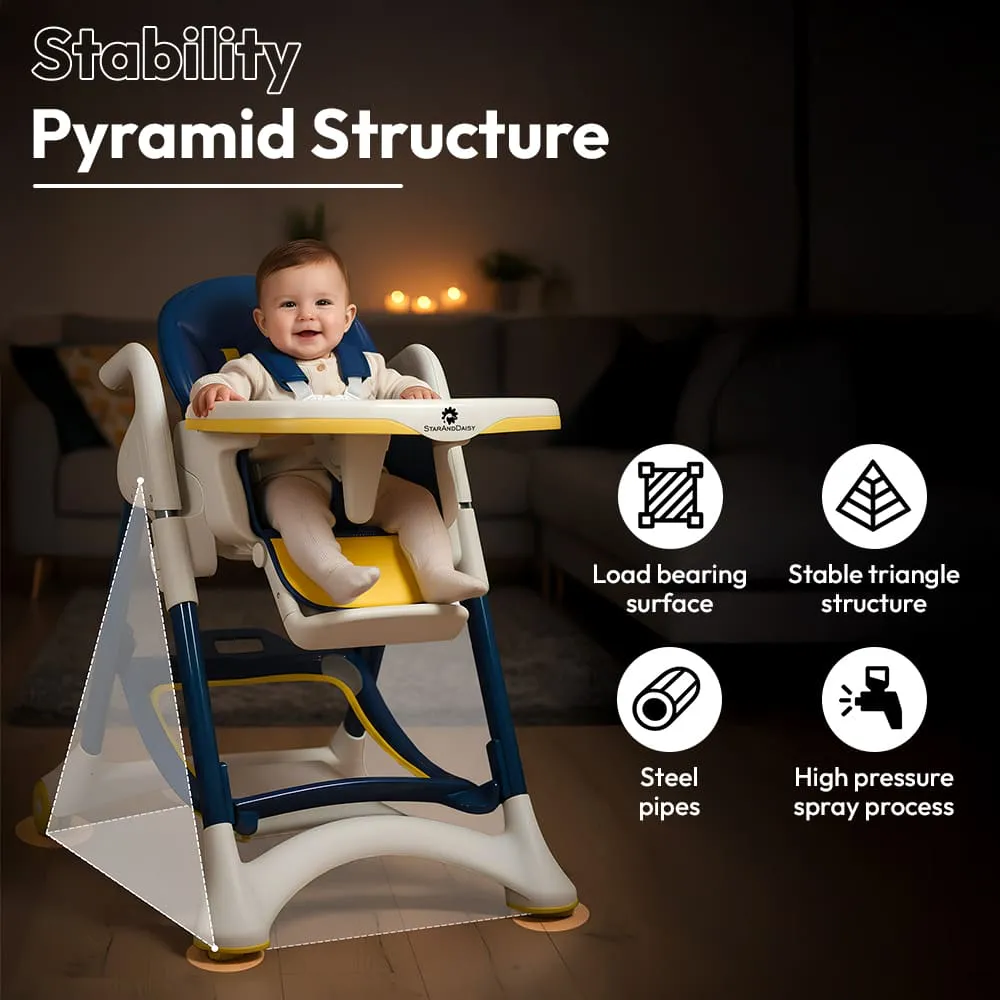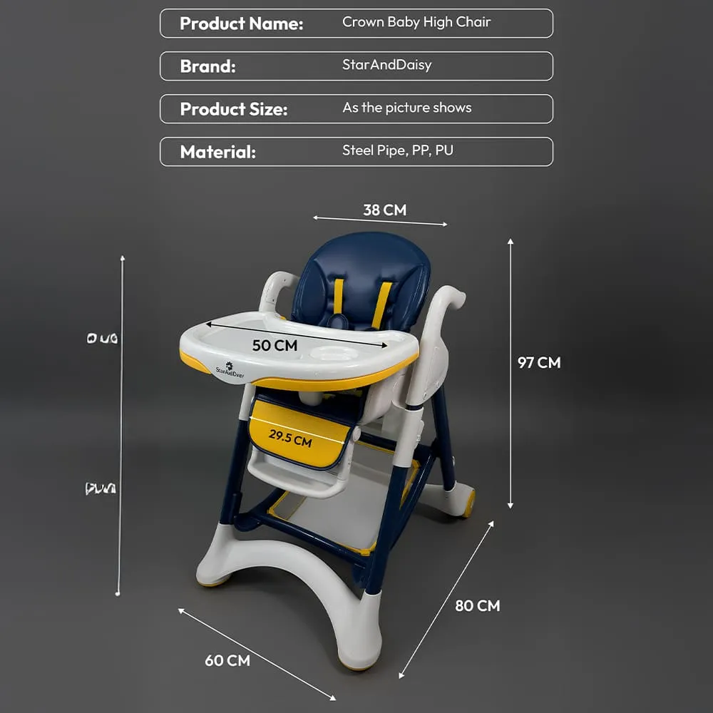 Crowned Baby High Chair by StarAndDaisy for Kids With 5-level Seat Adjustment And 5-Point Safety Belt, Kids Age 0.5 Yrs to 6 Yrs Eat, Play & Rest (Yellow & Blue)
