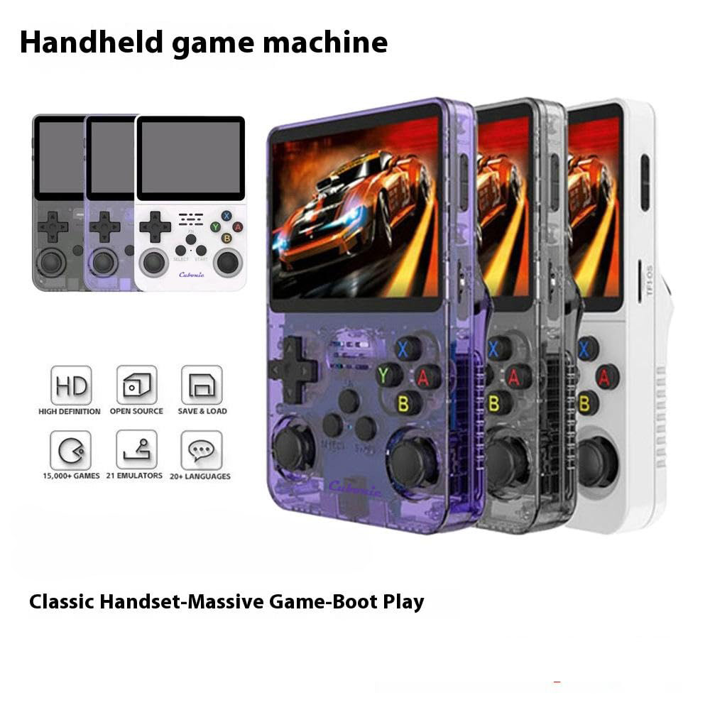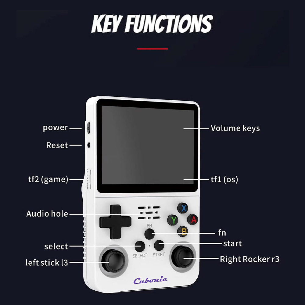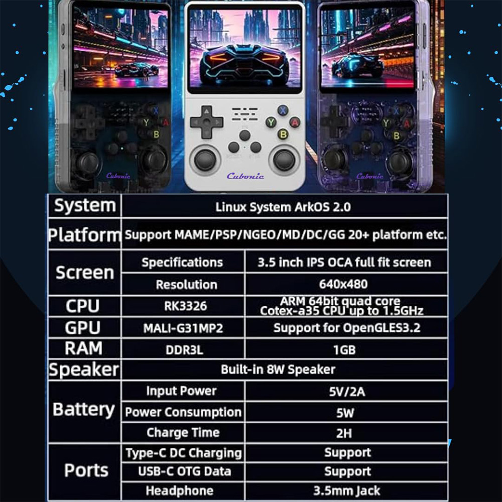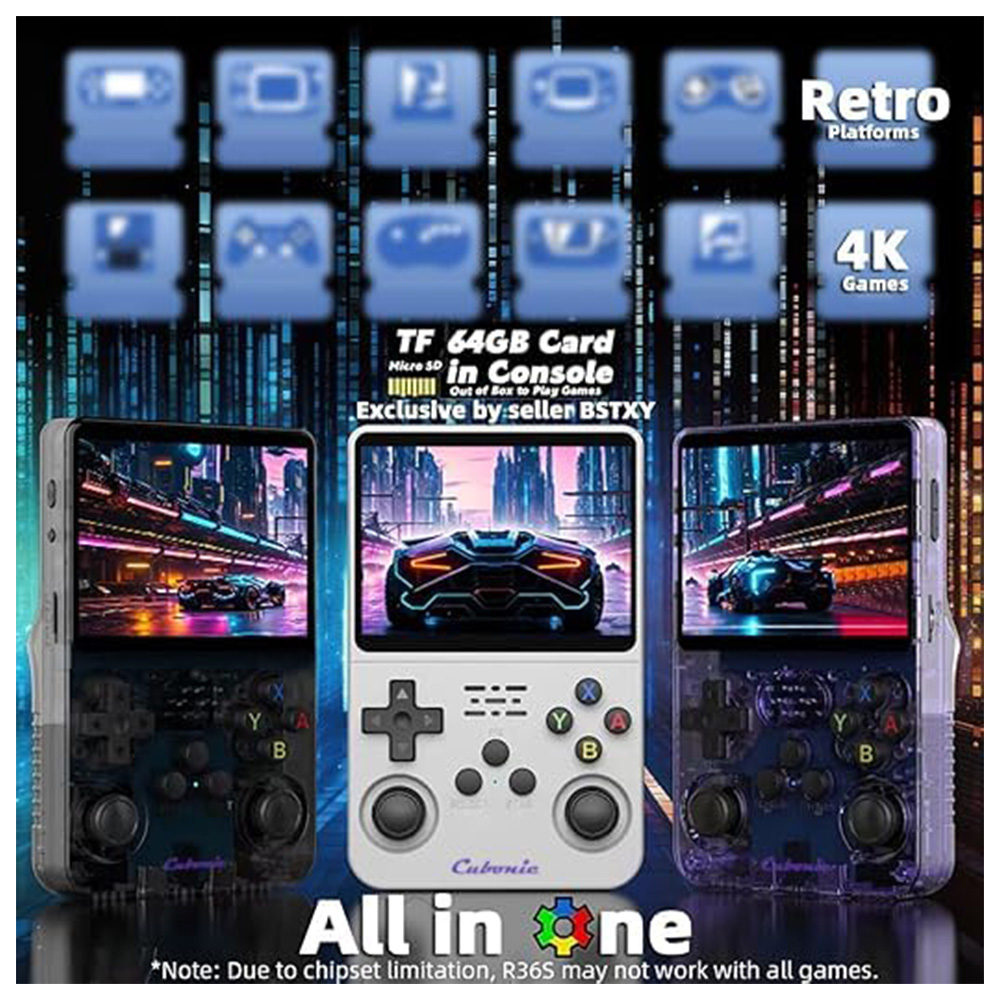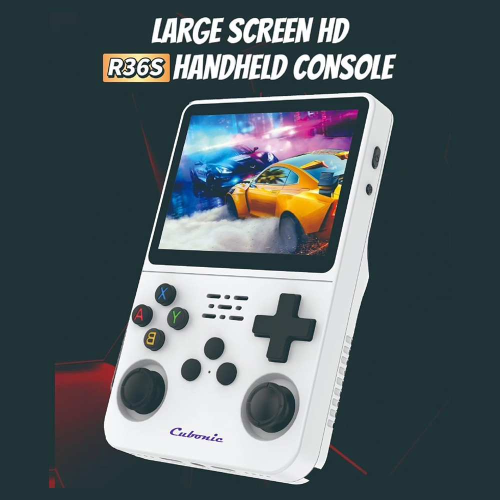 Cubonic CrystalPlay R36S Retro Console – 3.5” Display, Transparent Black, 64GB, USB-C, Speakers, Multi-Emulator Support – White