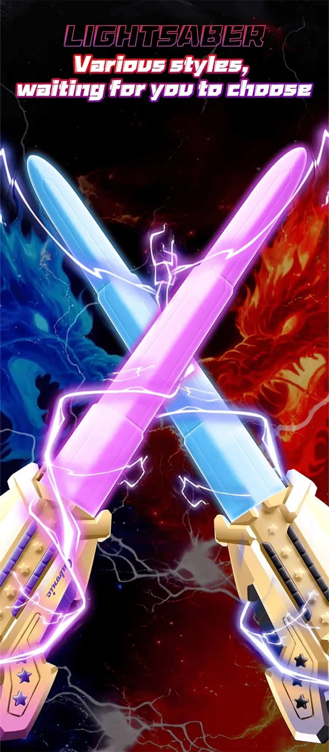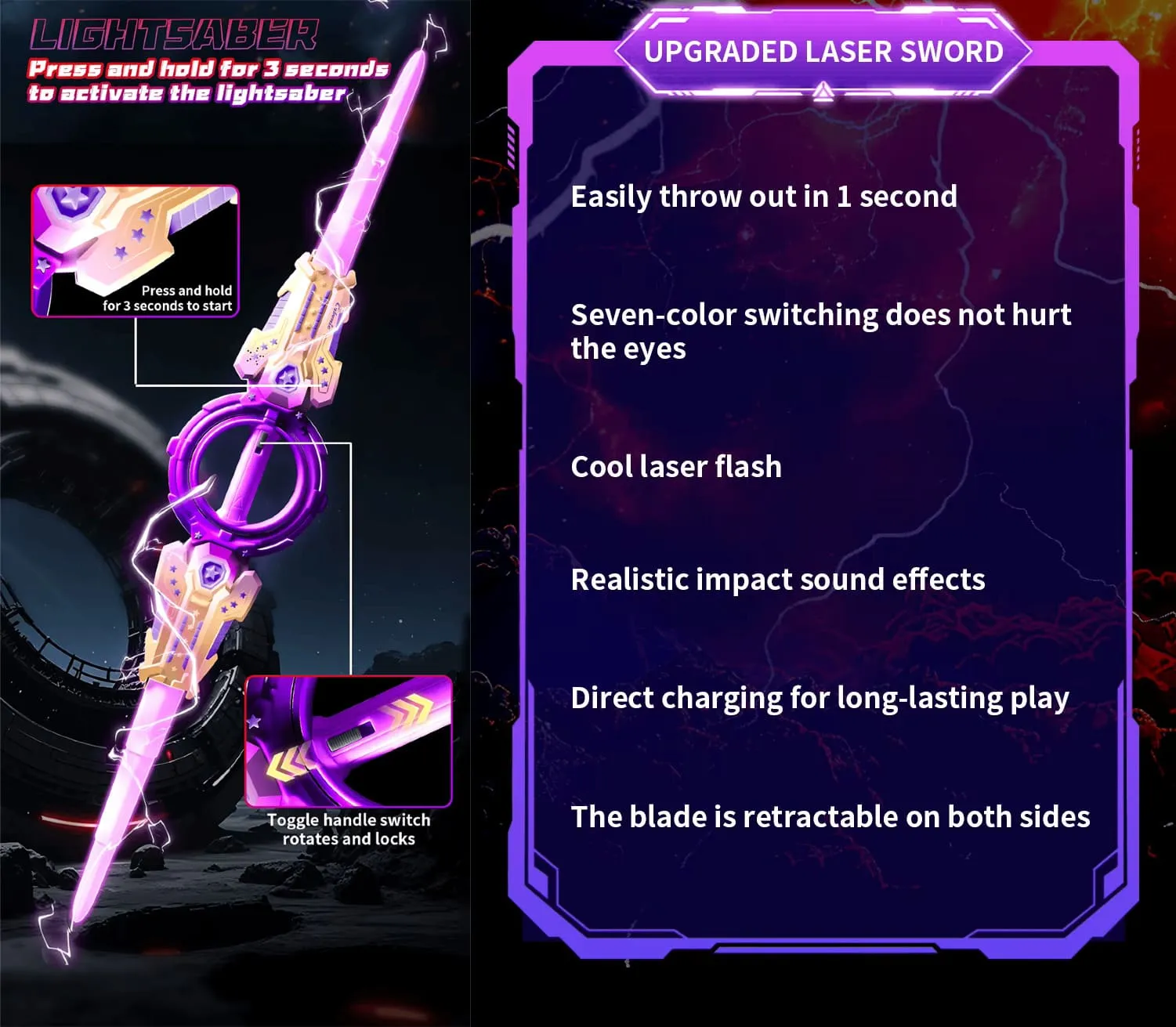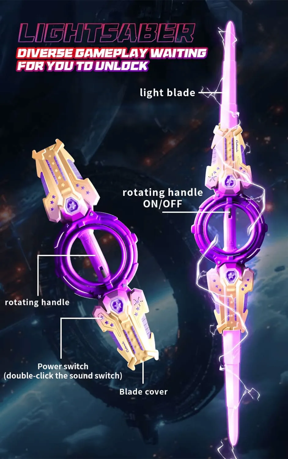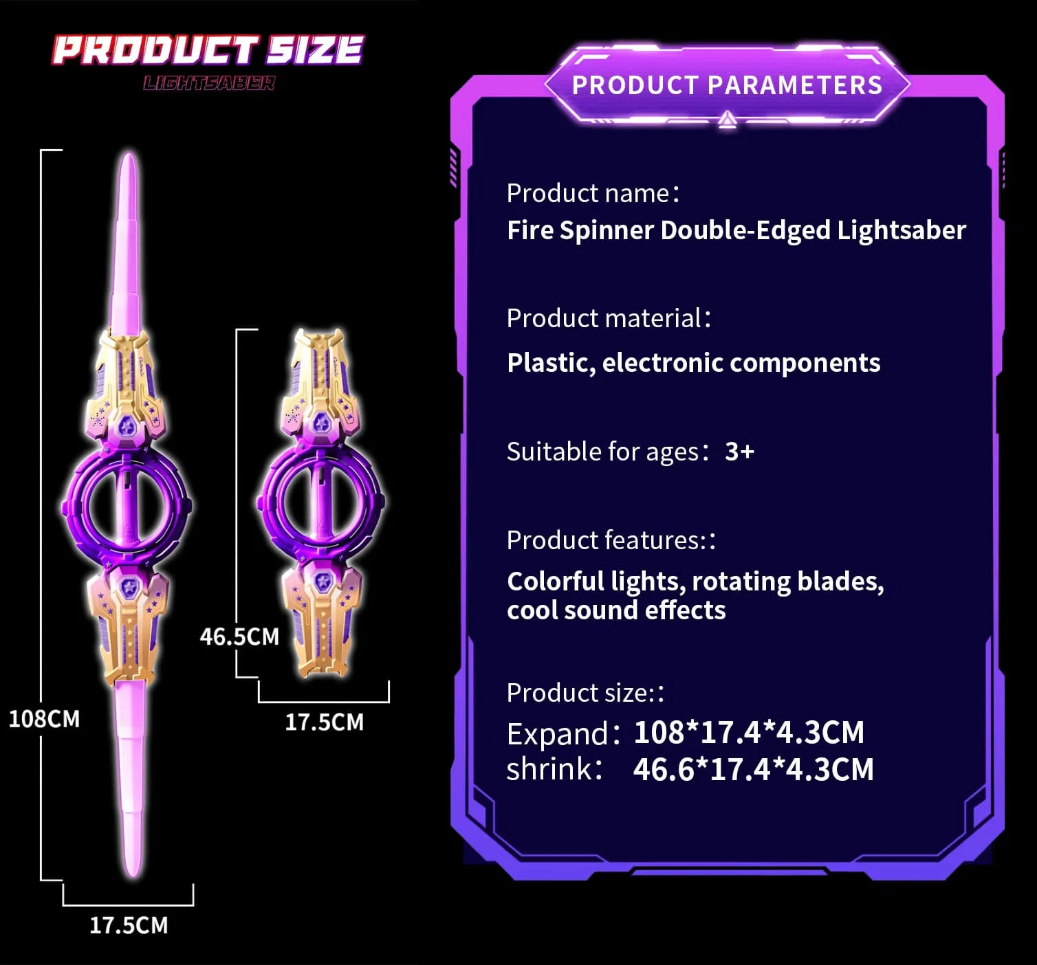 Cubonic Blazion Light Up Sword, Flashing Dueling Sabers with FX Sound, Fire Spin Sword Double-Edged, 7 Light Color War Warriors Cosplay Toy