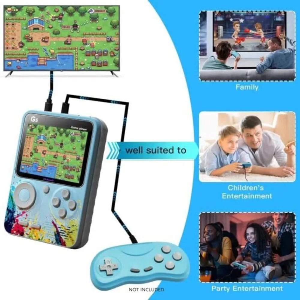 Cubonic G5 Retro Handheld Console – 3” LCD Display, 500+ Games, TV Output, 1020mAh Battery, Compact Design – Blue