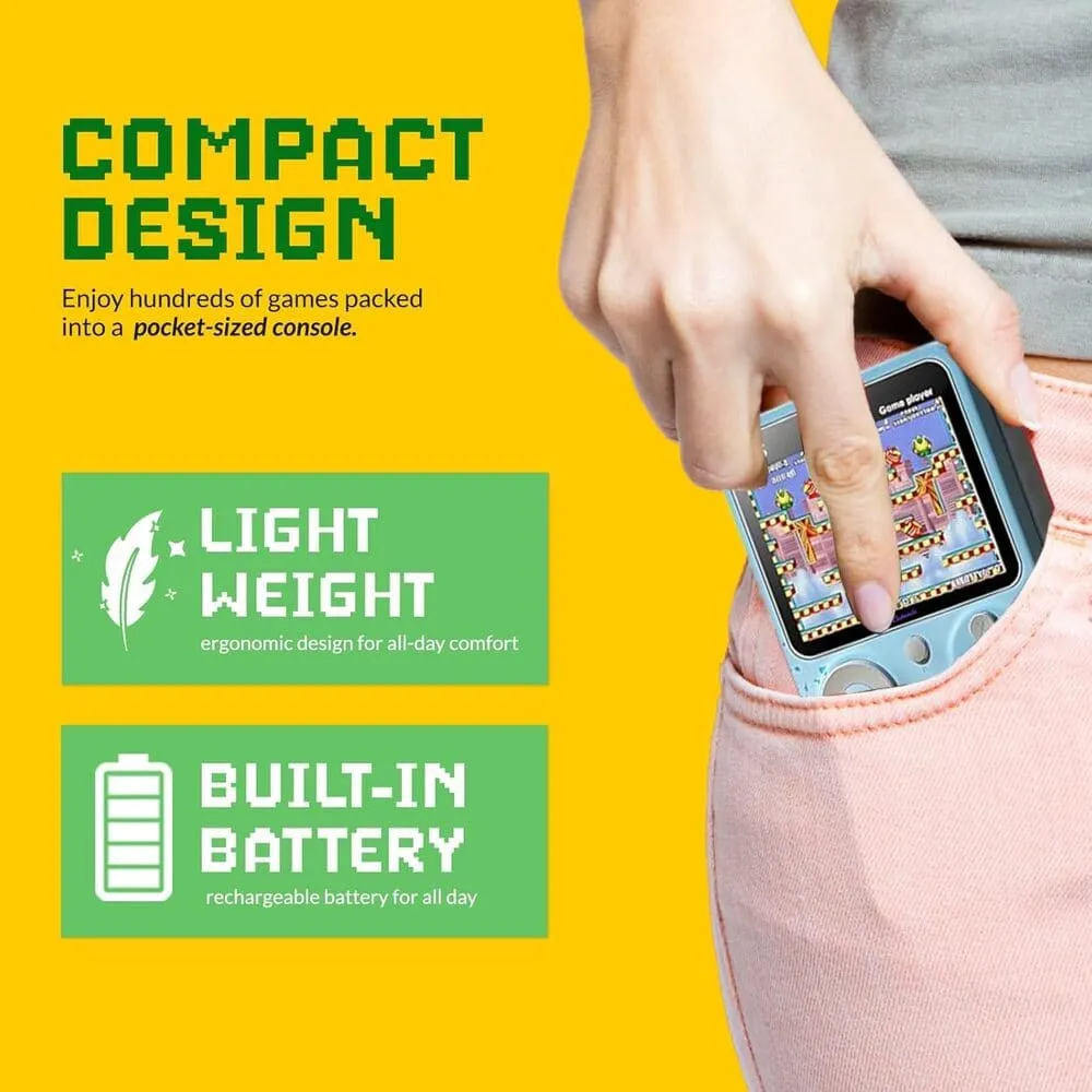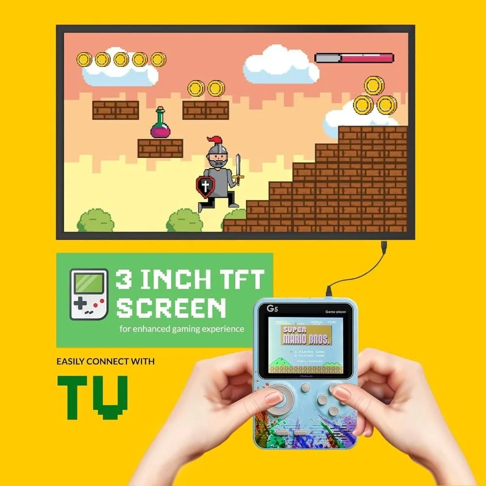 Bring the arcade to your pocket with the Cubonic G5 Handheld Retro Gaming Console. Featuring a vibrant 3-inch LCD screen and over 500 built-in classic games, the G5 is your ticket to endless entertainment on the go. With its eye-catching splash design and compact build, it’s perfect for kids and adults who love old-school gaming fun.