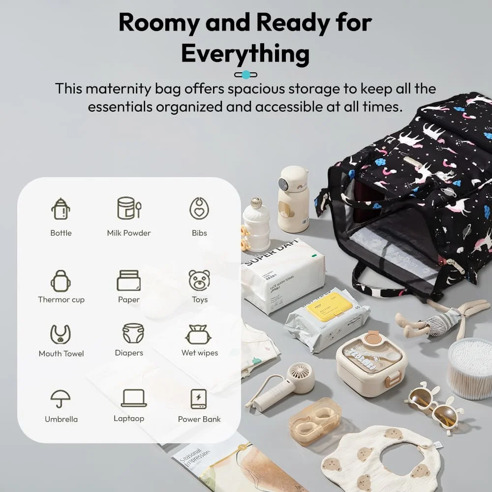 StarAndDaisy Diaper Bag Backpack with Changing Mat, Mothers Travelling Bag with Insulated Pocket & Spacious Compartments – Unicorn Black