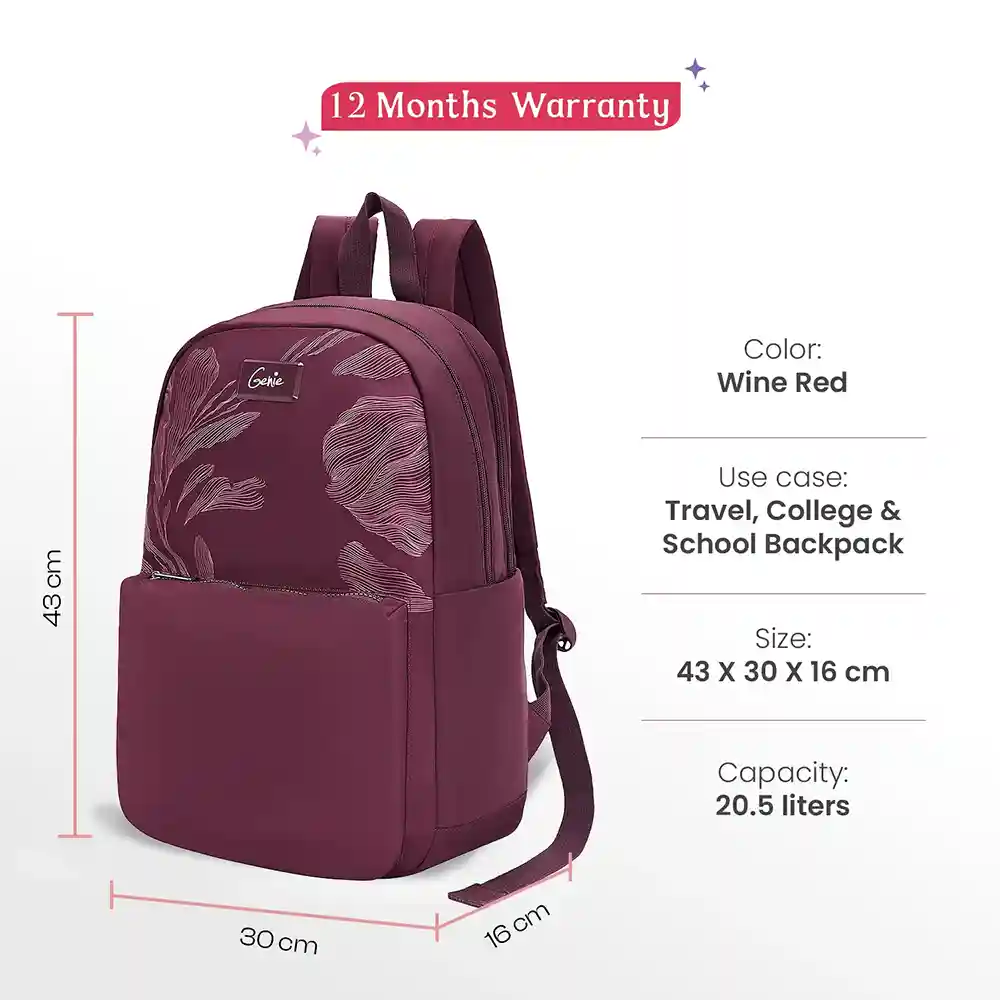 Genie Ashlyn Best Laptop Backpack for Office with Padded Laptop Sleeve, Waterproof Laptop Bag with Two Compartment, Front Pocket, Side Pockets – Wine Red