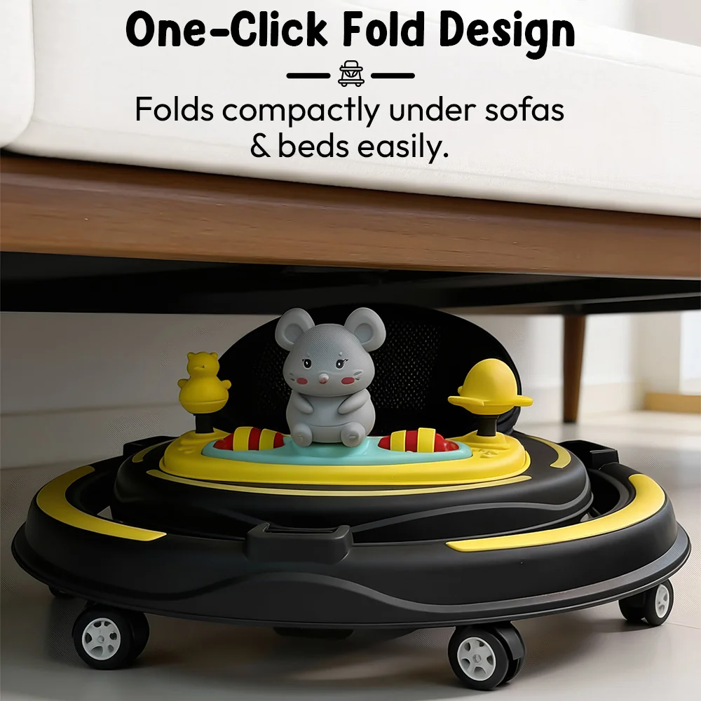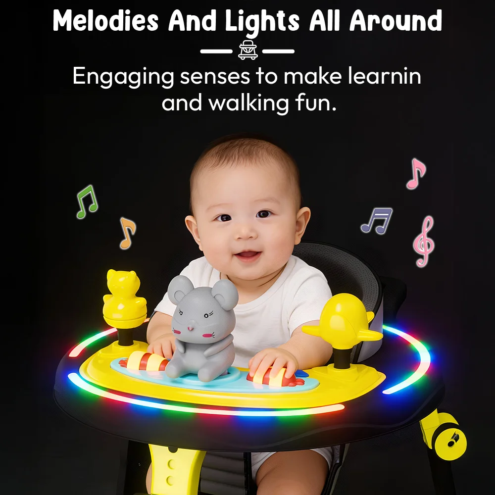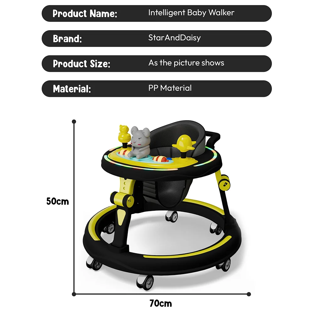 StarAndDaisy Intelligent Baby Walker with Adjustable Heights, Infants walker with Musical Toy Tray & Lights – Yellow Black