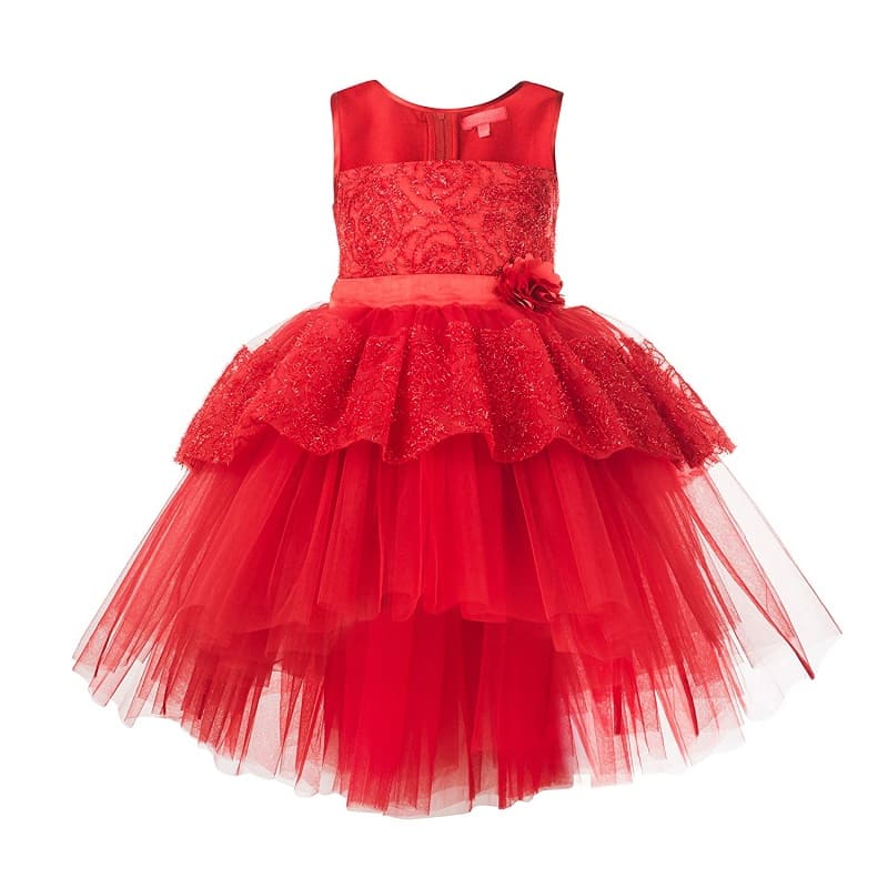 Kids Red High-Low Girls Party Wear Dress