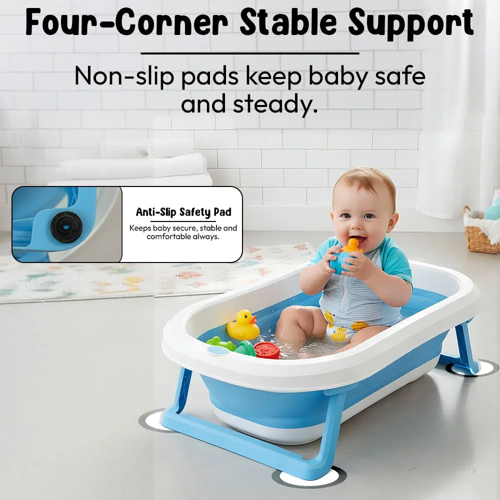 StarAndDaisy Luxe Baby Bath Tub, Foldable Infant Bathtub and Anti-Slip Support, Quick Drain System – Blue