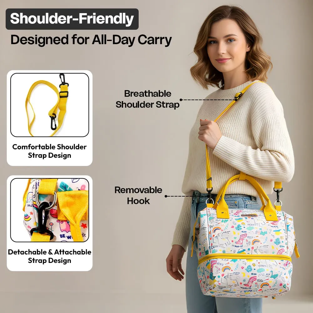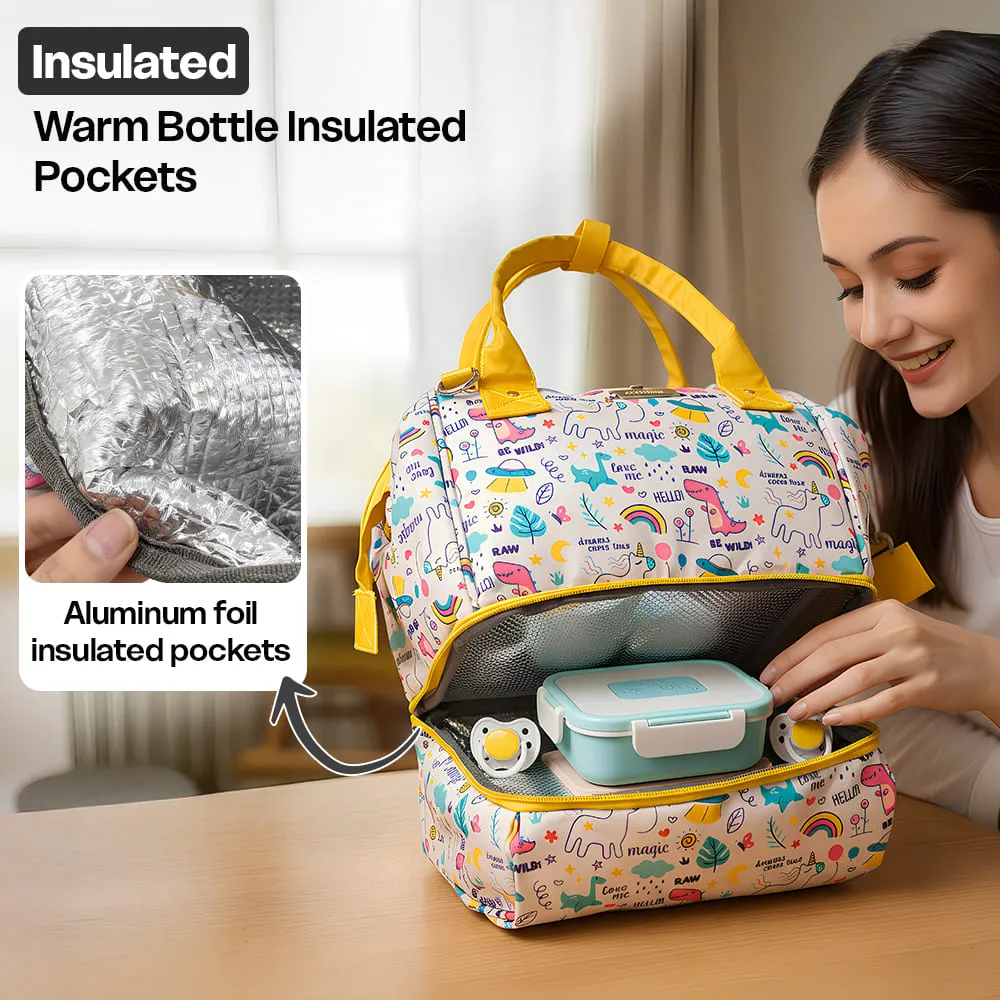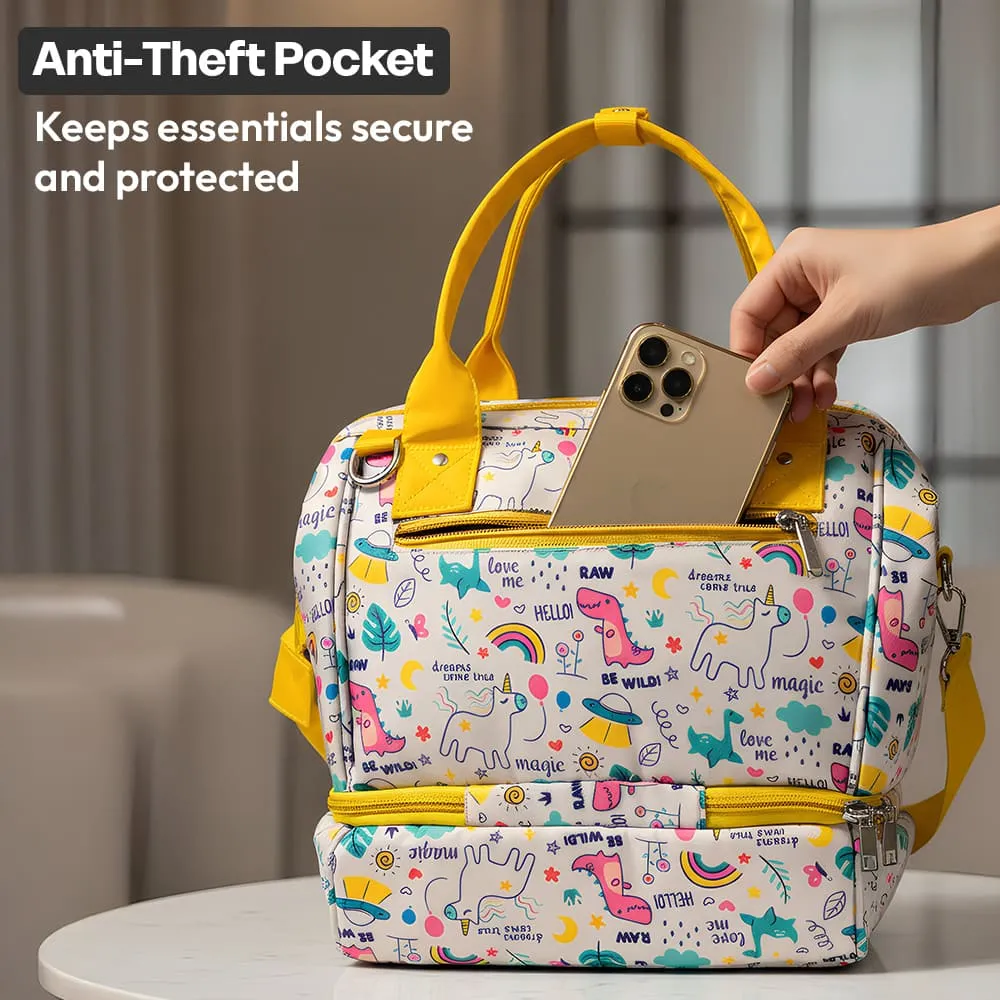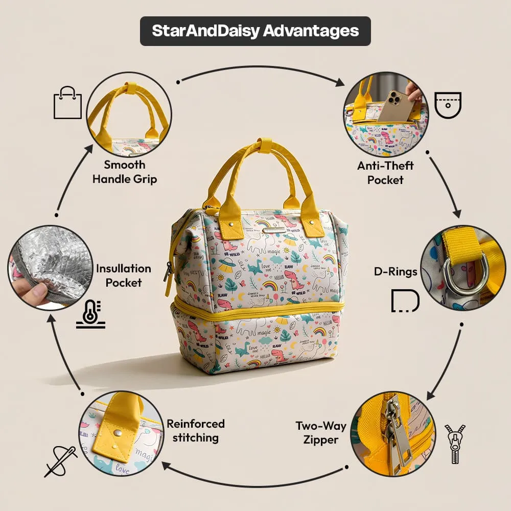 StarAndDaisy Mini Diaper Bag for Mothers Travel with Insulated Pocket, Diaper Tote Bag with Convertible Sling Bags & Multiple Compartment – Unicorn Print