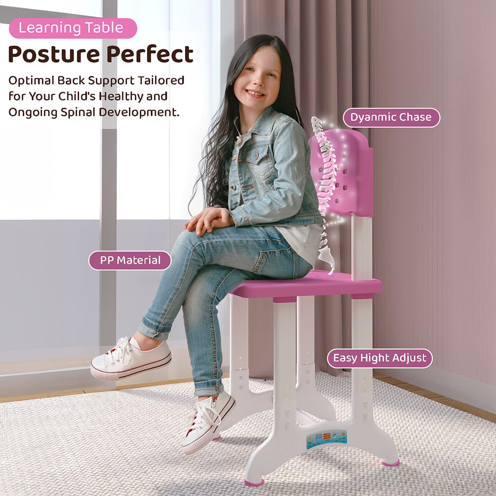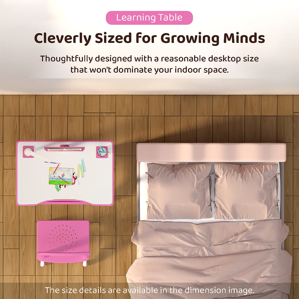 StarAndDaisy Multifunctional Study Table for Kids, Height Adjustable, Storage Cabinet, and Book Holder Aged 3-10 years – E60 Pink