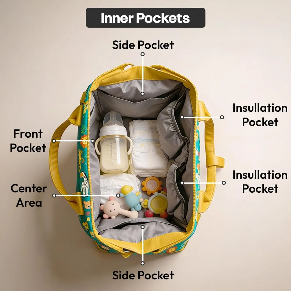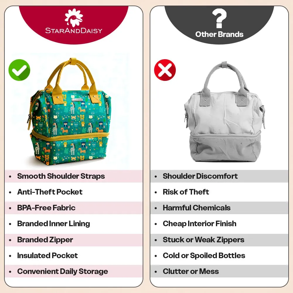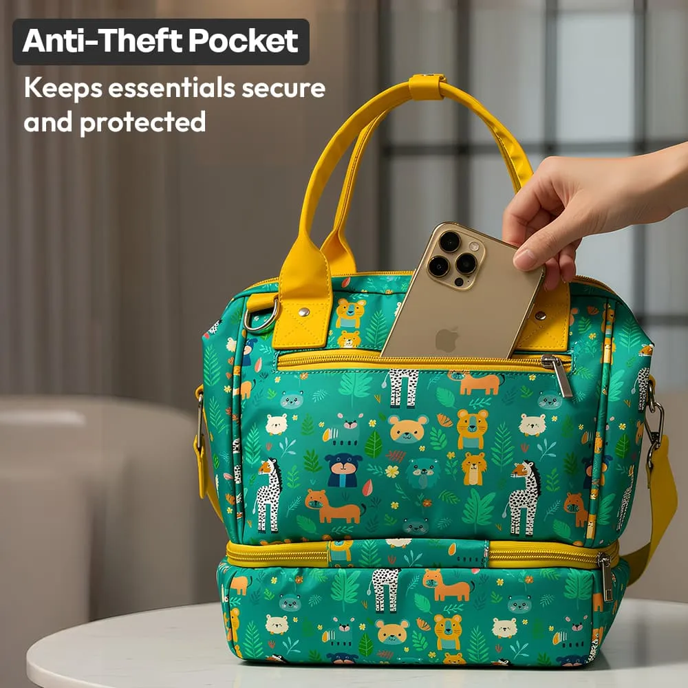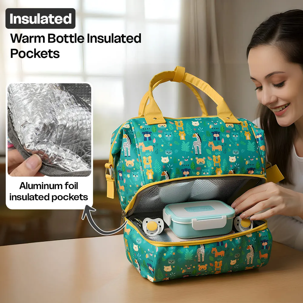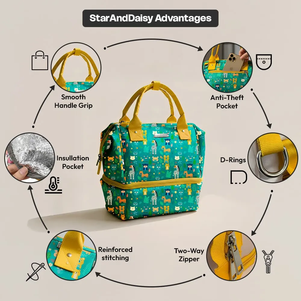 StarAndDaisy Newborn Diaper Bag with Insulated Pocket, Diaper Tote Bag with Convertible Sling Bags & Multiple Compartments – Jungle Print