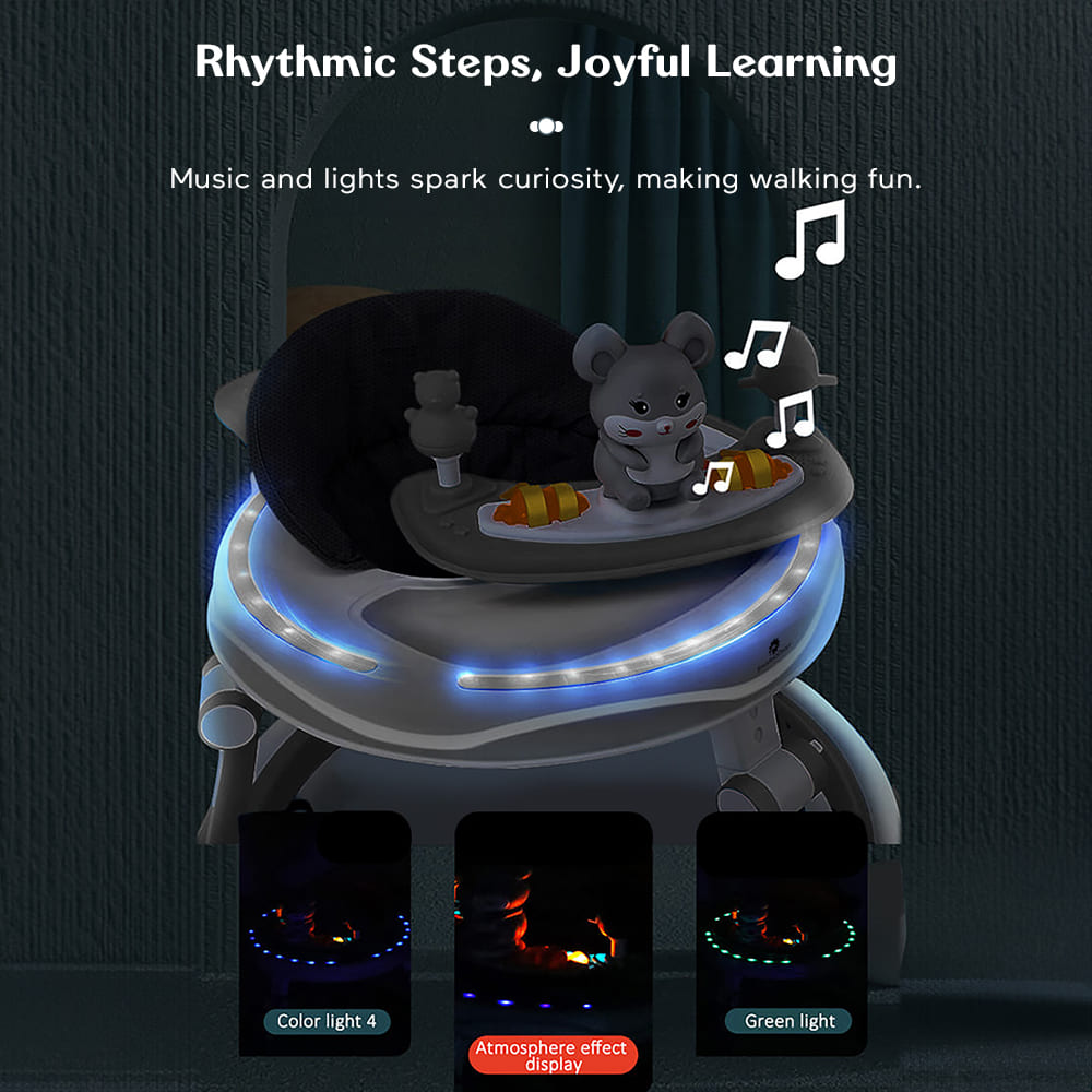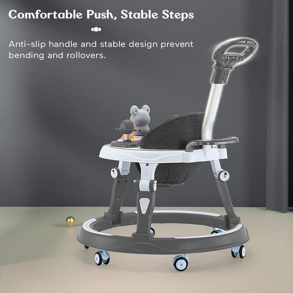 StarAndDaisy Premium Baby Walker With Parental Handle, Infant Walker With Adjustable Height & Detachable Musical Toy Tray – Grey