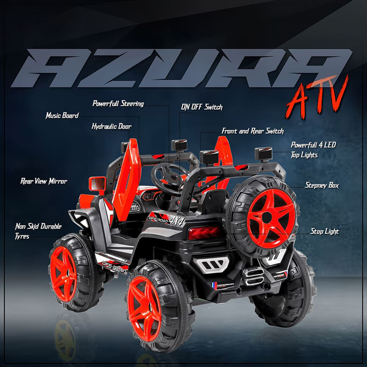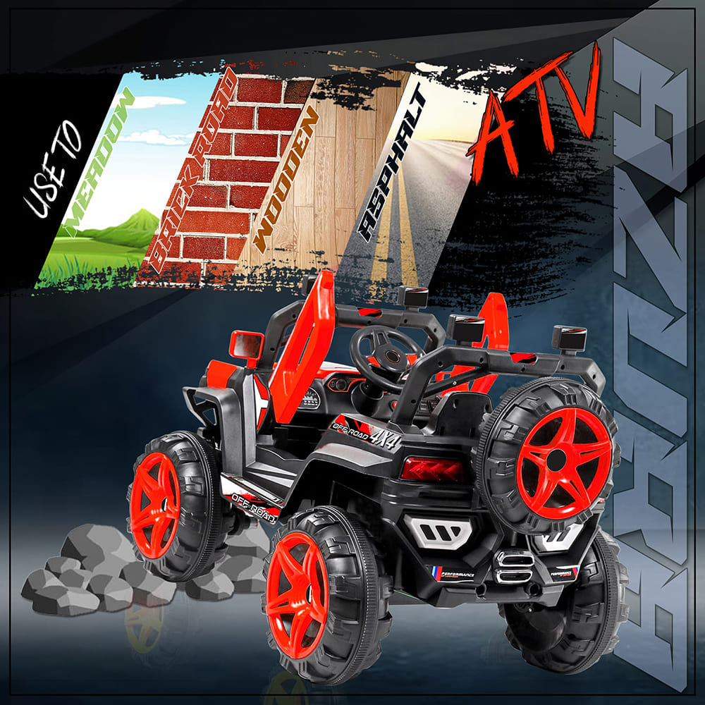 StarAndDaisy Jeep for Kids with Rechargeable Battery and Bluetooth & Music – Red | LFC-JK909