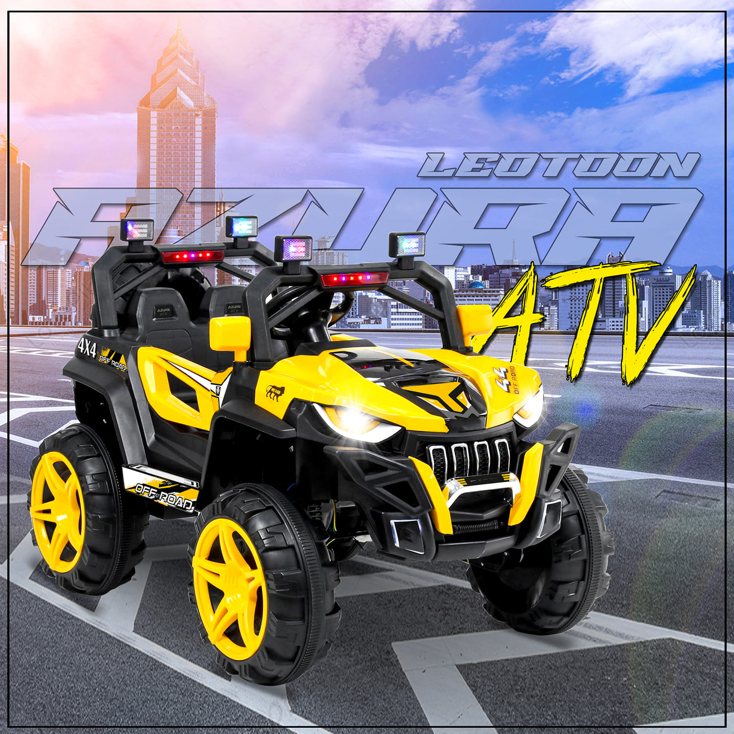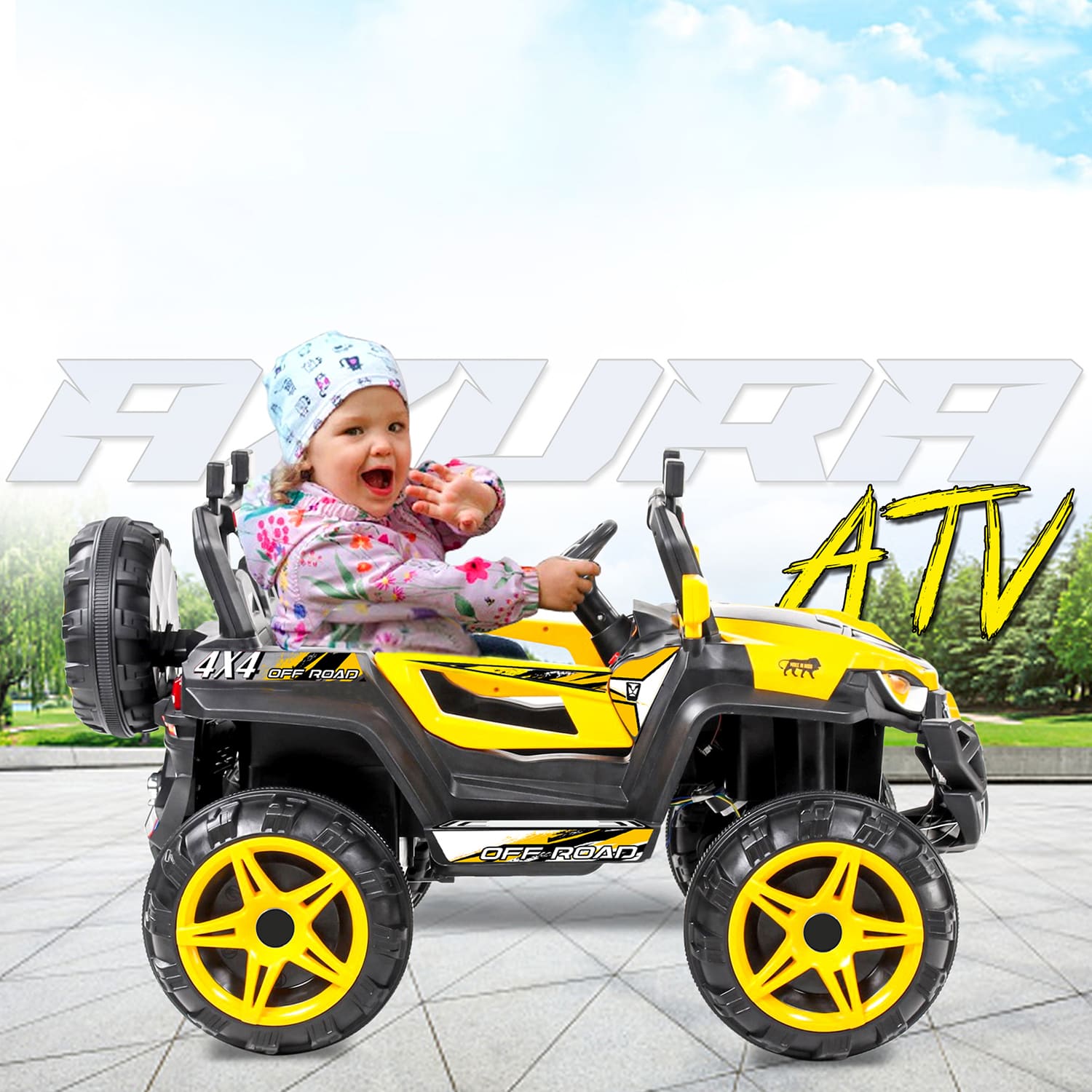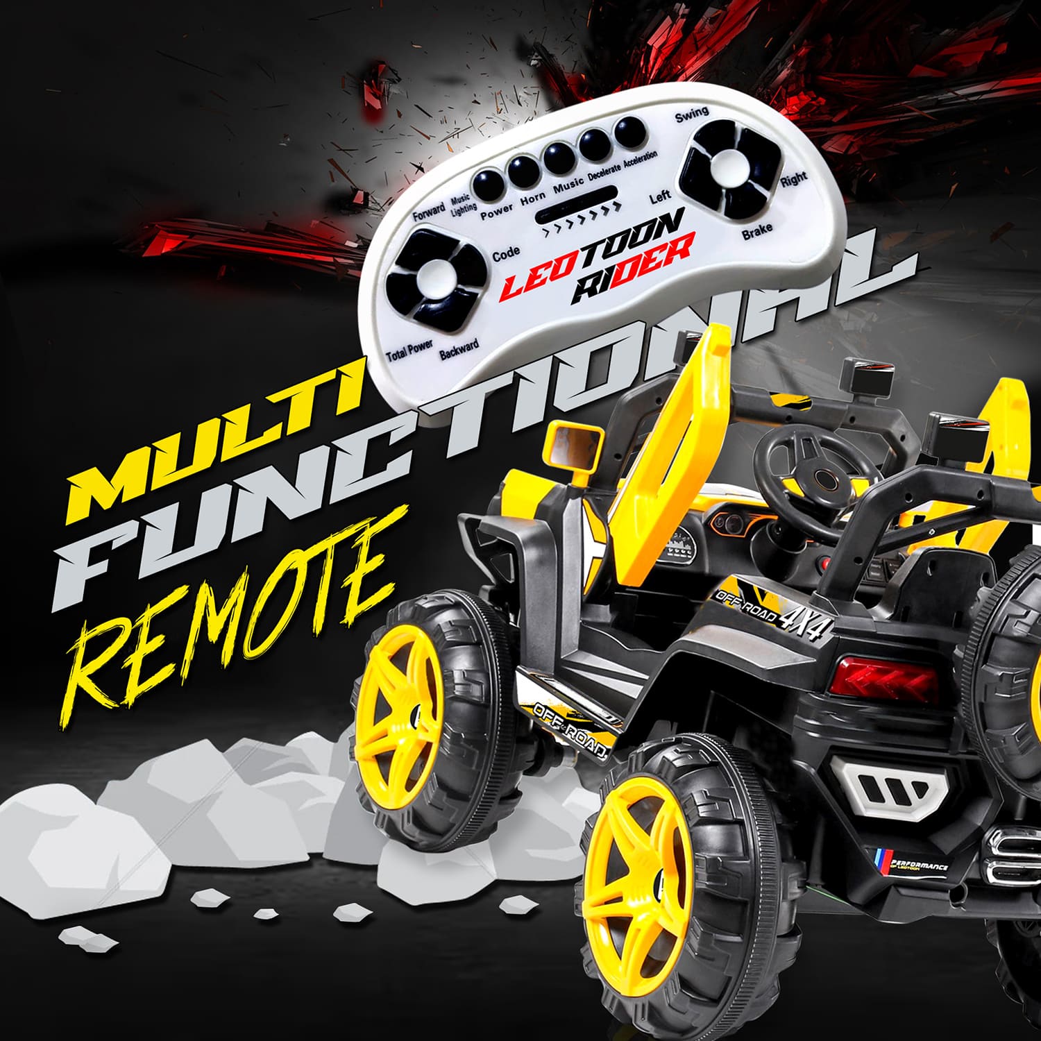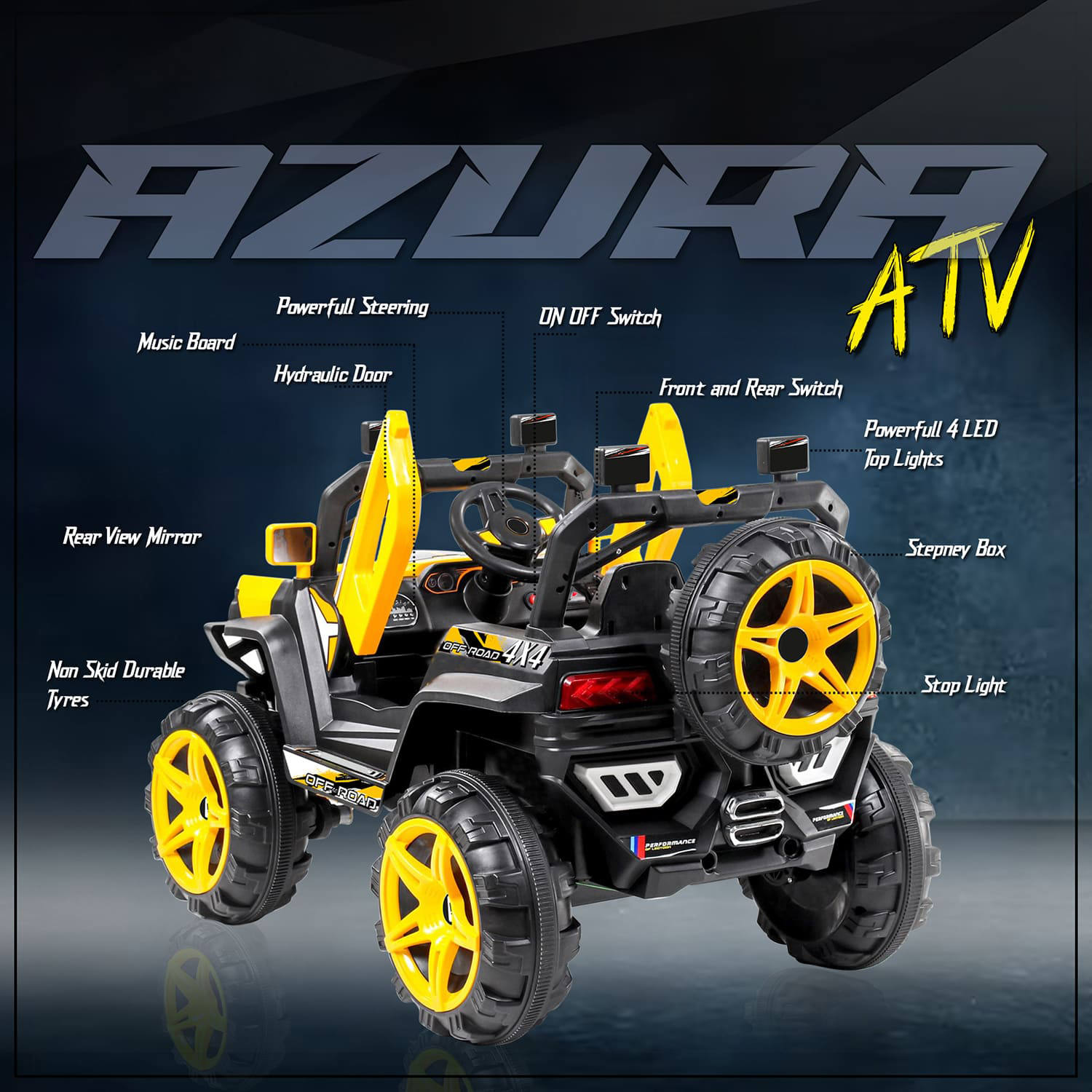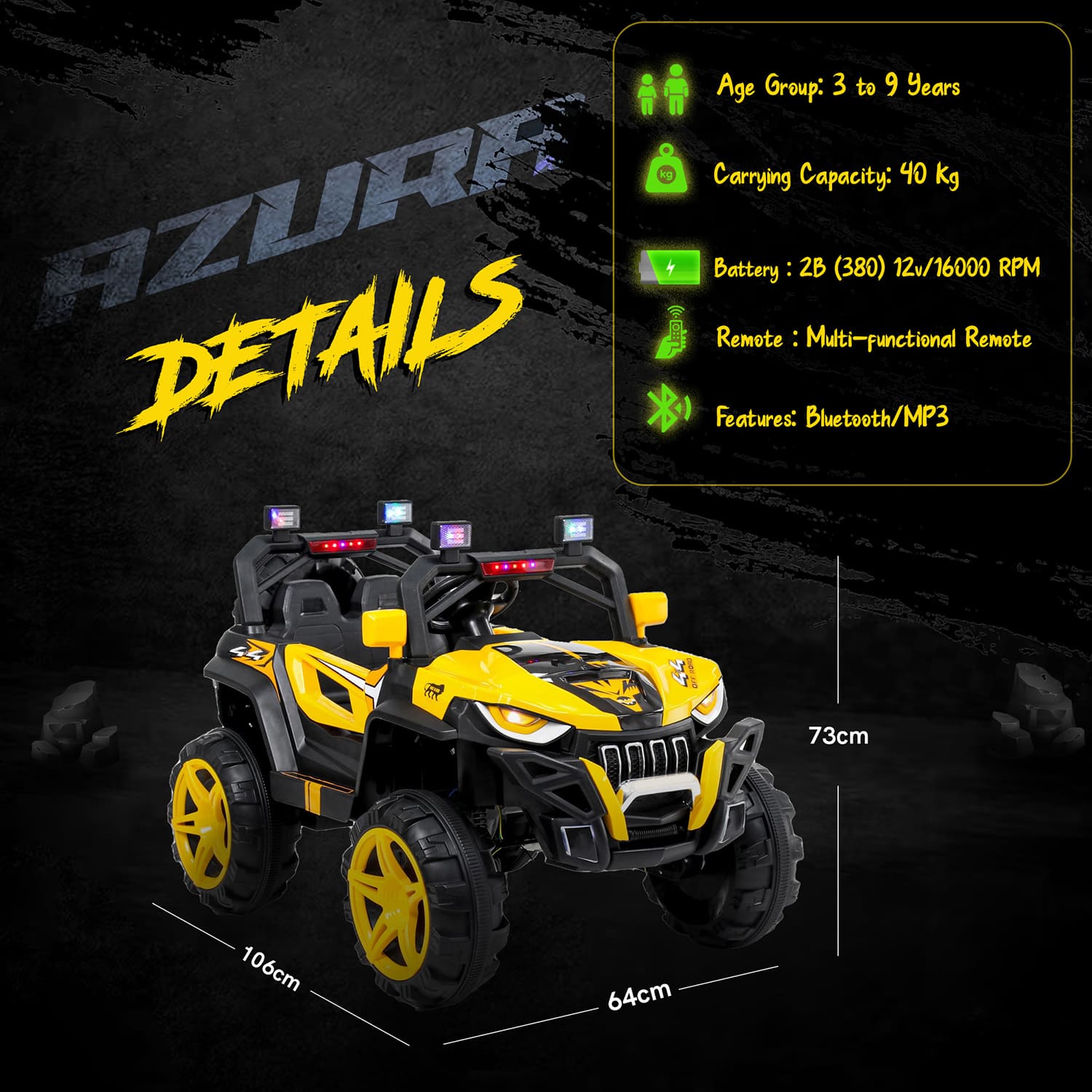 StarAndDaisy Rechargeable Battery Operated Ride On Jeep for Kids with Bluetooth & Music – Yellow – LFC-JK909
