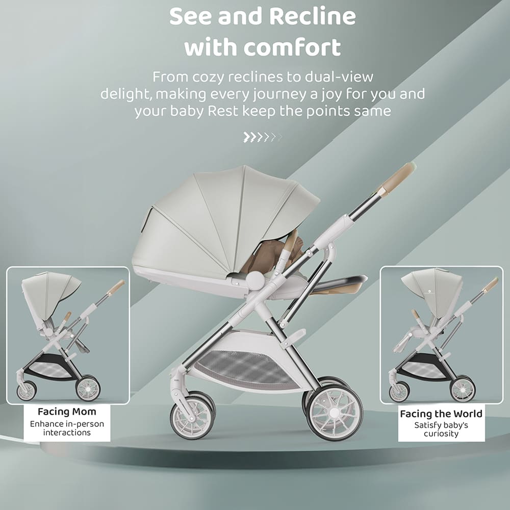 [Refurbished] Chariot Foldable Stroller For Baby – Travel-friendly Pram for Infants with Reversible Handle and Bassinet – Newborn Baby Stroller with Dual Direction and Adjustable Backrest – Baby Stroller Pram Age 0 to 3 Year (Q7- Bright Silver) – StarAndDaisy