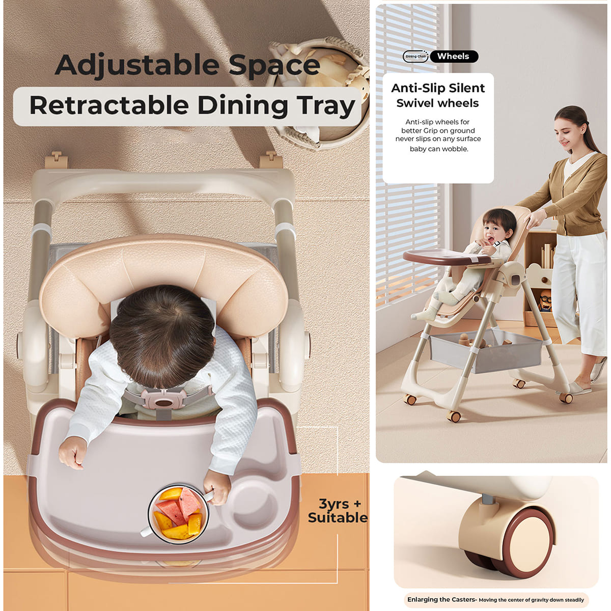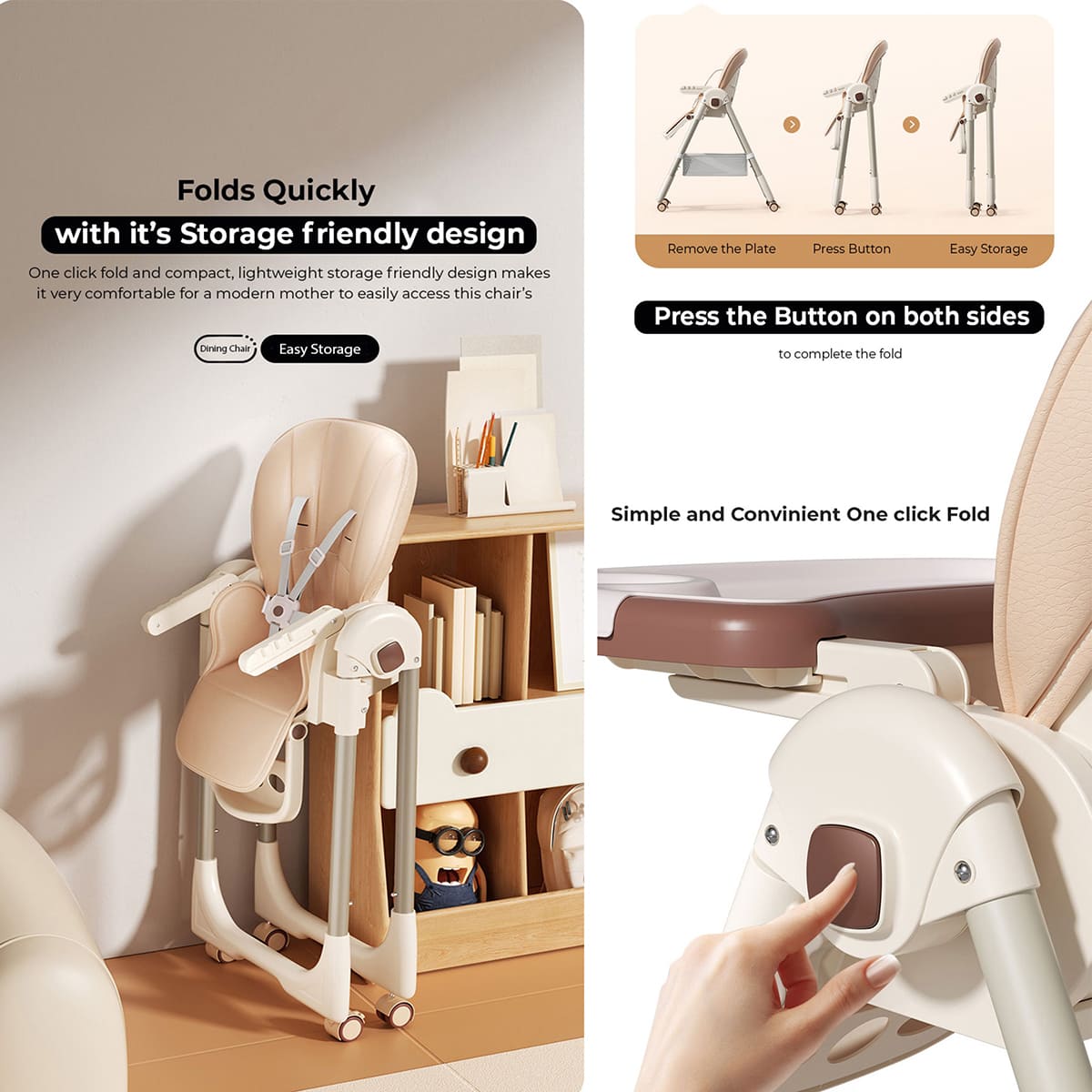 [Refurbished] StarAndDaisy Galaxy Star Baby High Chair | Foldable Feeding Chair | Strong Dining Chair for baby with height adjustment | For 6 months to 4 years old (Orange | With Storage Basket)