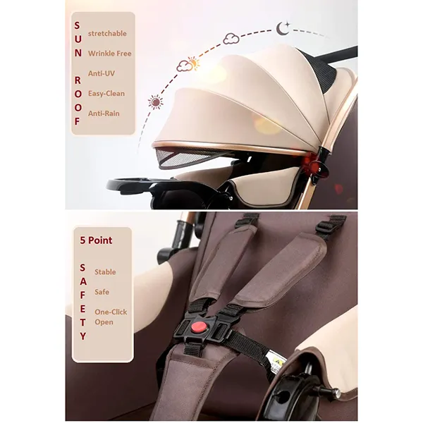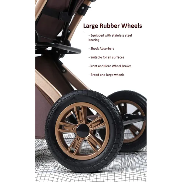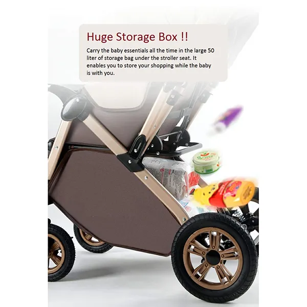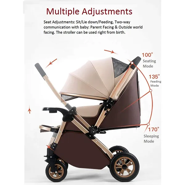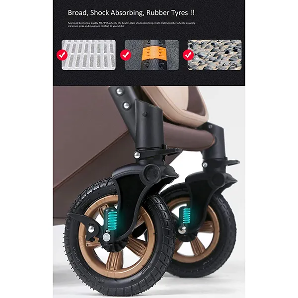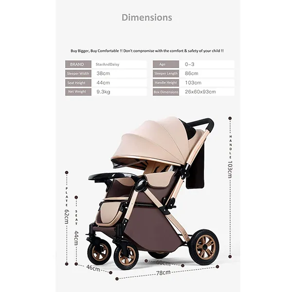 [Refurbished] StarAndDaisy Multi-Adjustment Ultra Baby Stroller Pram & Buggy, Pushchair Reversible Handle with Anti-Shock Rubber Wheels (Brown)