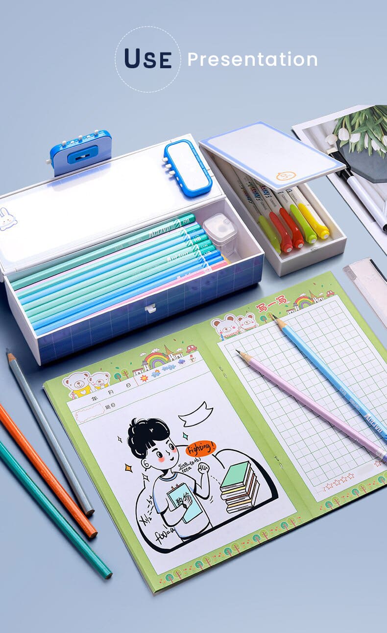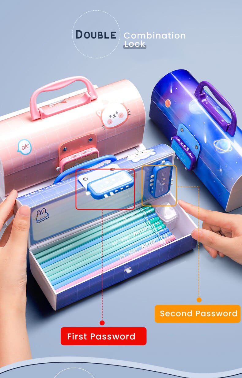 School Kids Pencil Box Stationary Set with Different compartments for Storage of Kids Essentials (Treasure Box Multicolor)