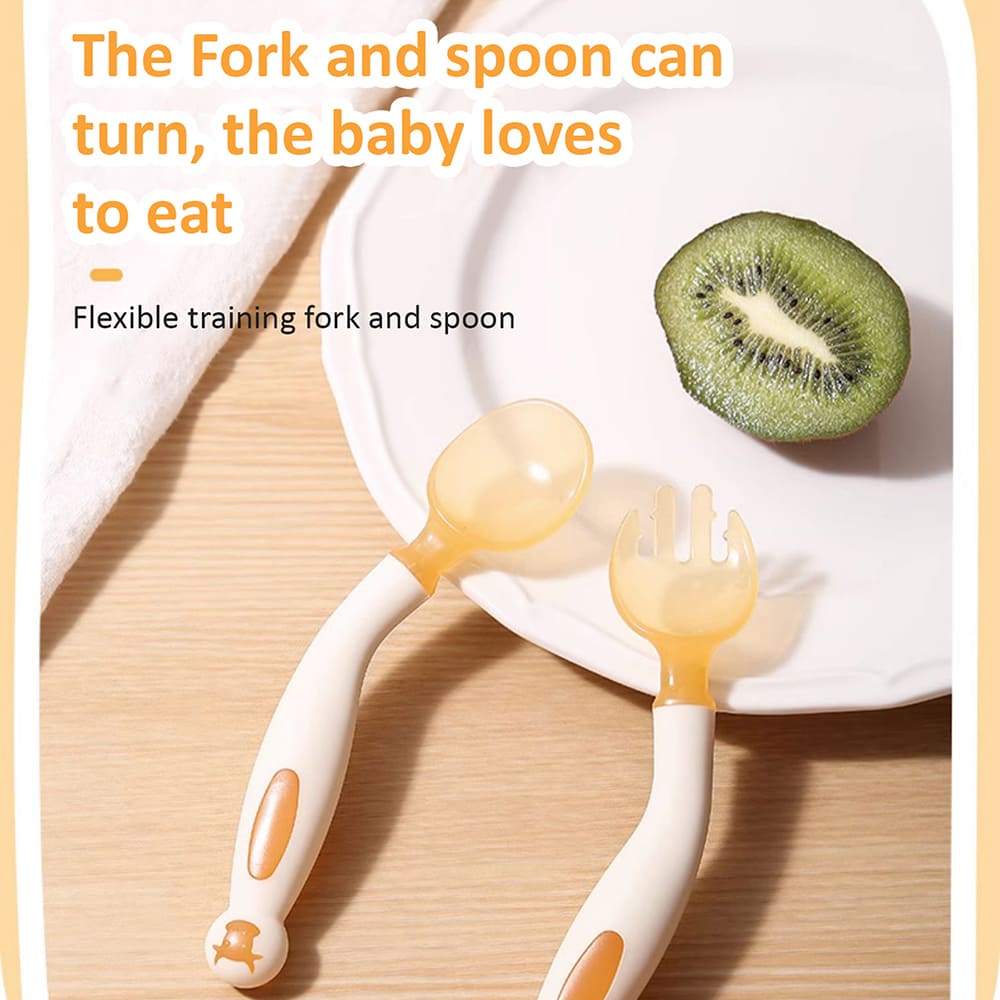 StarAndDaisy Silicone Baby Feeding/Training Spoon and Fork Set with Anti-Bacterial PP Storage Box (Orange & Cream)