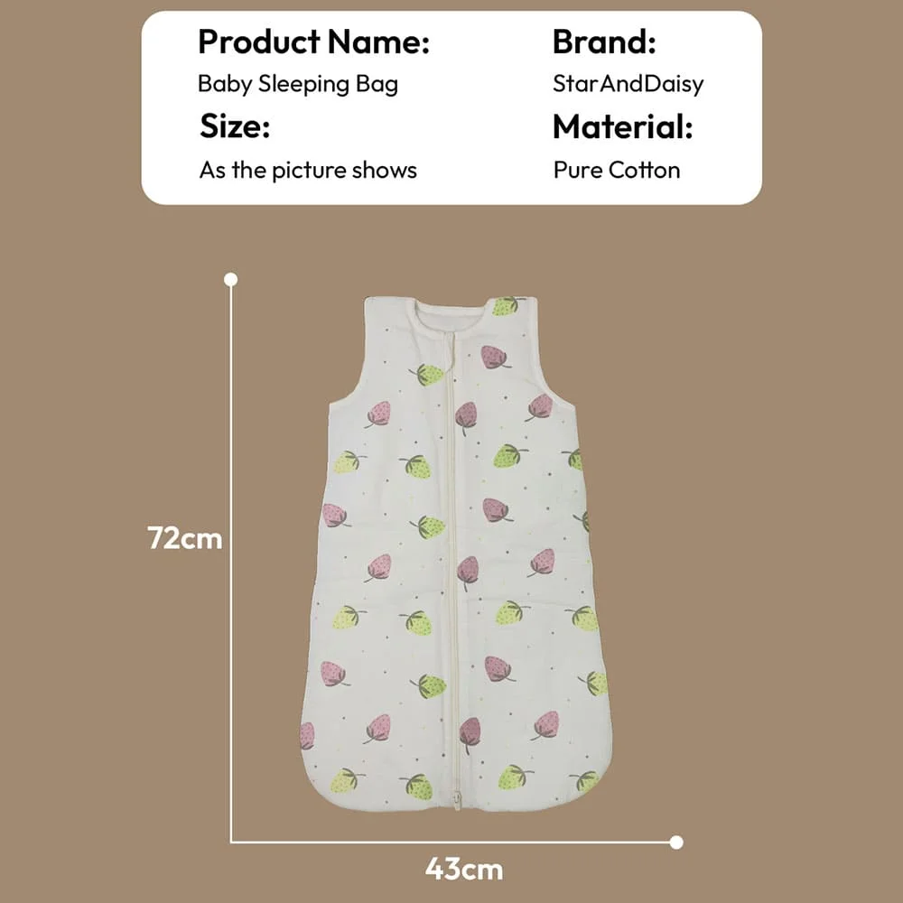 StarAndDaisy Sleeping Sack For Baby,100% Pure Cotton Baby Sleep Bag, Breathable Muslin Comfort, Soft & Safe for Infants – Strawberry Print