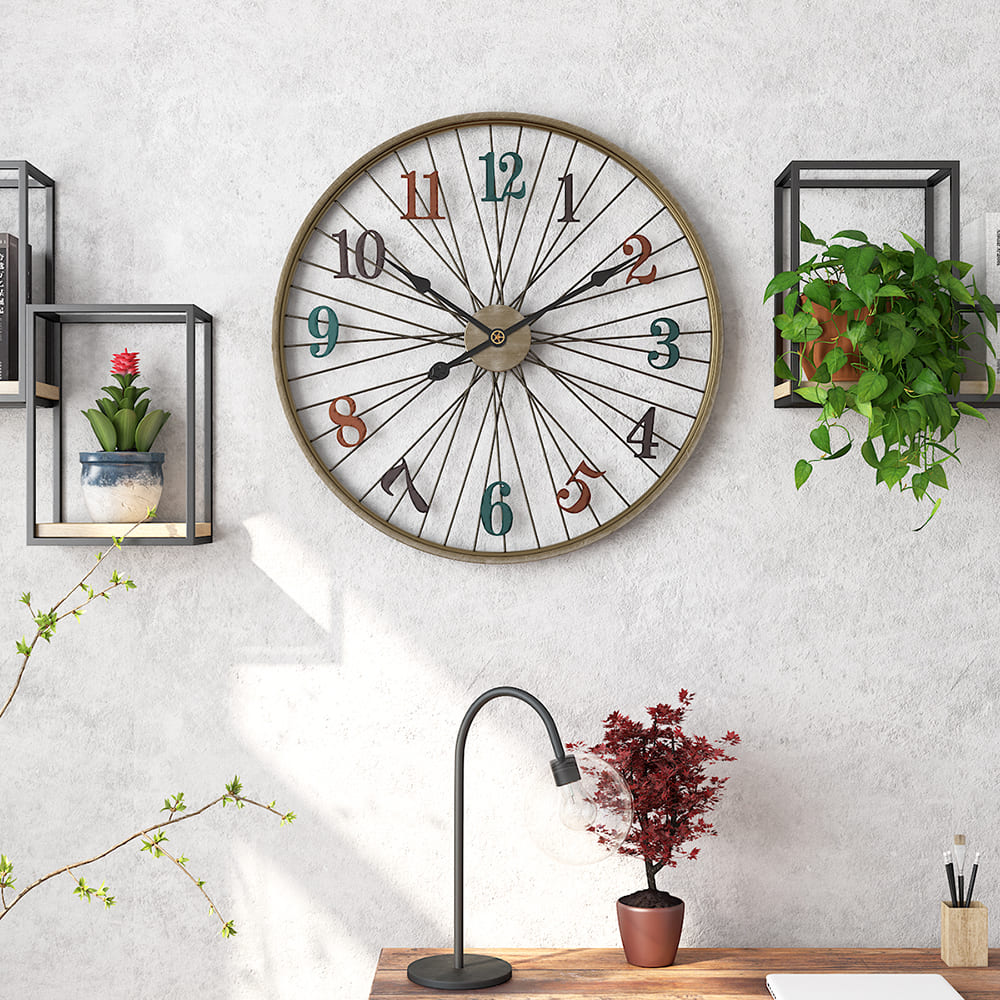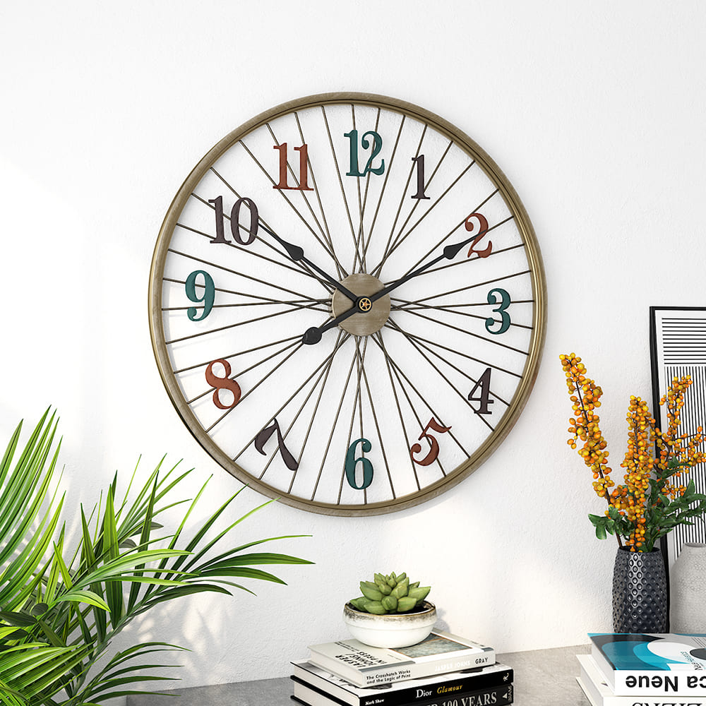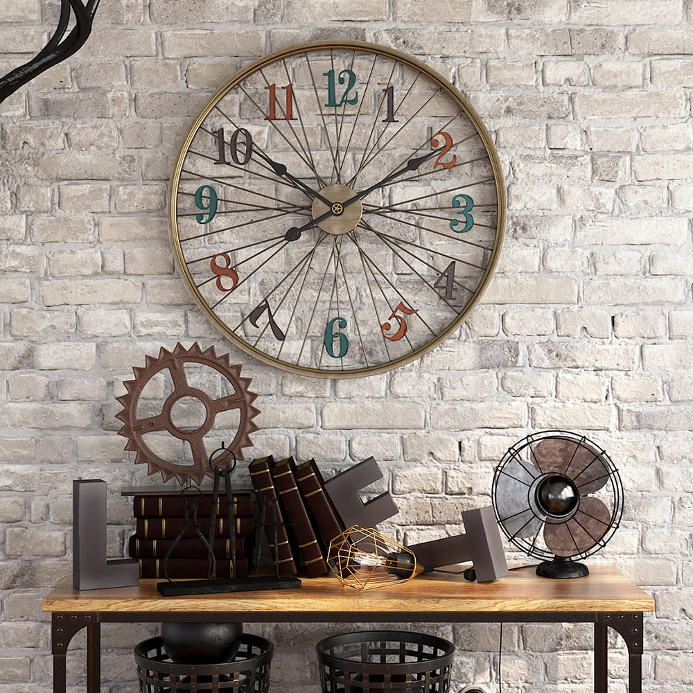 VINTAGE STYLE AND FUNCTION: Time is your friend when you’re on the right path. Get where you’re going in fun vintage style with this unique home accent, a clock fashioned after a bicycle wheel. Constructed of durable metal.