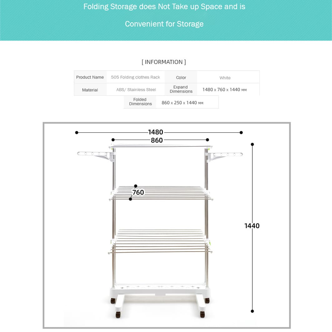 SND Home 3-Tier Collapsible Clothes Drying Rack with Casters, Stainless Steel Hanging Rods, Indoor & Outdoor Use