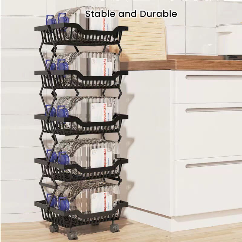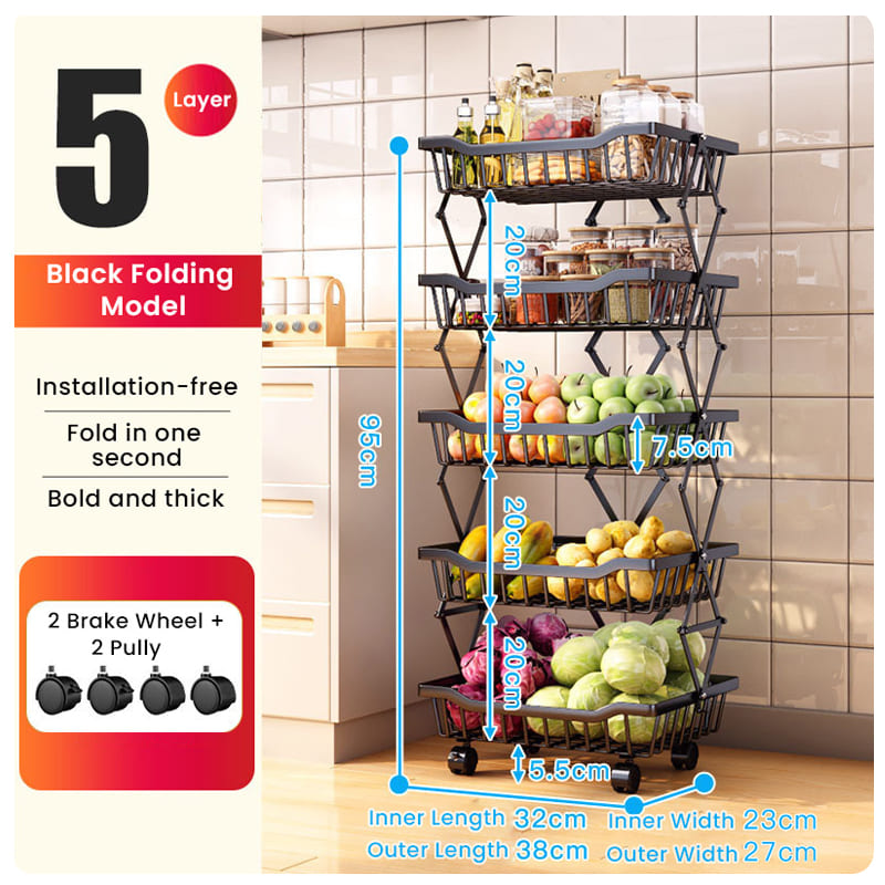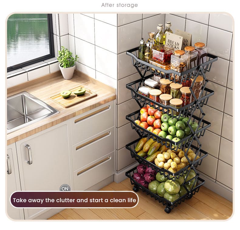 This perfect household storage organizer is designed to save your cluttered kitchen, bathroom, pantry, laundry, bedroom, living room, garage, etc. Its opening design not only provides visible storage but also ensures ventilation and maximizes airflow, helping to prevent the rot of fruits and vegetables. Experience convenience and organization with our multifunctional basket cart.