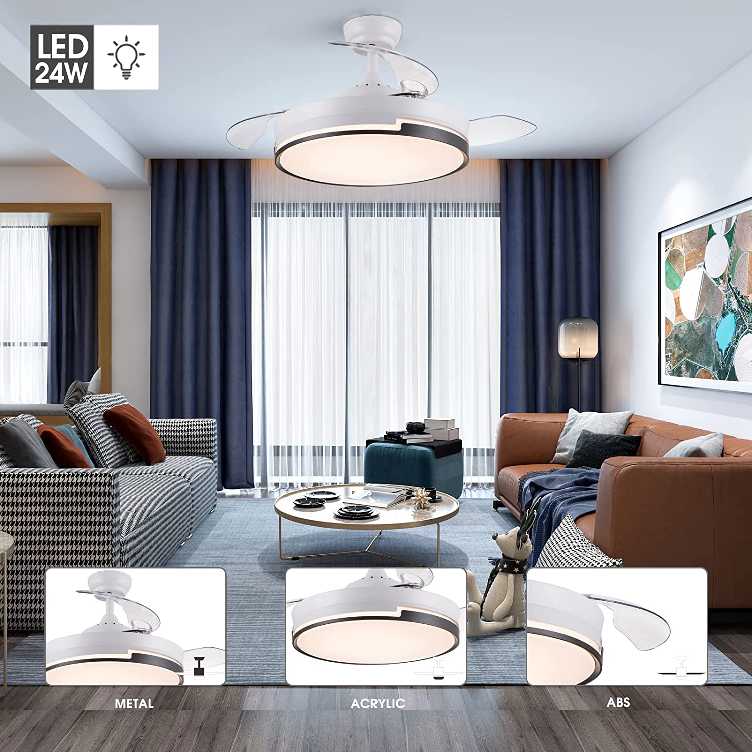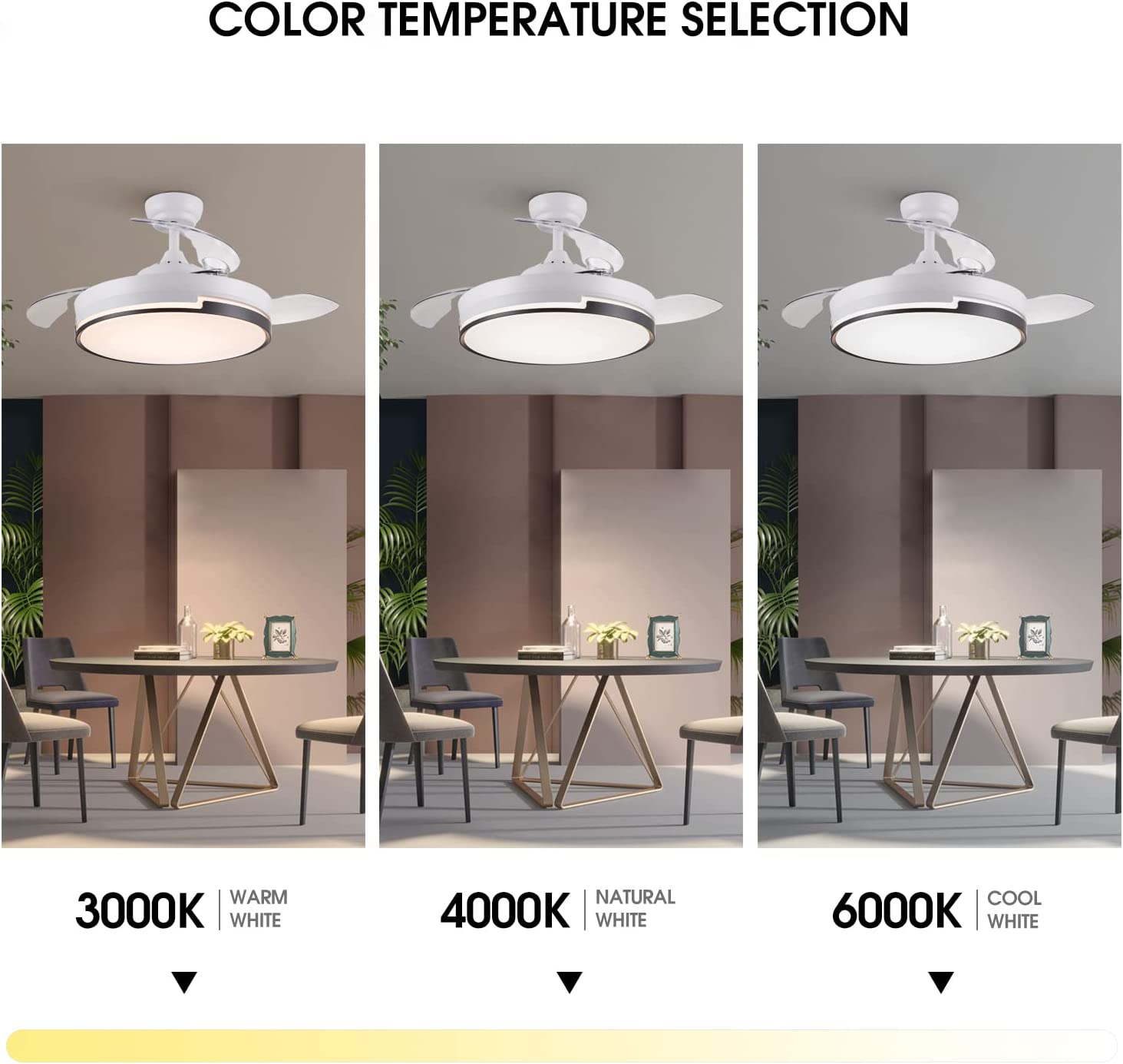 SND Home Decor Elegance Ceiling Fan with Light, Modern Invisible Ceiling Fan Chandelier with Retractable Blade, Dimmable LED 3 Lighting 3 Speeds Change Ceiling Fans lights with Remote Control (Available Size – 48in)