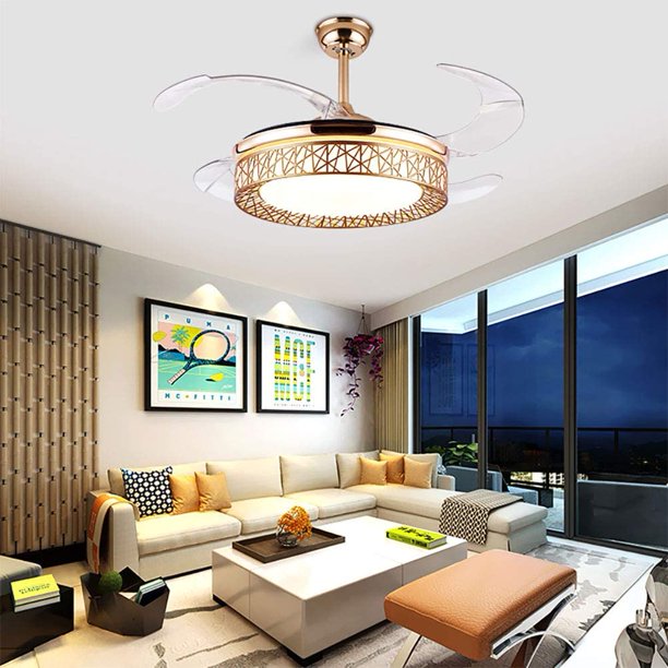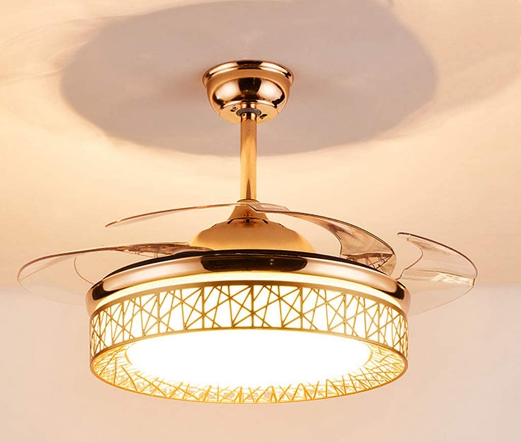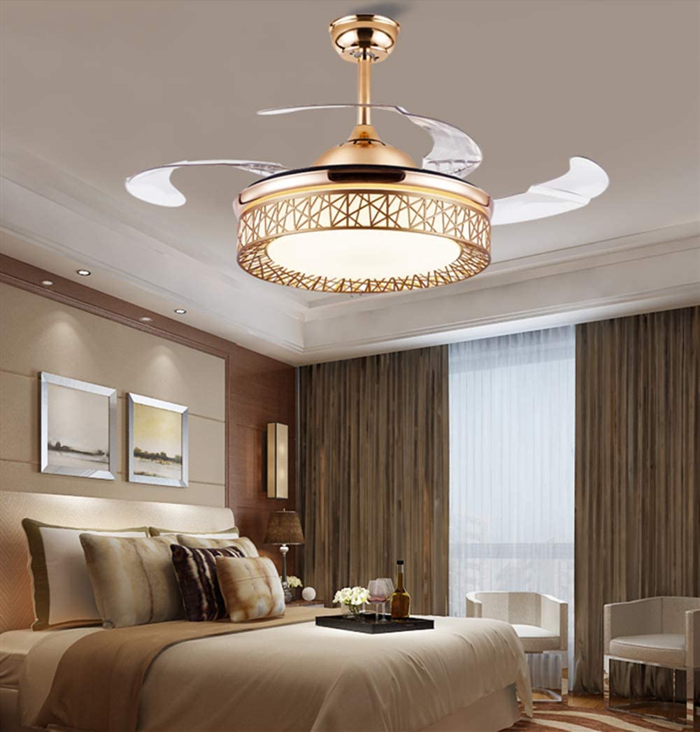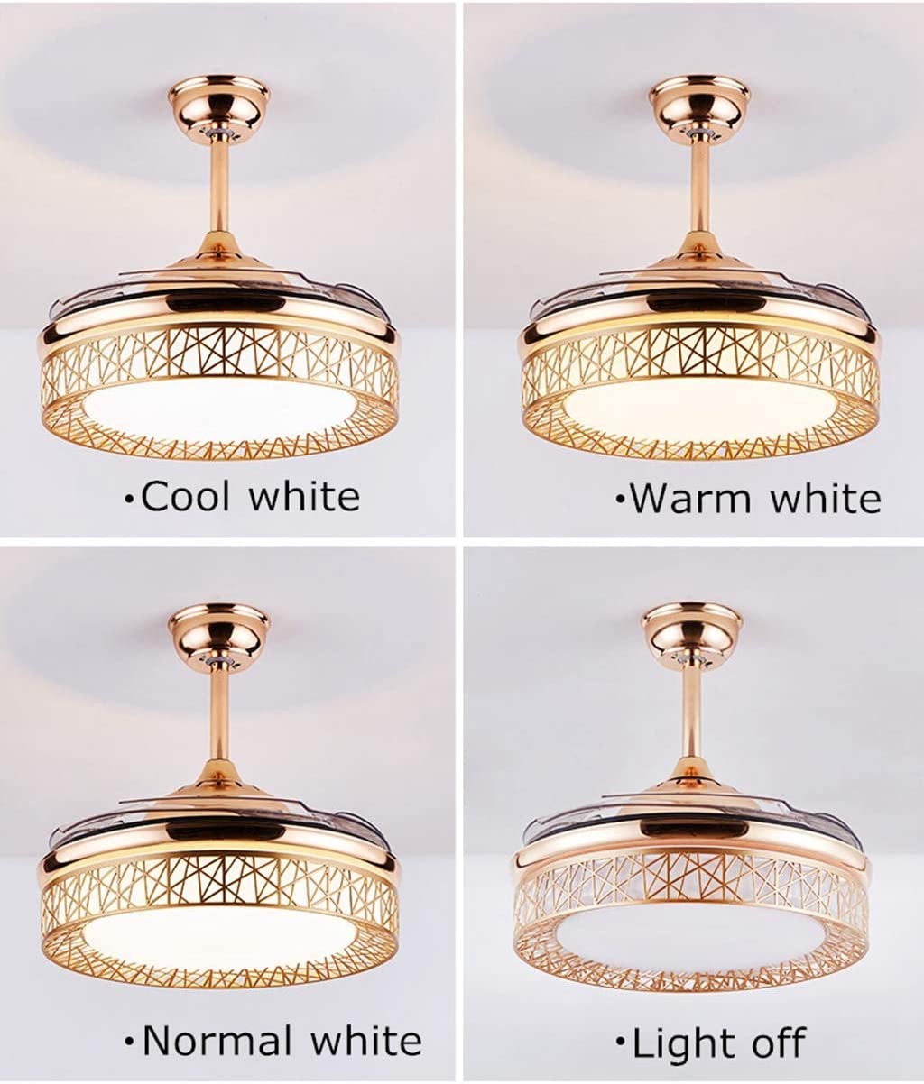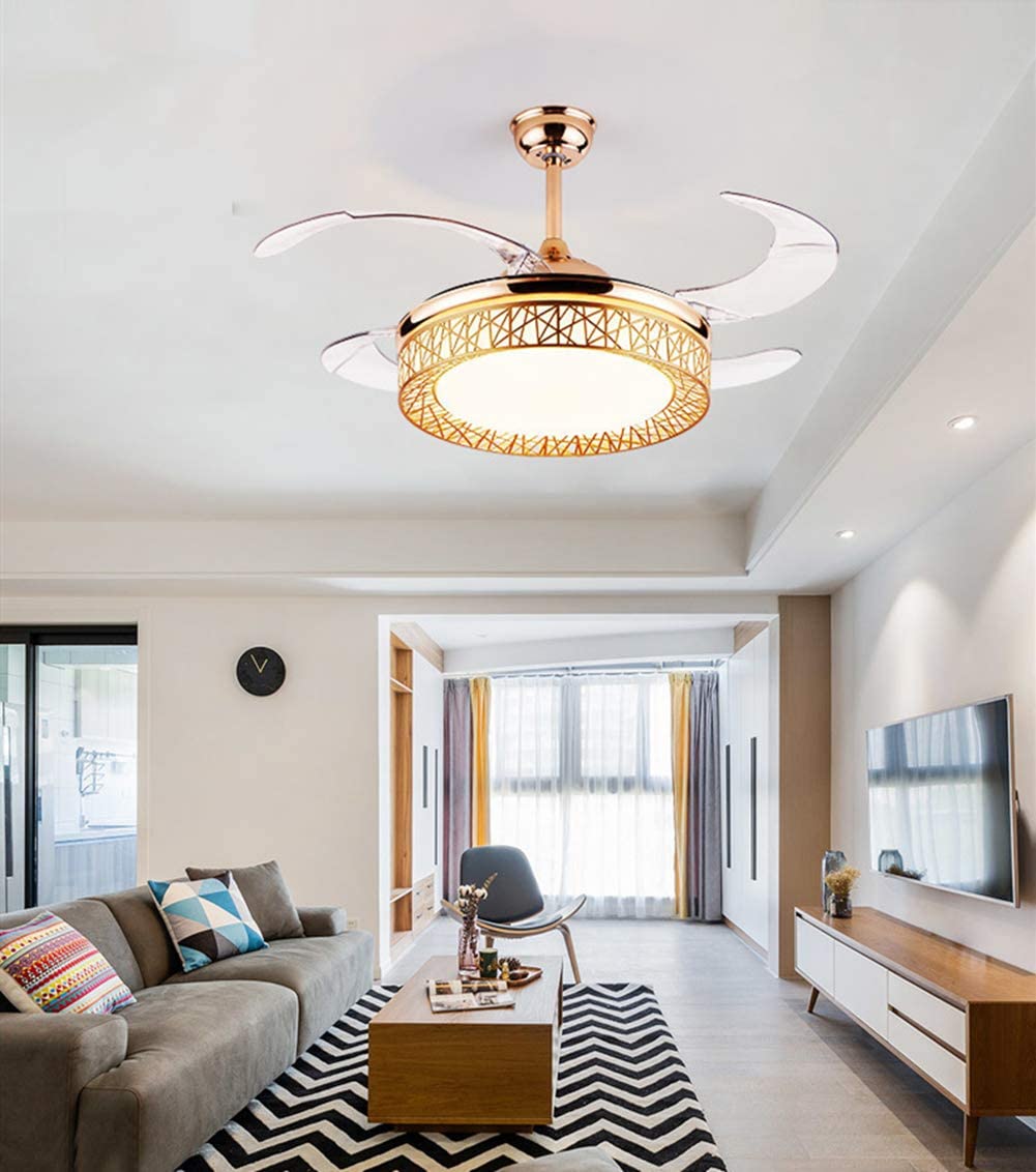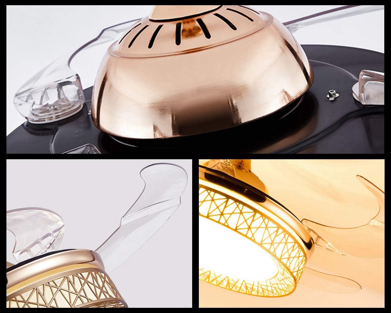 SND Home Decor Golden Angel Ceiling Fans 4 Retractable Blades LED Ceiling Fan Three Color Change Crystal Chandelier with Remote Control (Gold | Size – 48inch)