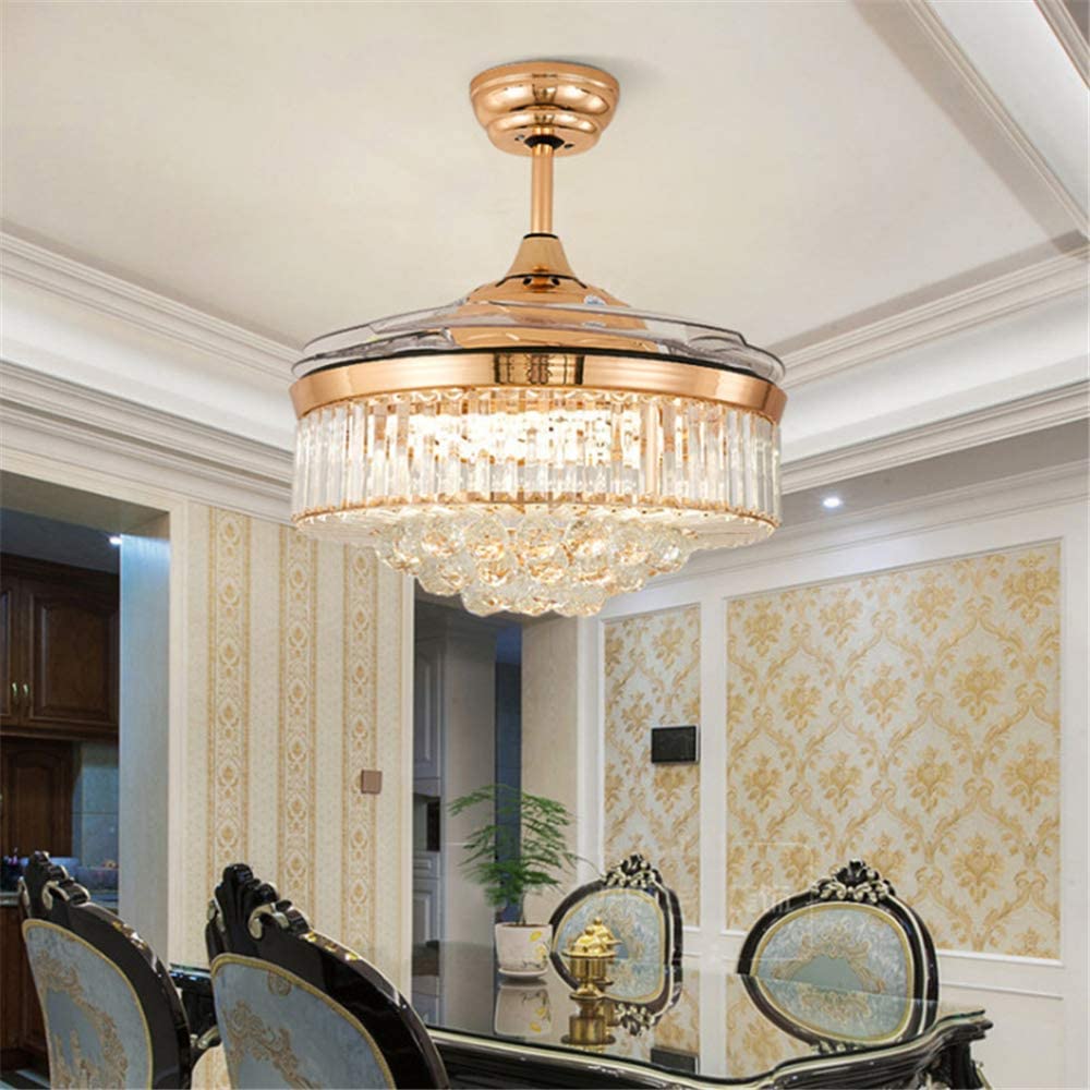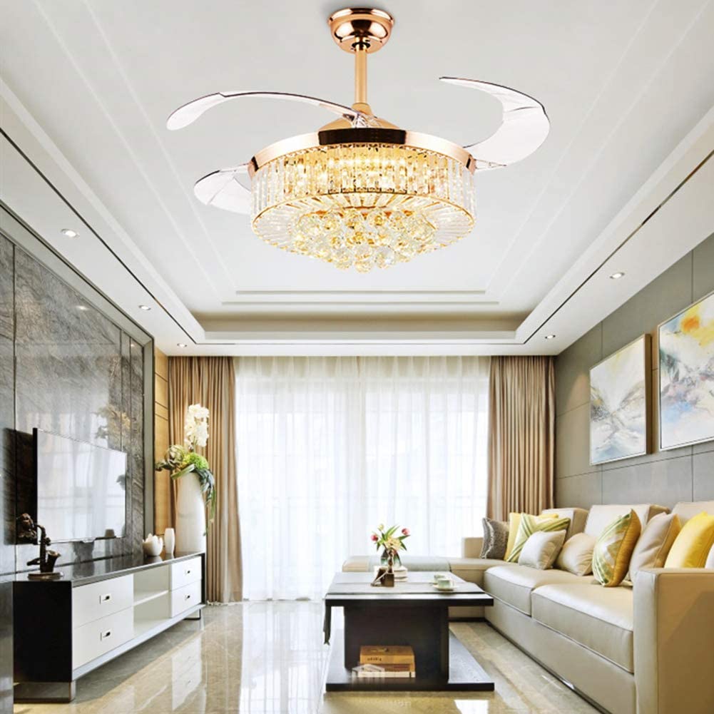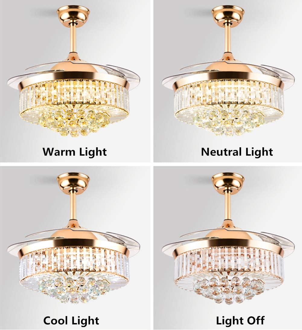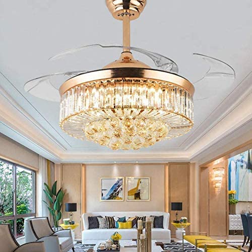 SND Home Decor Luxury Crystal Ceiling Fan with Light Remote Control Retractable Blades Lighting Fixtures 3 Speeds 3 Color Changes Luxury Chandelier , Silent Motor With LED Bulbs Included (Gold | 48inch)