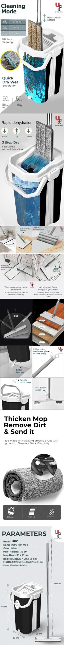 The Free Squeeze Microfiber Flat Spin Mop System is an innovative and versatile cleaning solution that makes mopping easier and more efficient than ever before. The system features a 360° flexible head that allows you to easily reach and clean tight spaces and corners.