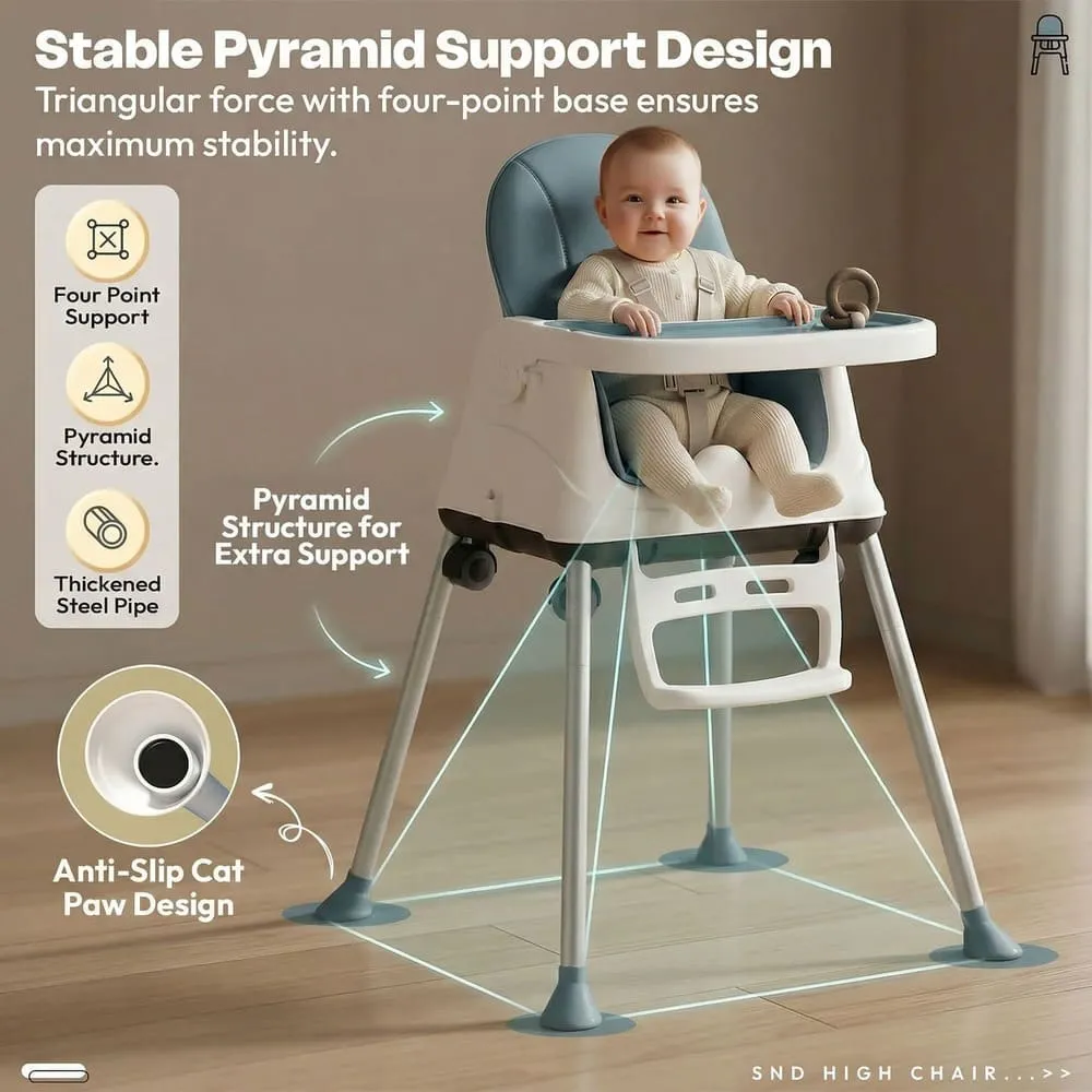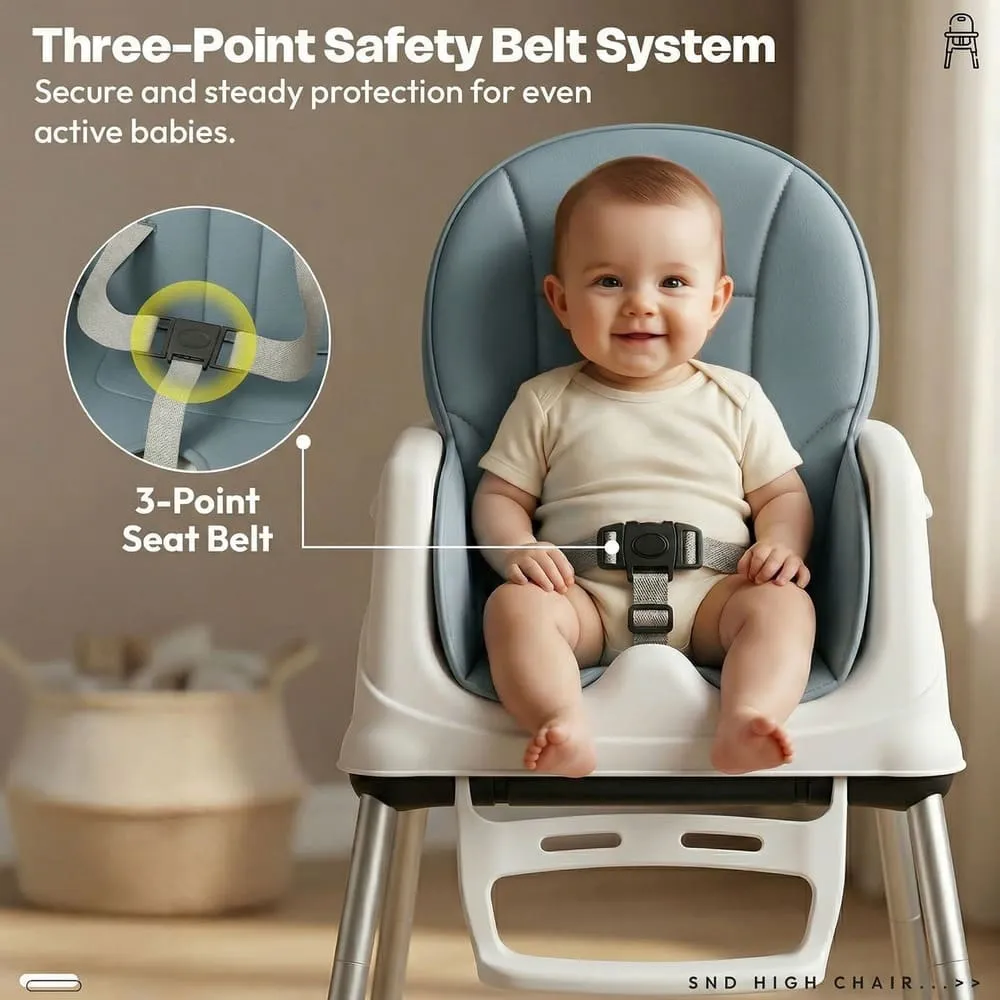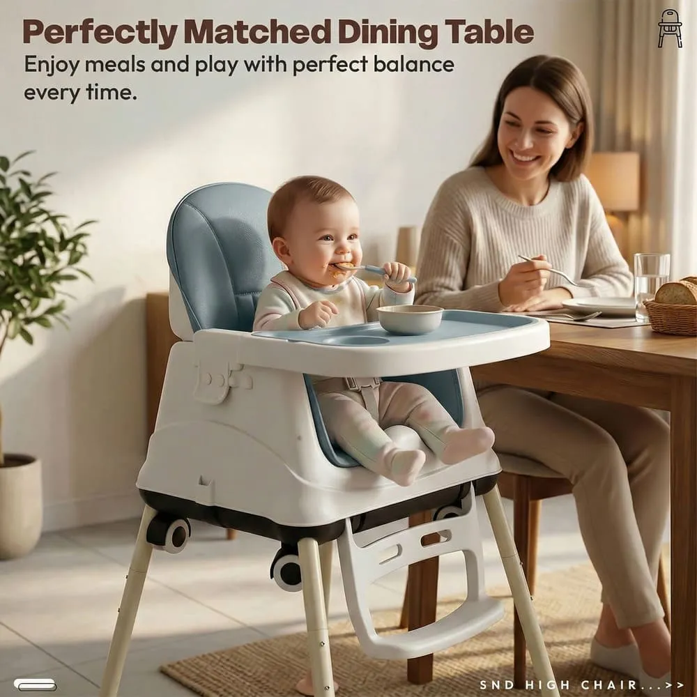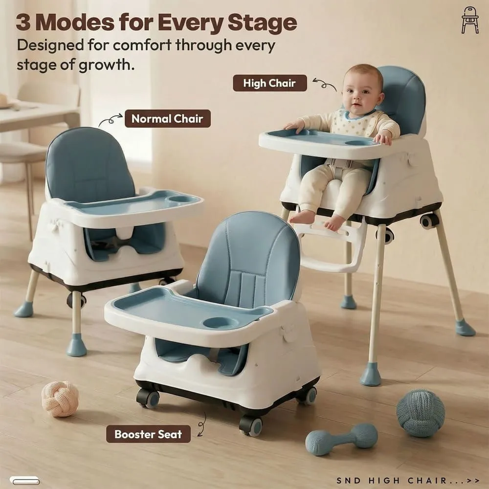StarAndDaisy 3 in 1 Baby High Chair with Adjustable Height, Detachable Food Tray, Safety Belt and Wheels – Blue