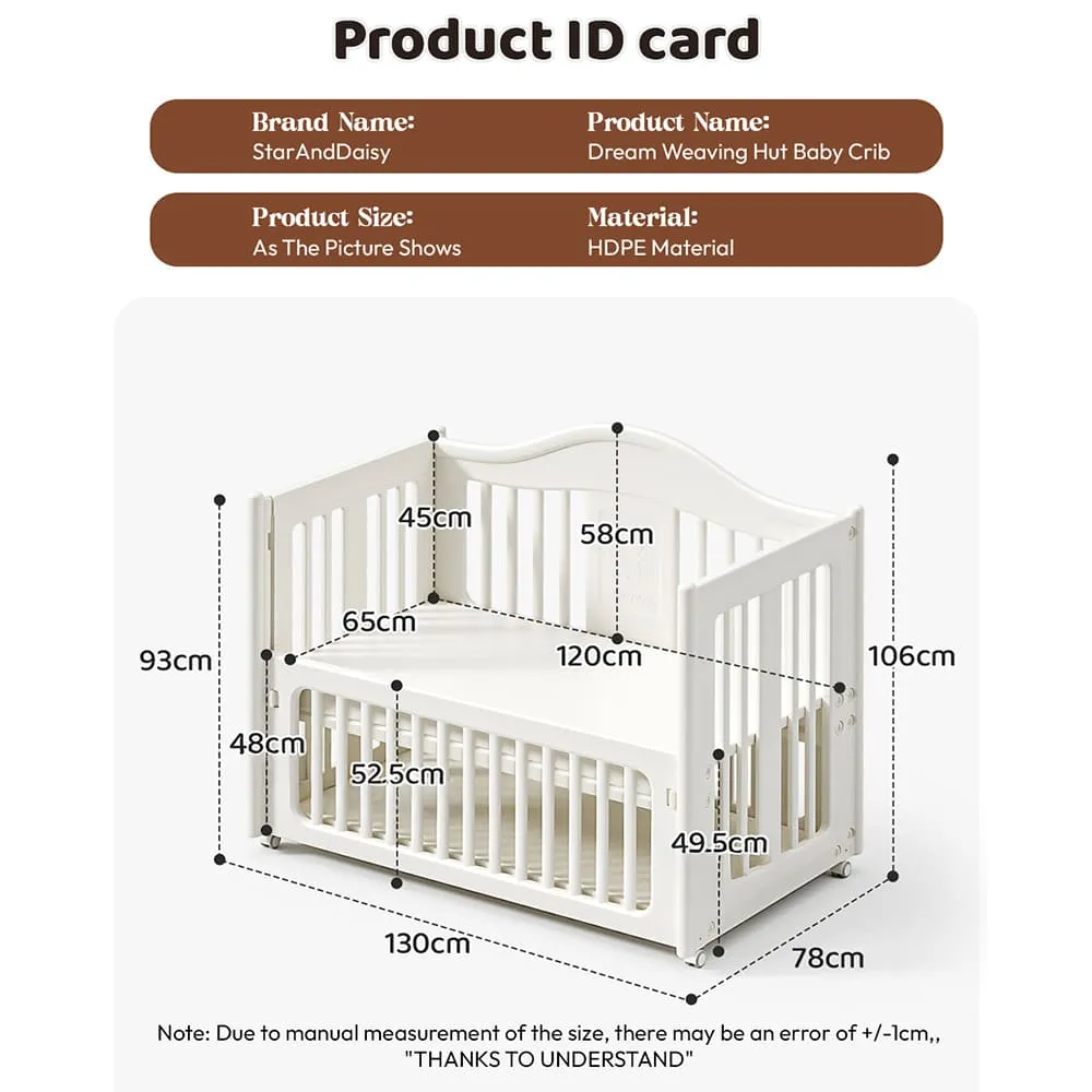 StarAndDaisy Dream Weaving Hut Baby Crib, 4-in-1 Convertible Cot to Bed, Playhouse & Study Table with Storage