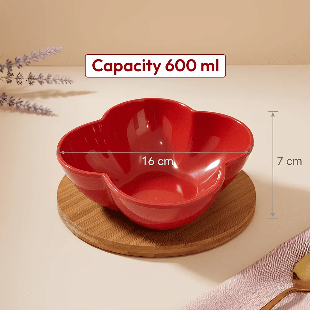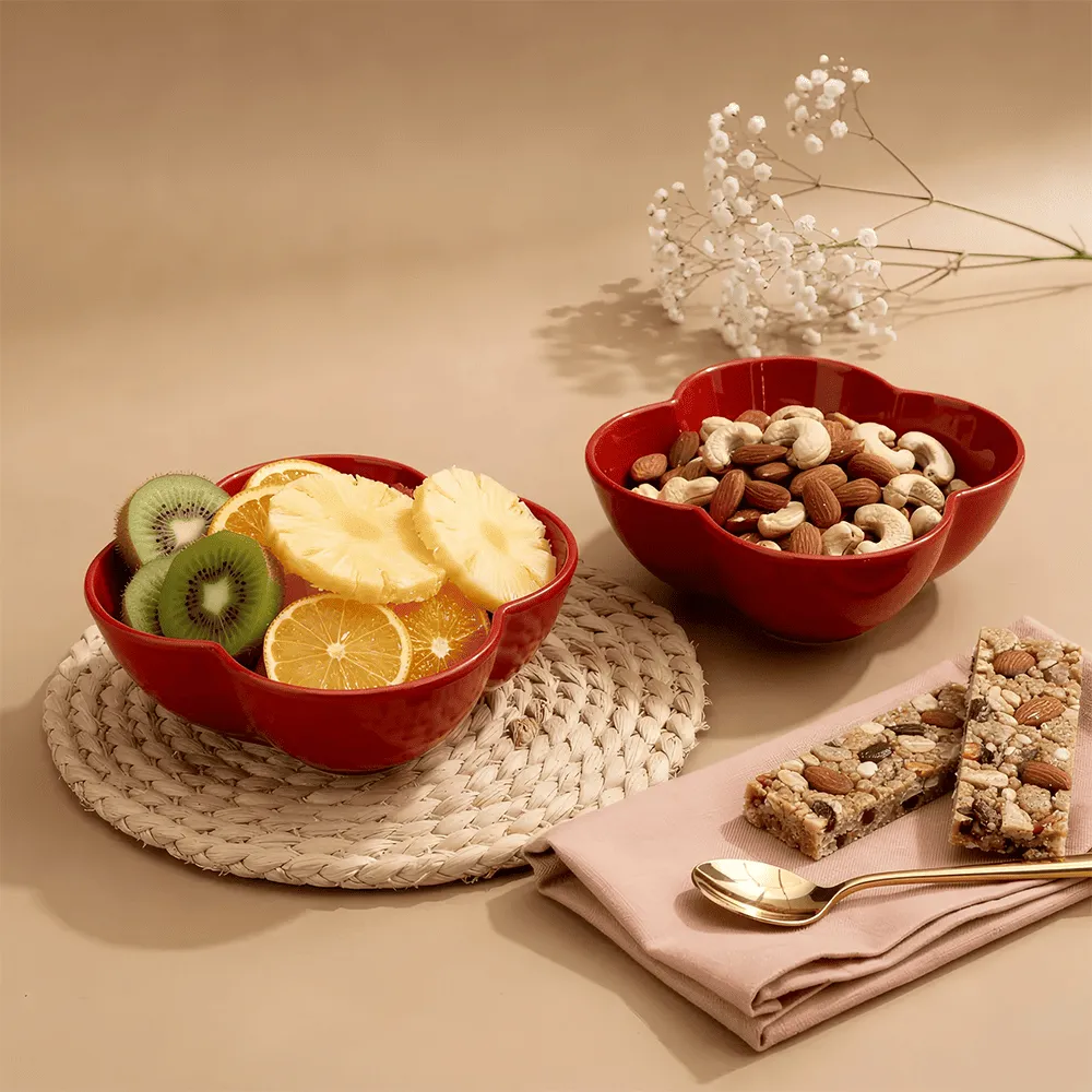 StarAndDaisy Hexa Design Snack Bowl Set of 2, Microwave Safe Food Grade Serving Bowls for Fruits & Dry Fruits – 600ml Red