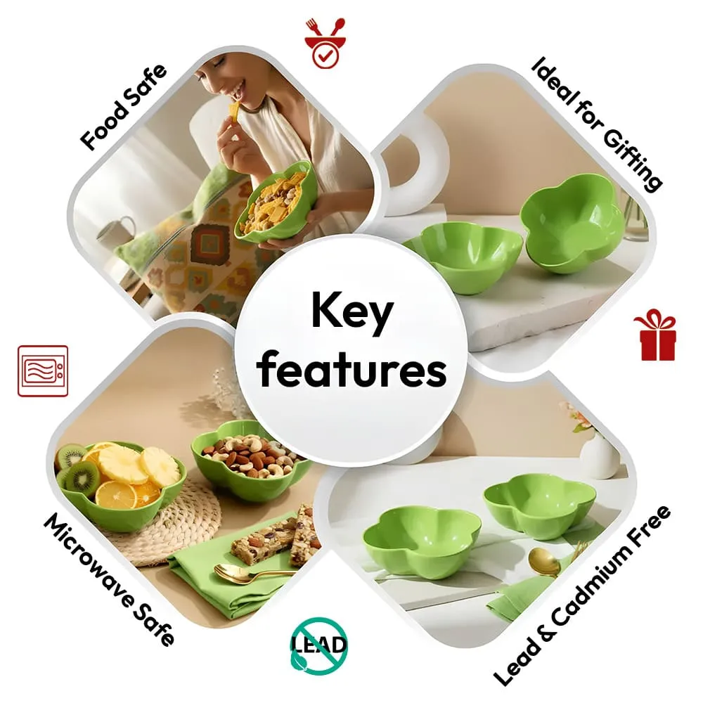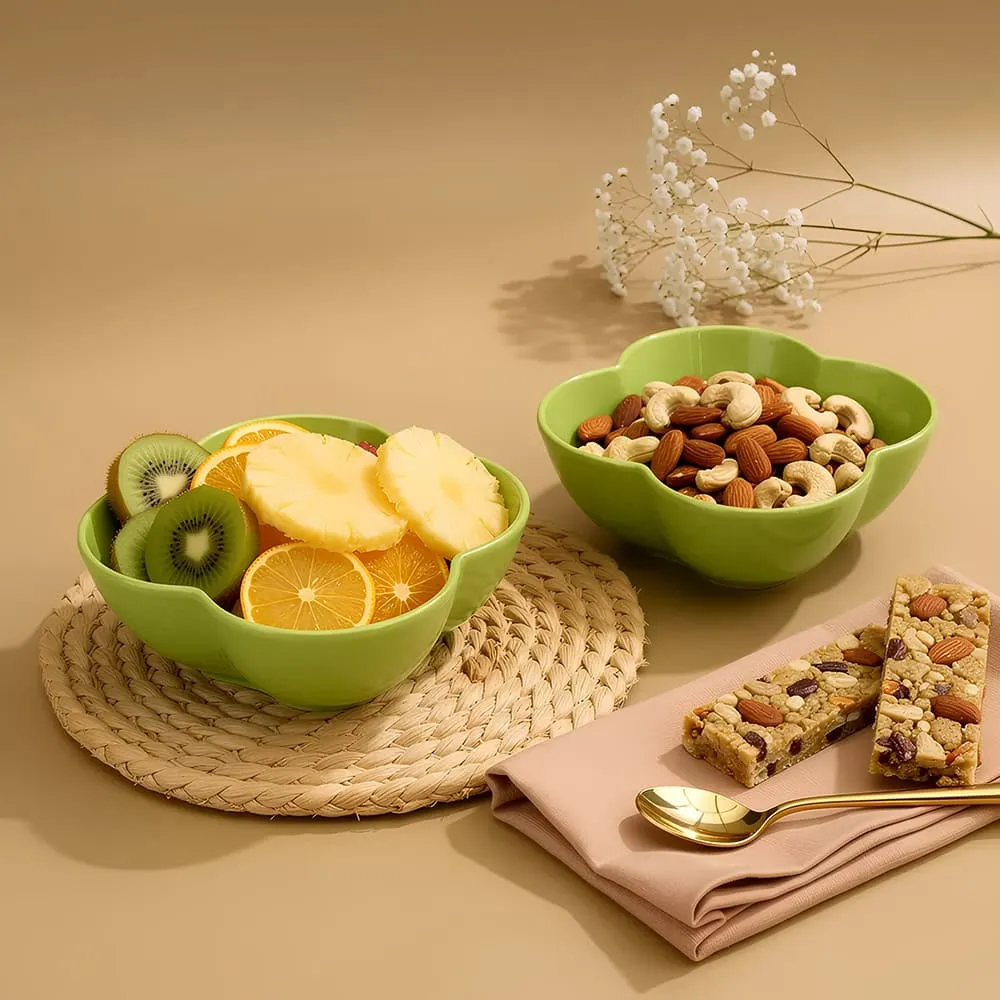 StarAndDaisy Hexa Serving Bowl Set of 2, 100% Melamine Microwave Safe Snack, Fruit & Dry Fruit Bowls – 600ml Green