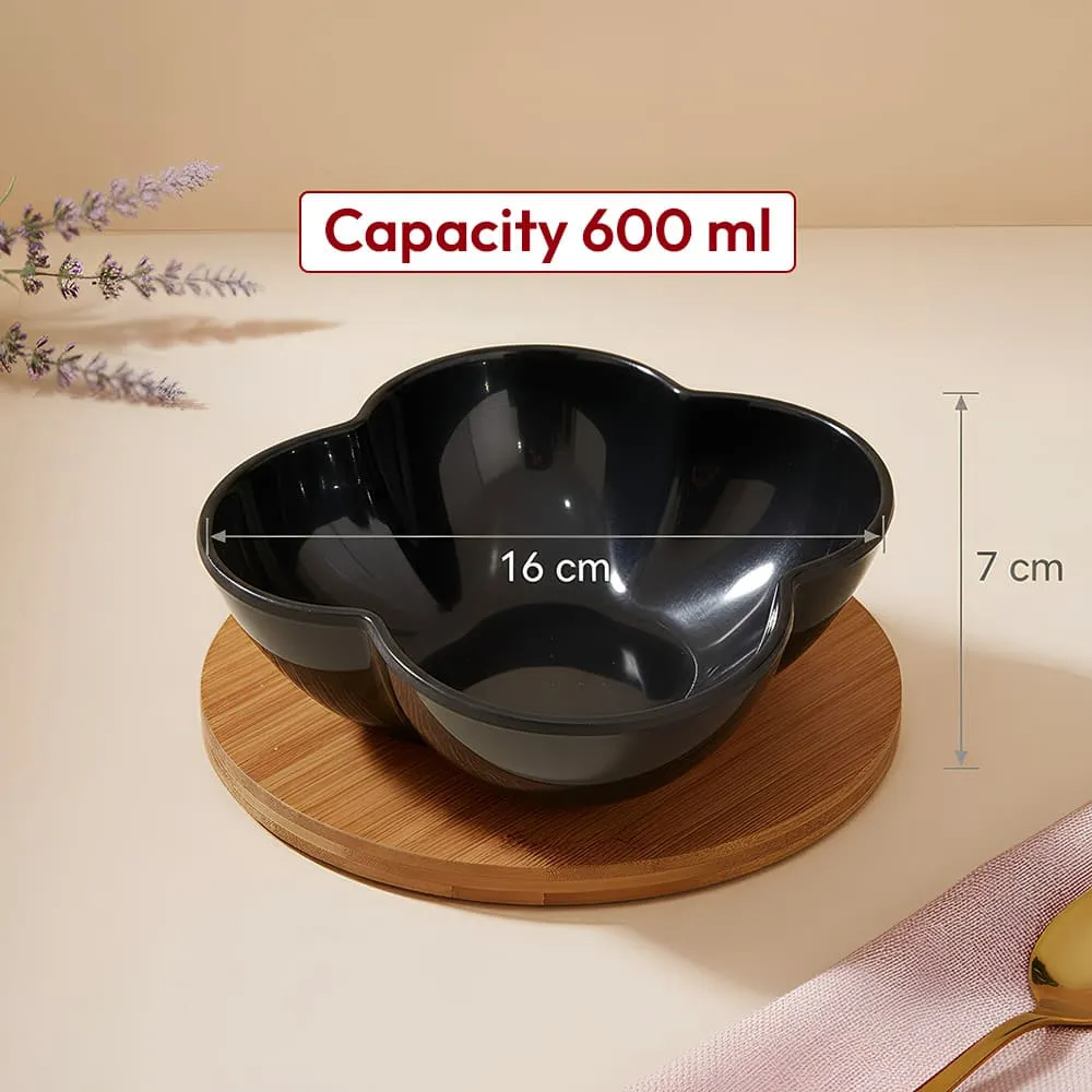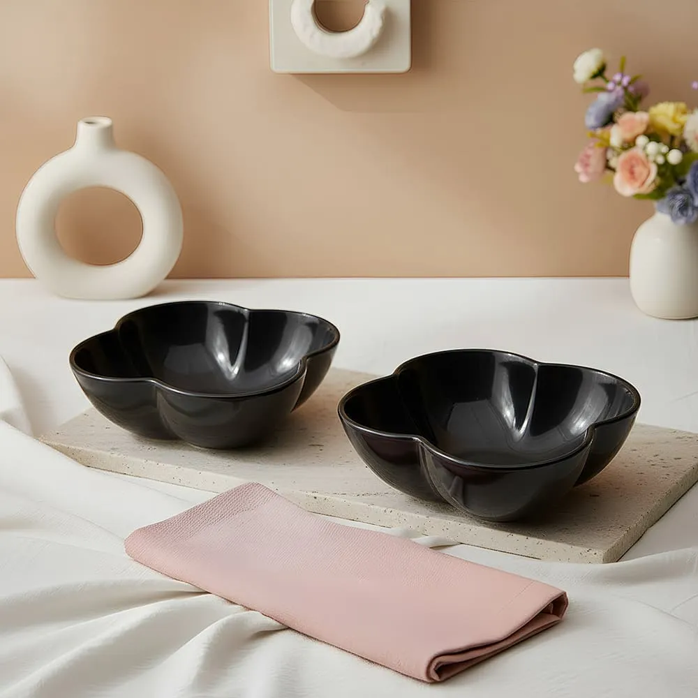 StarAndDaisy Hexa Shape Snack Bowl Set of 2 | Microwave Safe, Food Grade Multipurpose Serving Bowls – 600ml Black