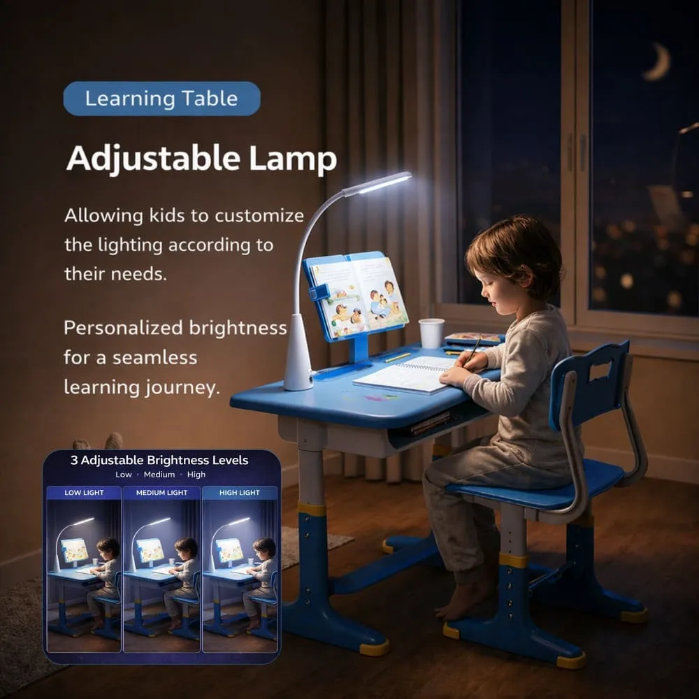 StarAndDaisy Kids Study Table with Table Lamp, Book Holder and Chair Set For Children 2 to 12 years – S01 Blue with Light