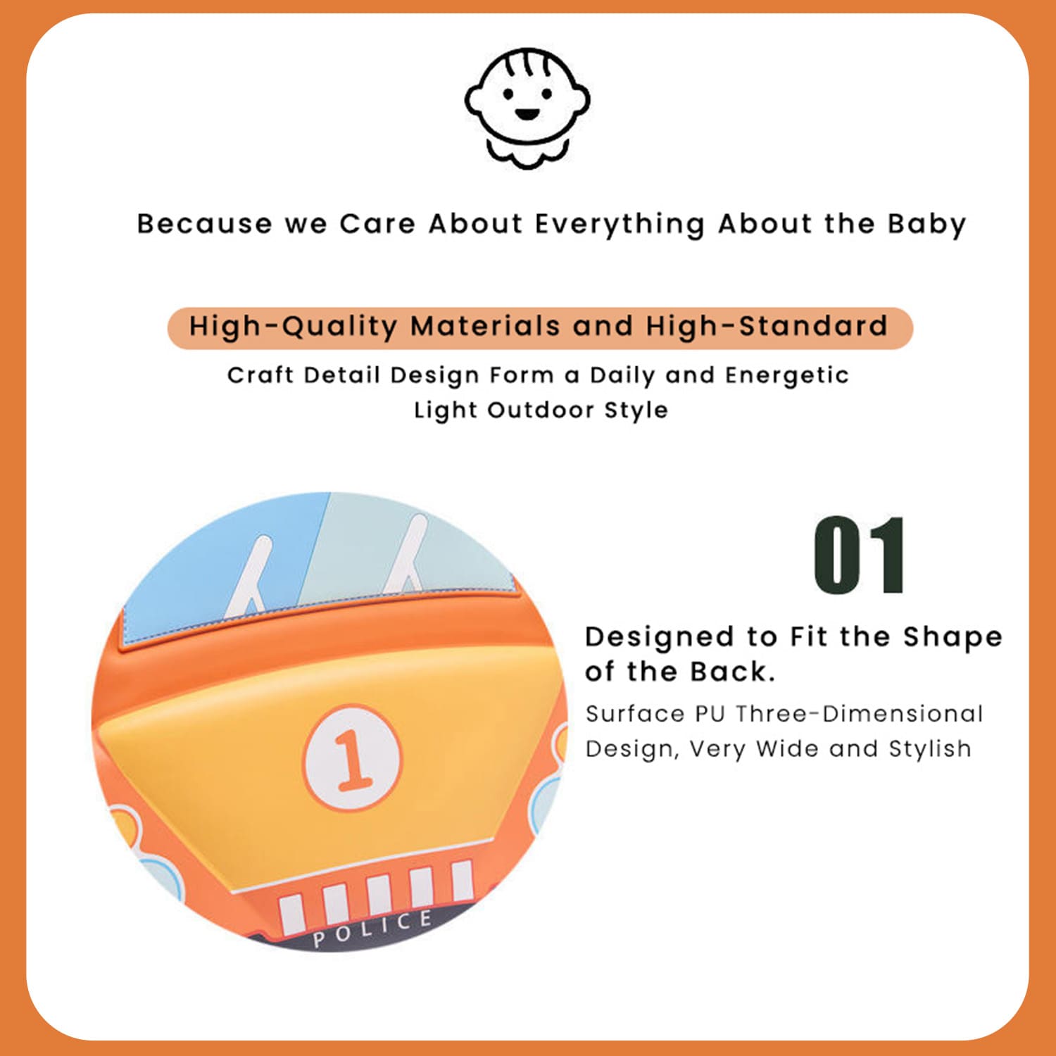 Design: A quirky and unique Toddler Backpack in lovely attractive color options in a Police car theme with windshield and headlights is sure to gather all the attention.
