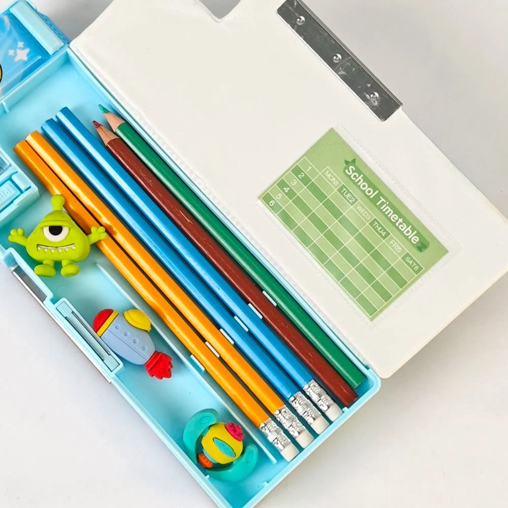 Uonibaby by StarAndDaisy Pop eye Magnetic Pencile Box, Built-in Sharpener, Multi-Compartment Storage and Fun 3D Pop-Eye Character for Kids School Stationery – Blue