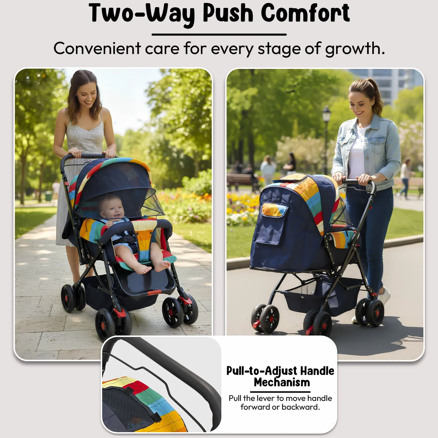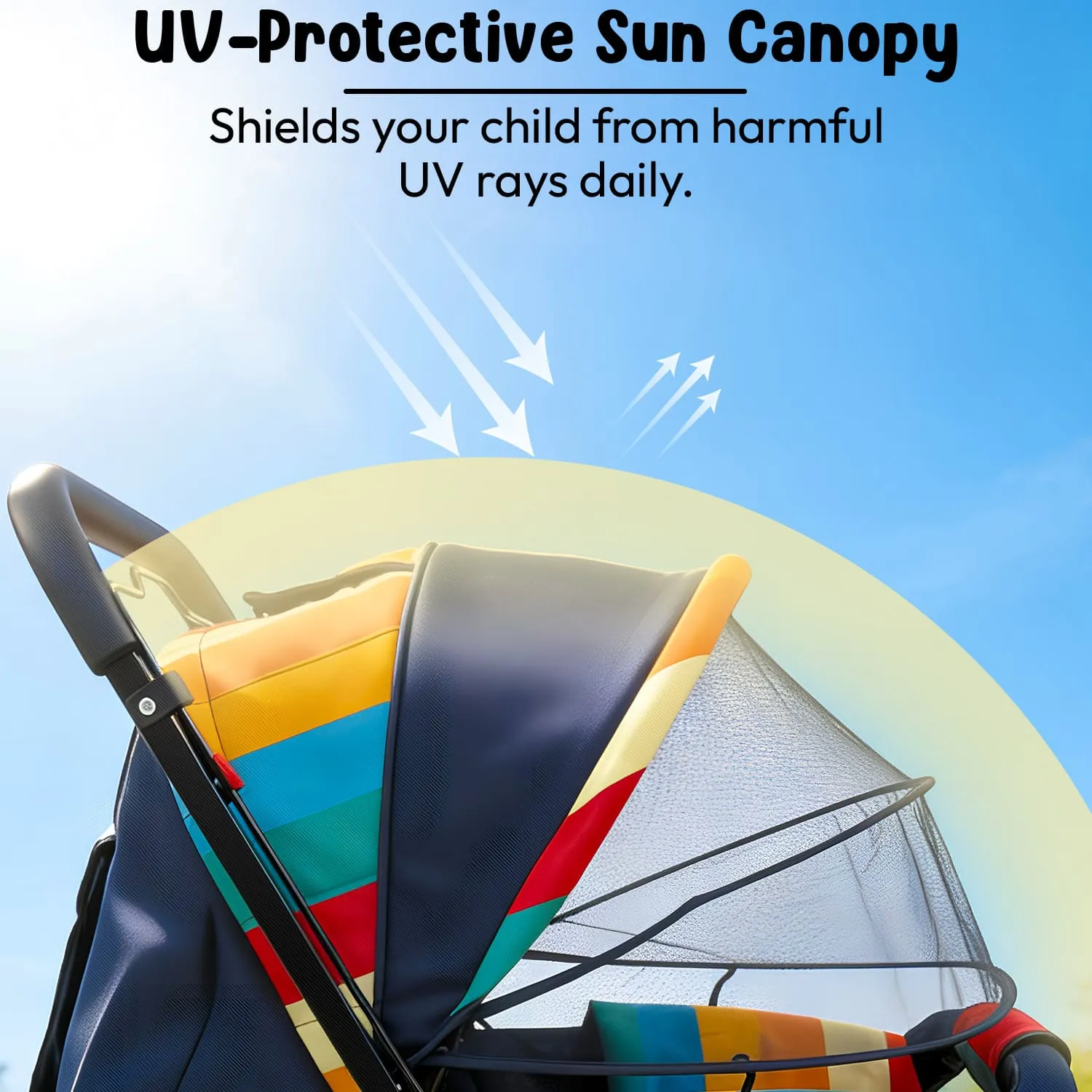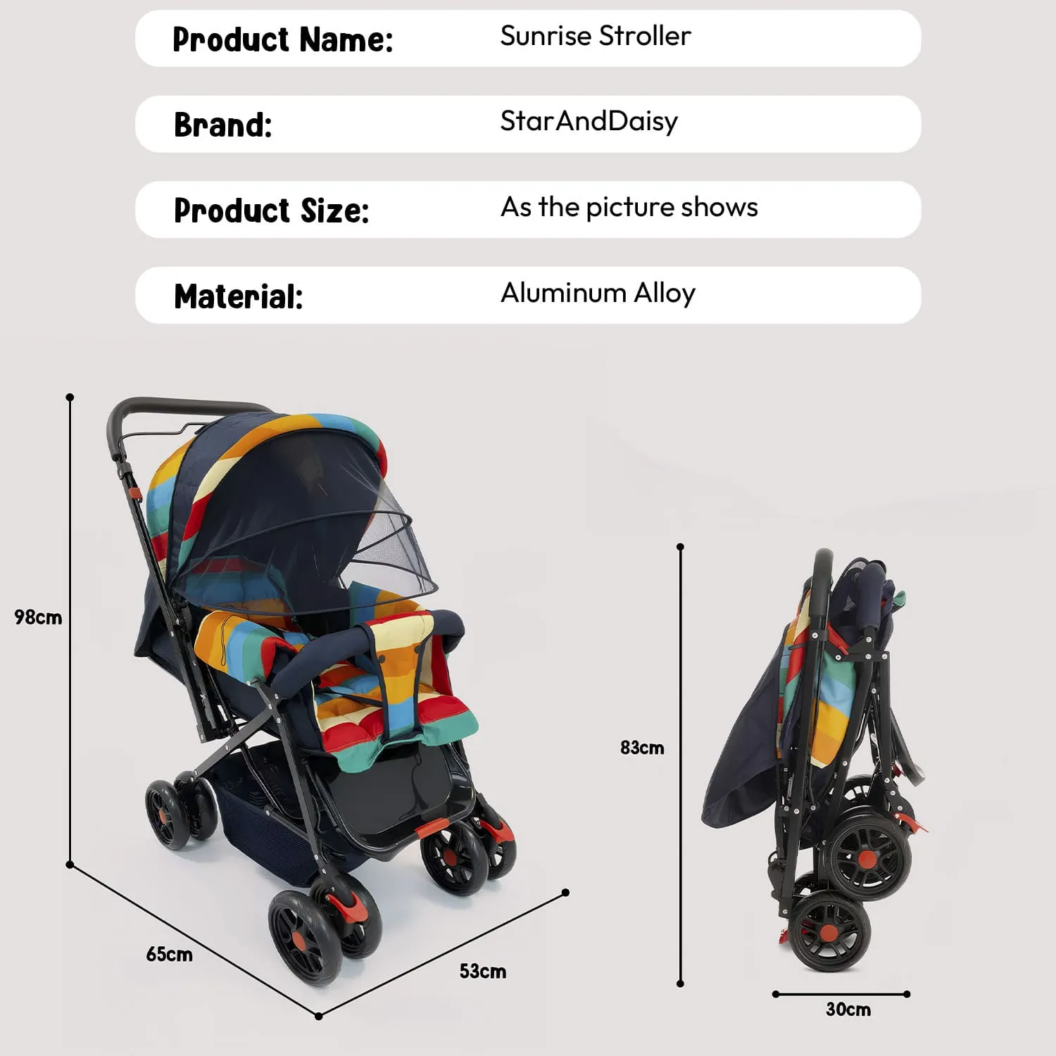 StarAndDaisy Sunrise Baby Stroller and Pram with Extended Mosquito Net and Ultra Soft Cushions & Reversible Handlebar (Rainbow Print)