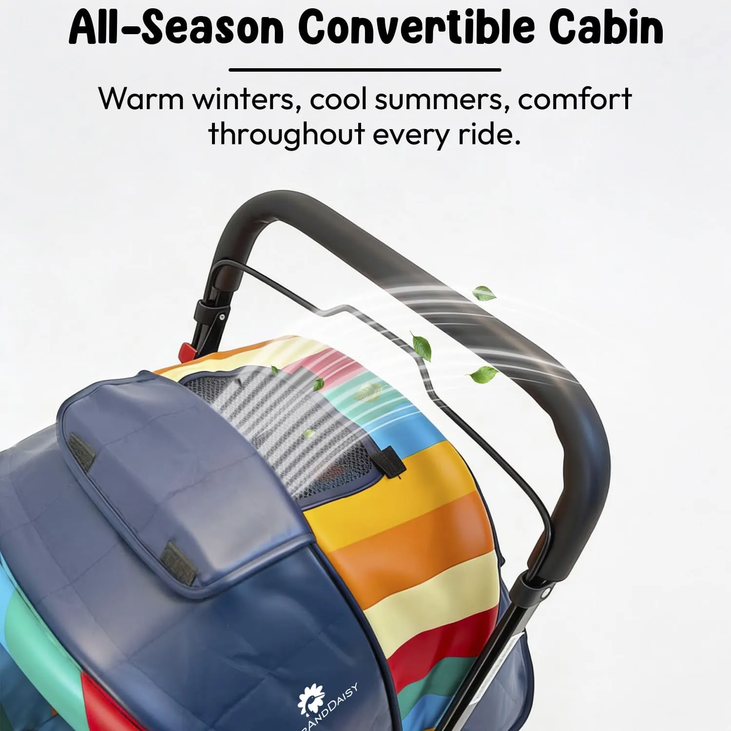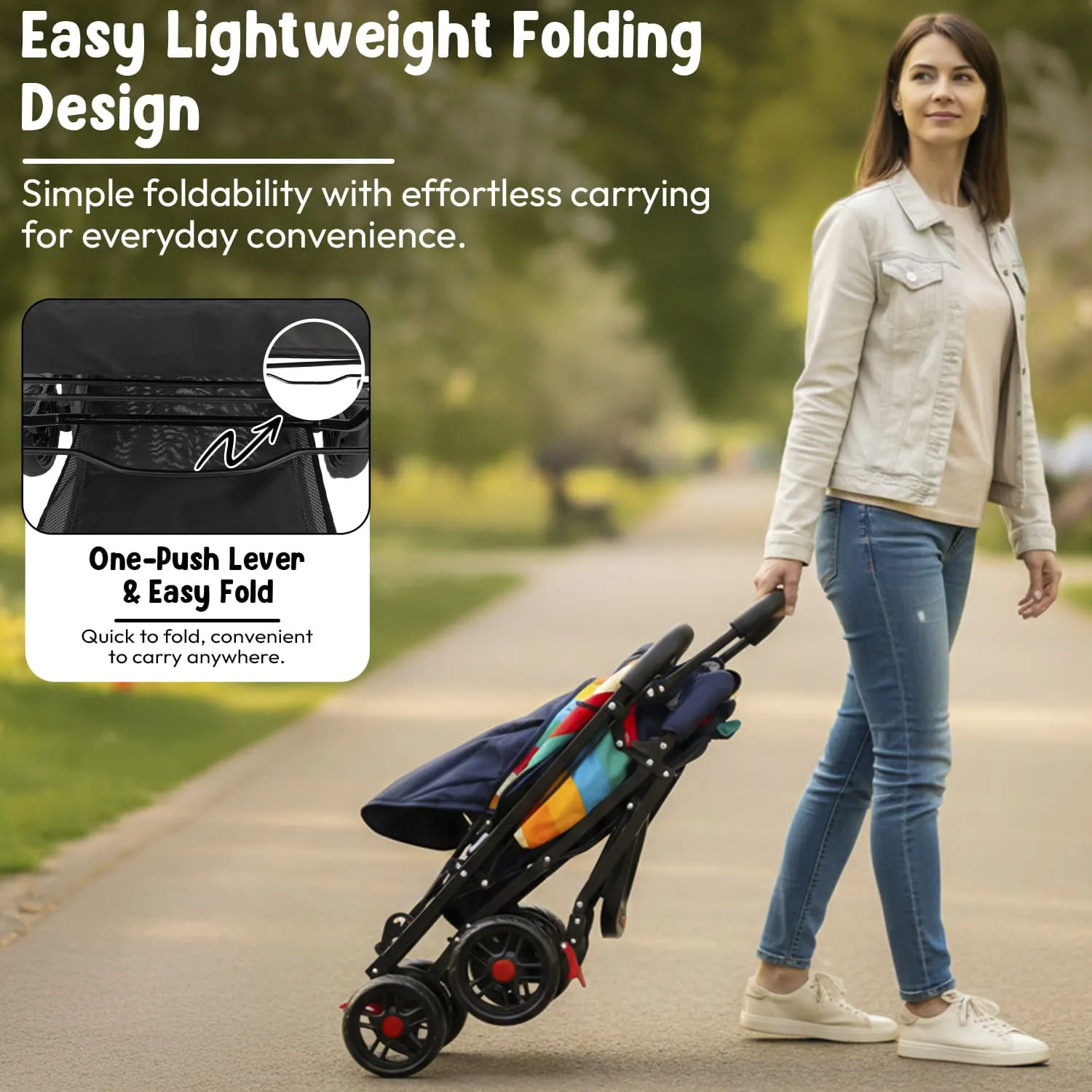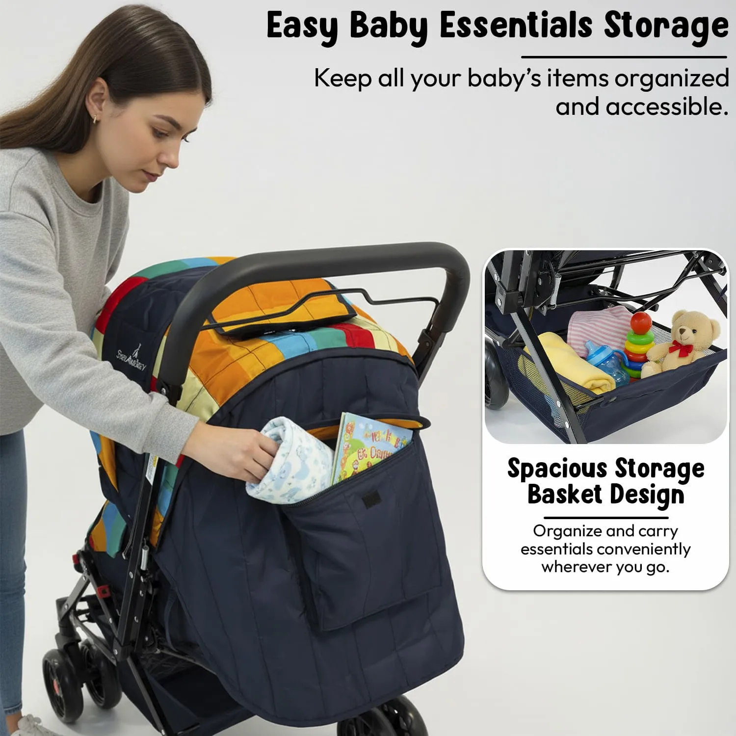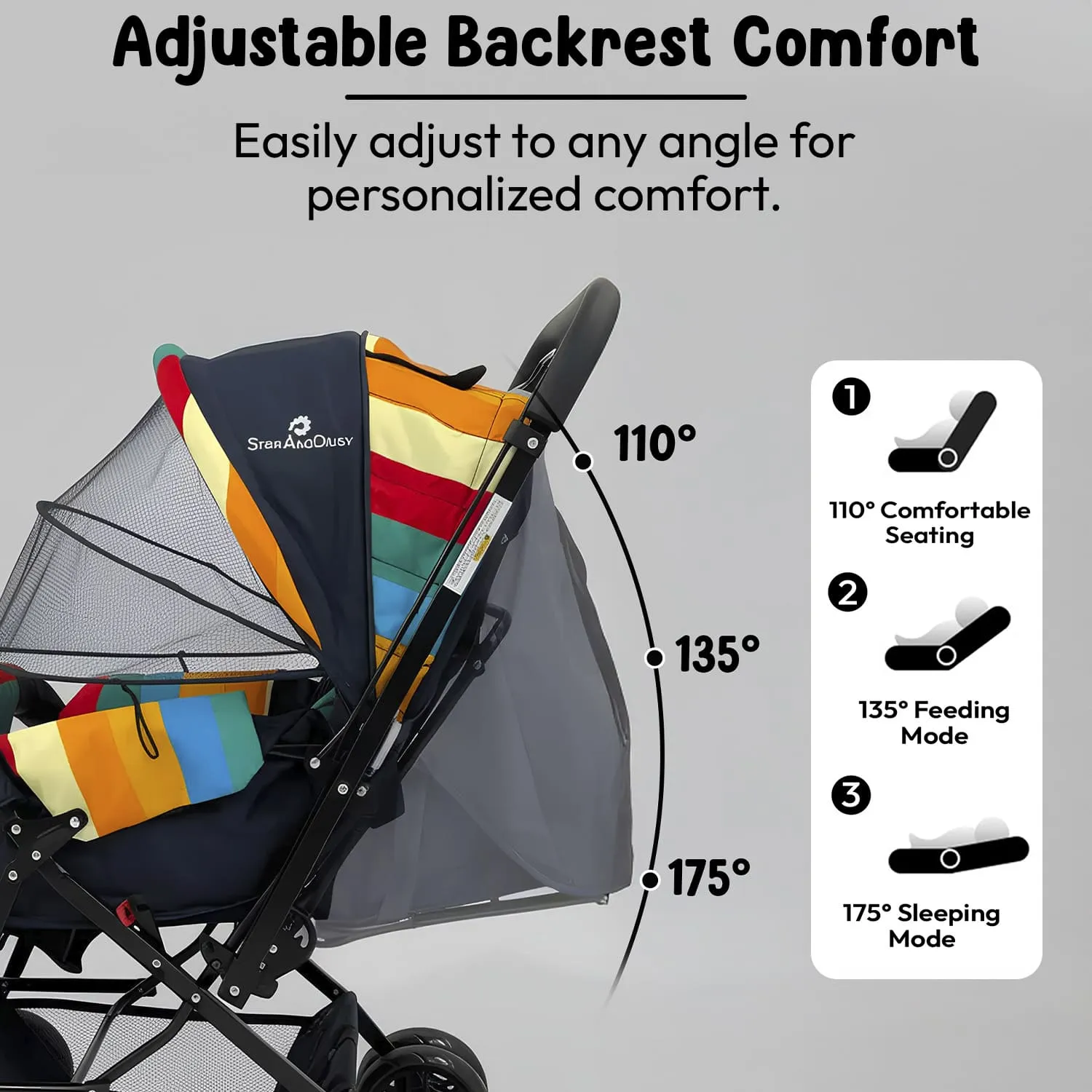 StarAndDaisy Sunrise Baby Stroller and Pram with Extended Mosquito Net and Ultra Soft Cushions & Reversible Handlebar (Rainbow Print)