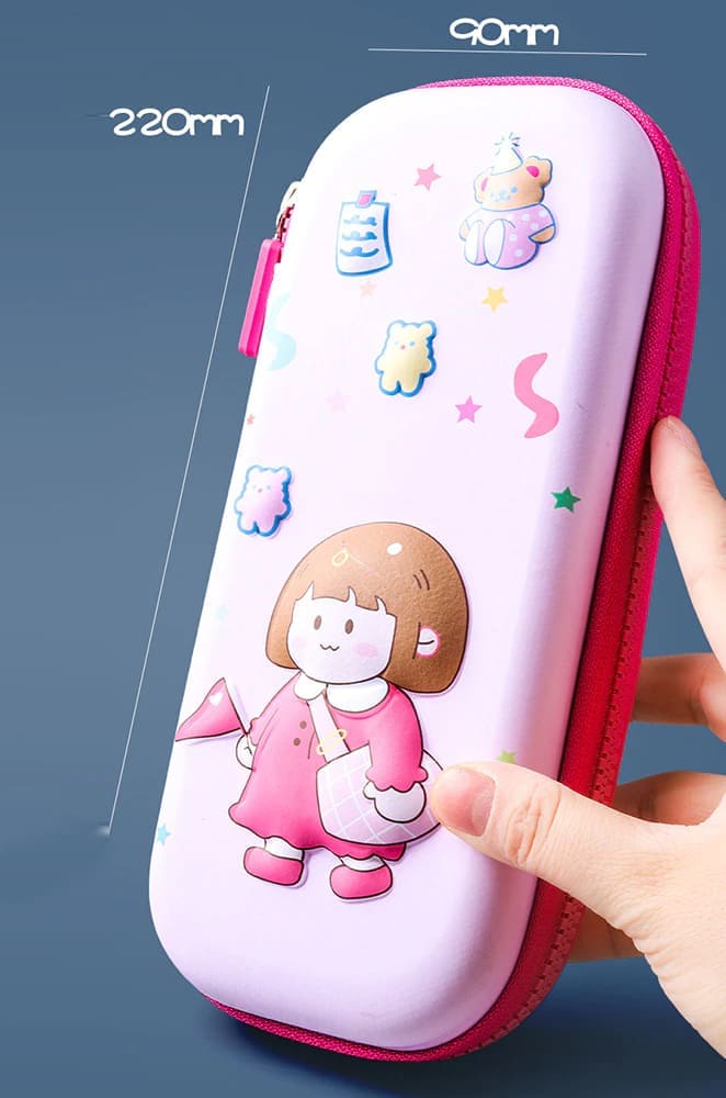 StarAndDaisy School Kids Canvas Cartoon Print Pencil Pouch (Green)