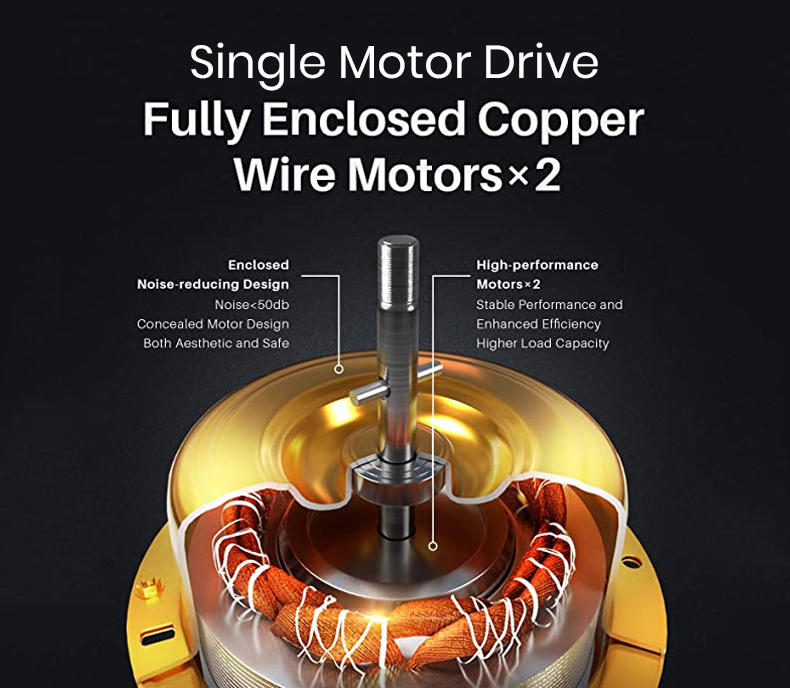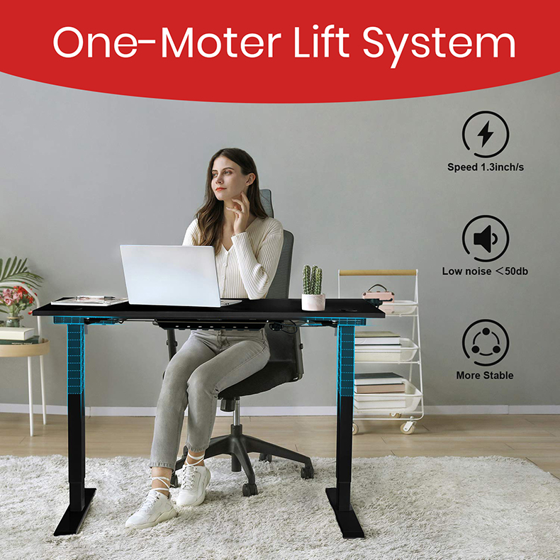 DUAL MOTOR ELECTRIC LIFTING SYSTEM: The powerful dual motor system running at a lift speed of 1”(Max) per second offers a smooth and stable desk height adjustment, from 27.7” to 46.9” (70.5cm-119cm). It is designed to hold up to 220LB with no wobble and make low noise (under 50 db) during height transition. The special valuable function is that the desk can automatically adjust reversely when it hits something during going down or going up, effectively protecting the tabletop from damage.