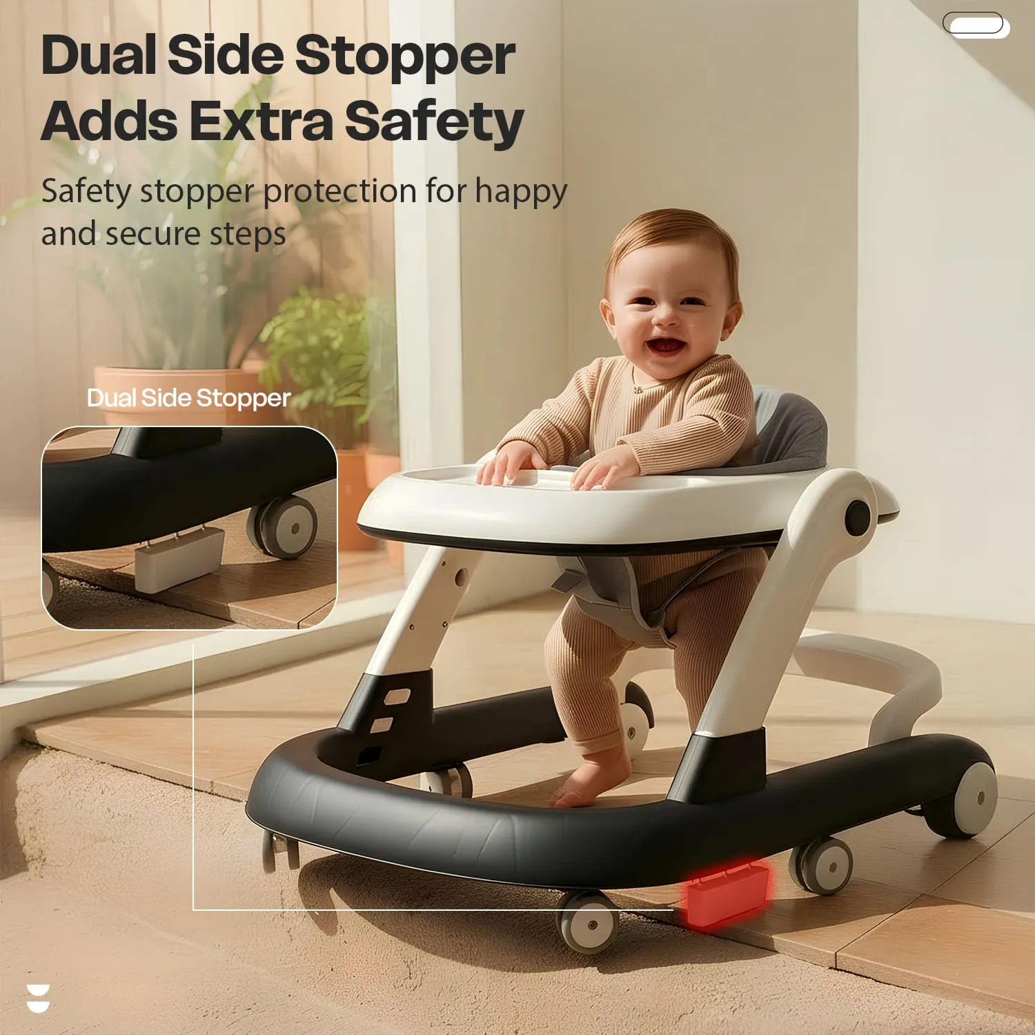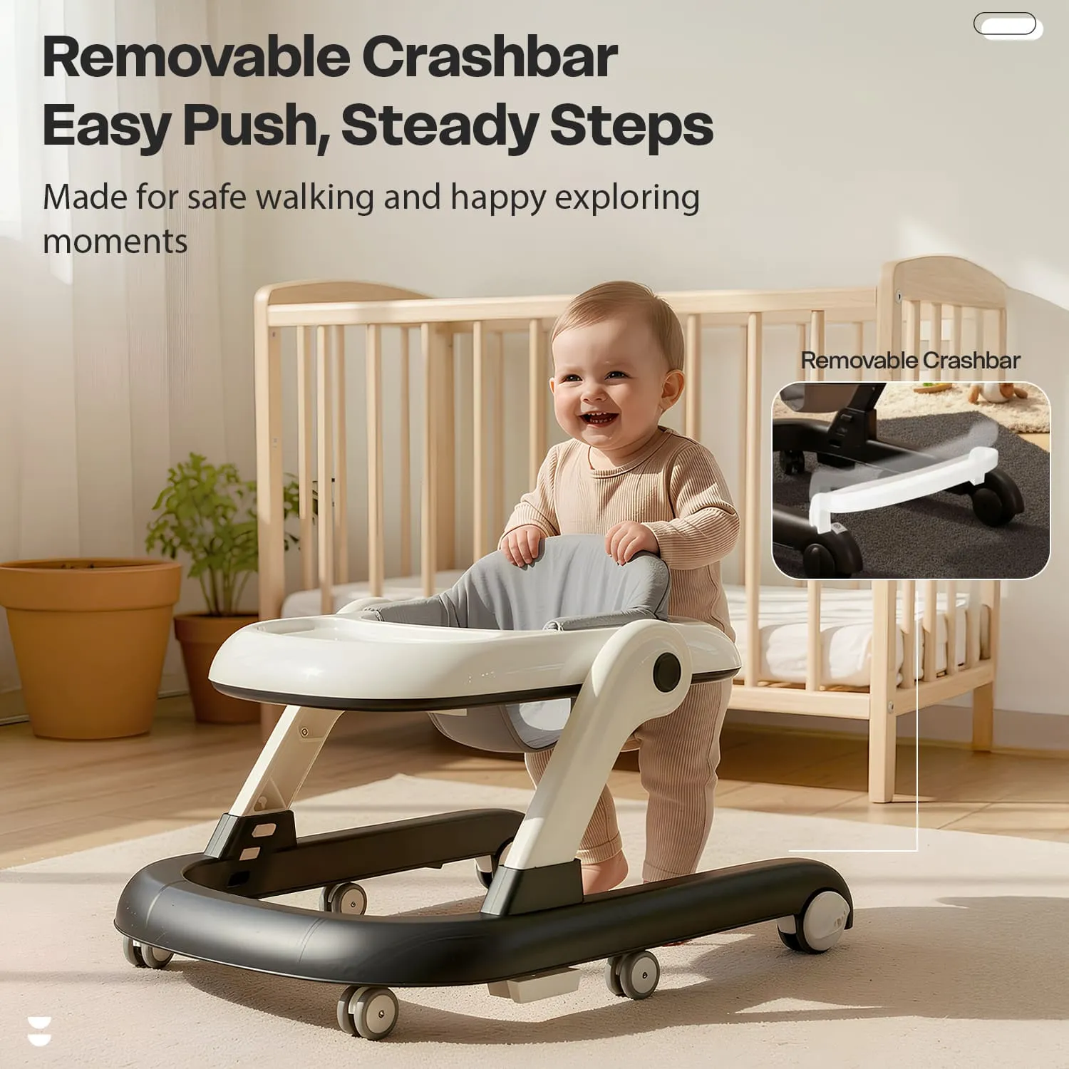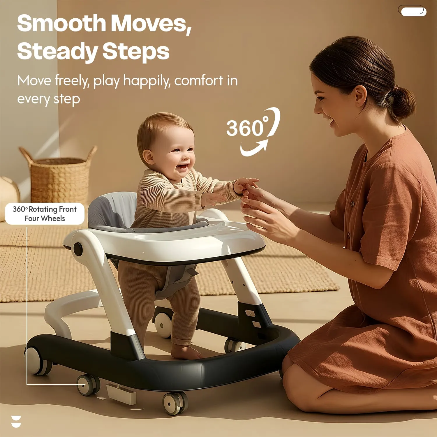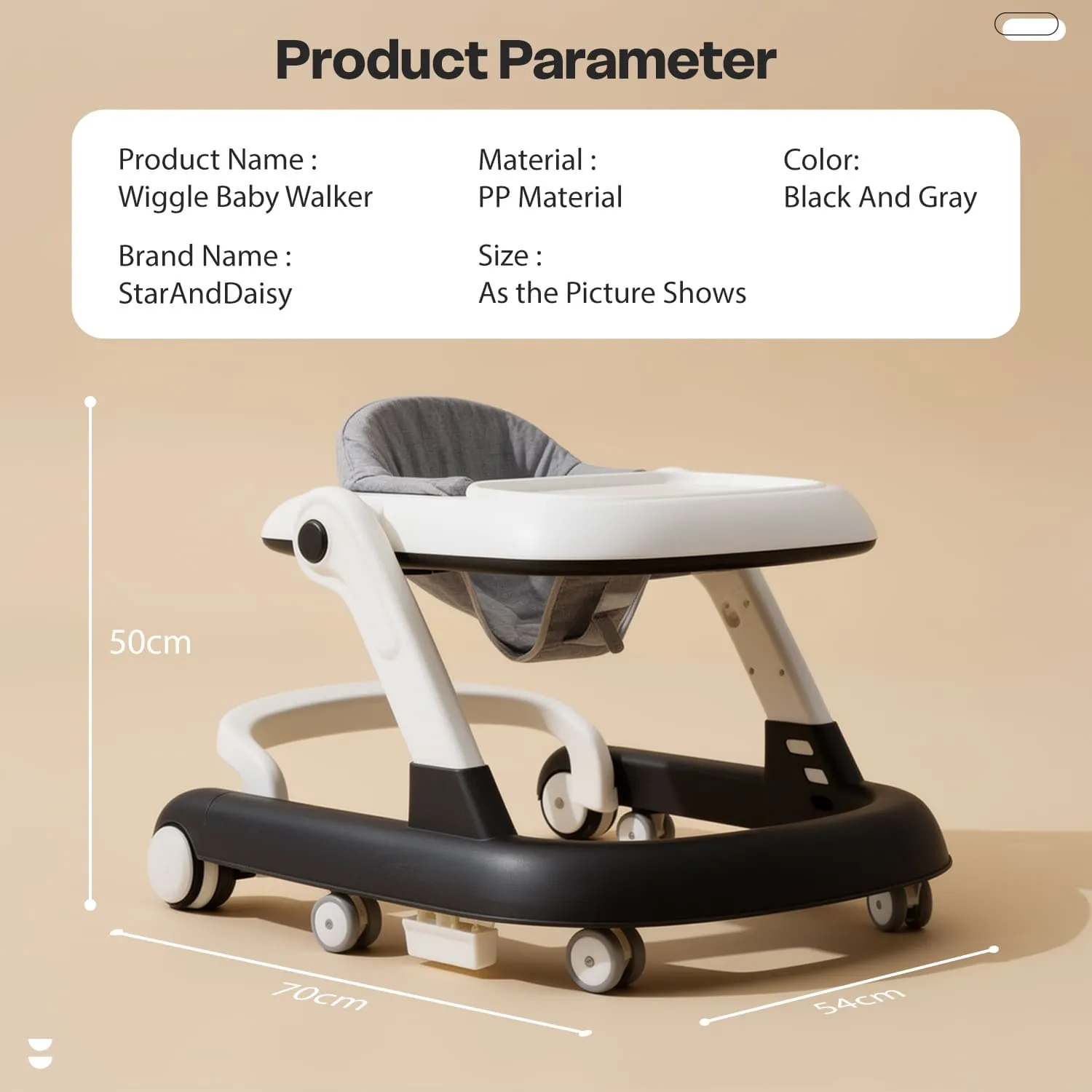 StarAndDaisy Wiggle Baby Walker with Adjustable Height, Foldable Design & Silent Wheels Without Toy Tray – Grey