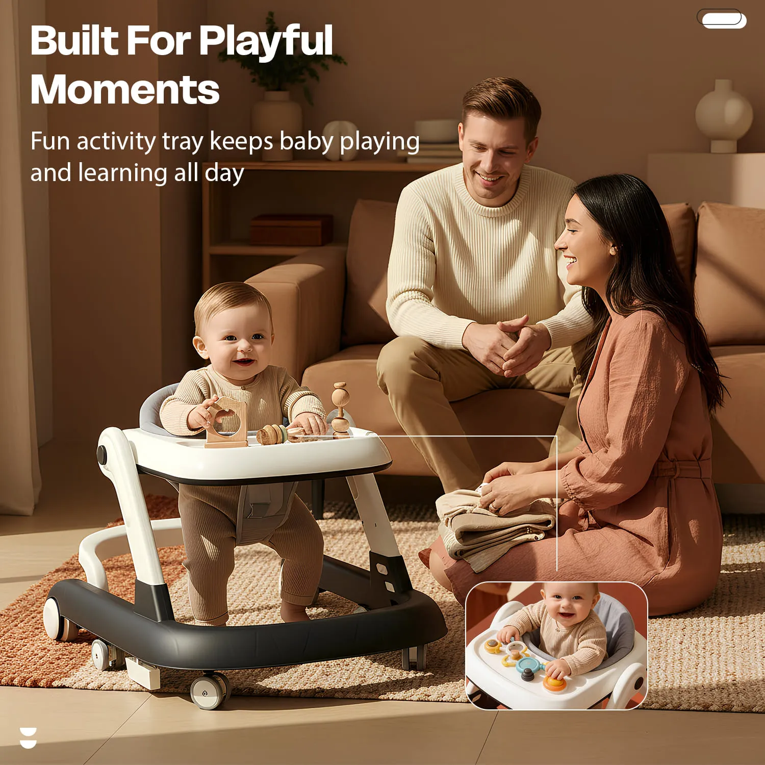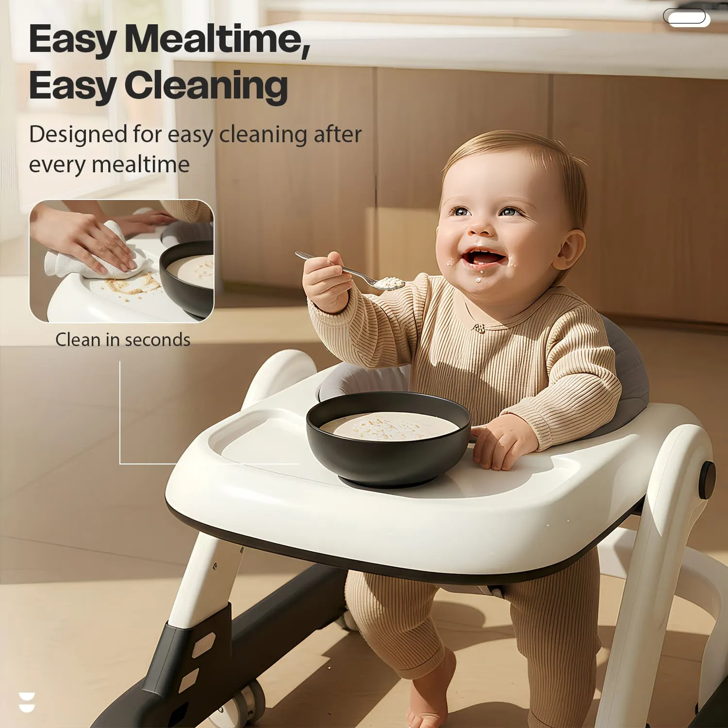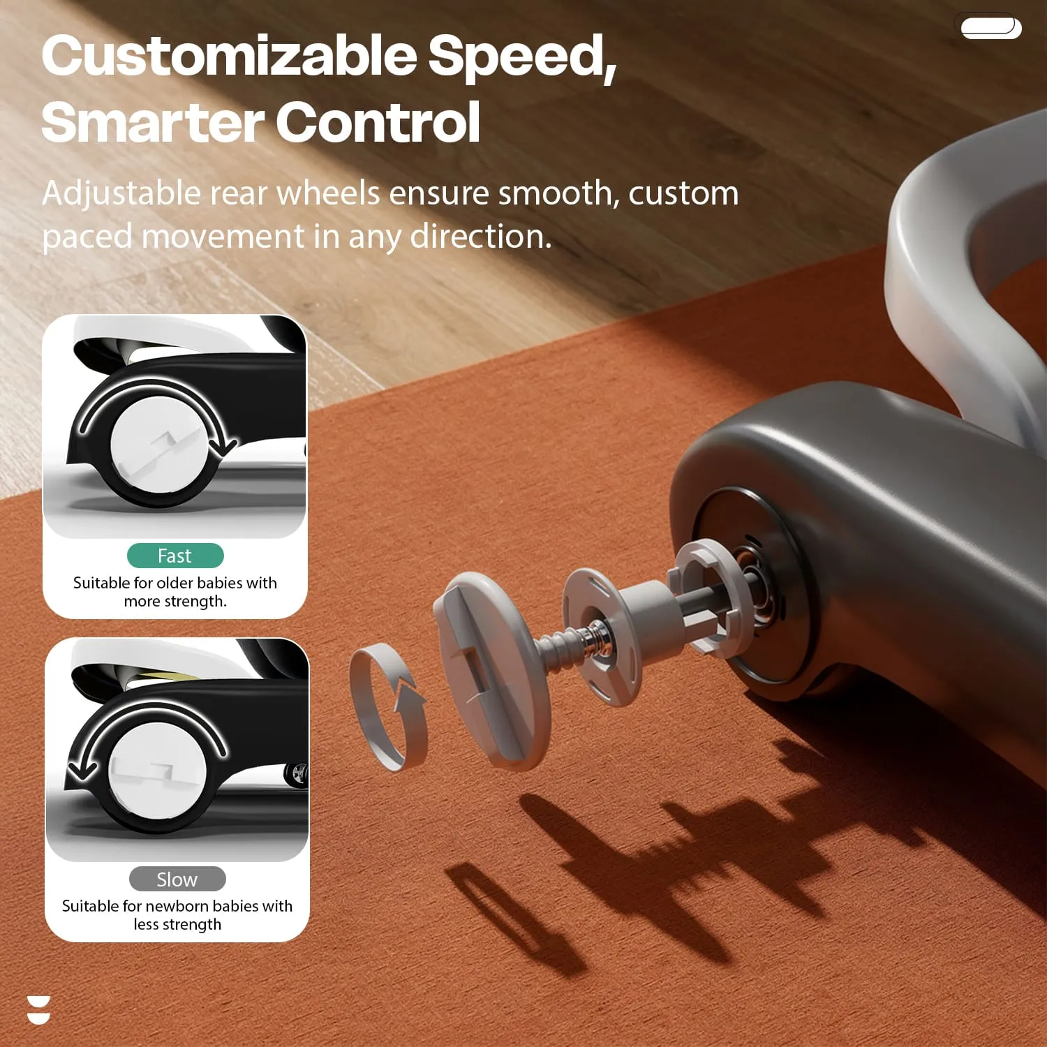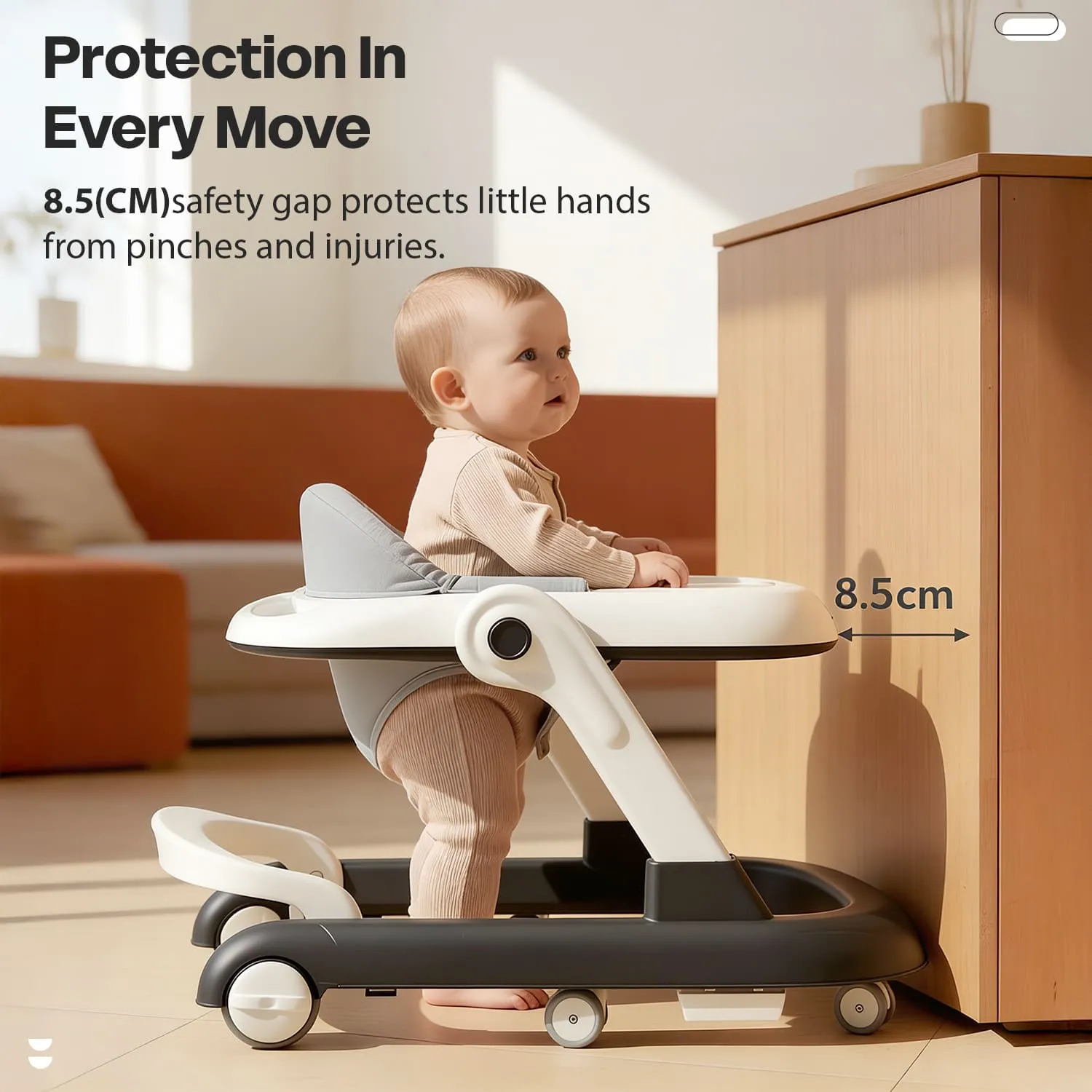 StarAndDaisy Wiggle Baby Walker with Adjustable Height, Foldable Design & Silent Wheels Without Toy Tray – Grey