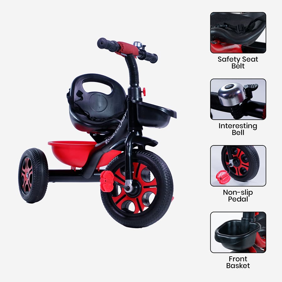 StarAndDaisy Wonder Tricycle Kids/Baby Tricycle Trike with Dual Storage Basket, Cushion seat, and seat Belt for Kids Boys Girls Age Group 1.5 to 5 Years (Red)