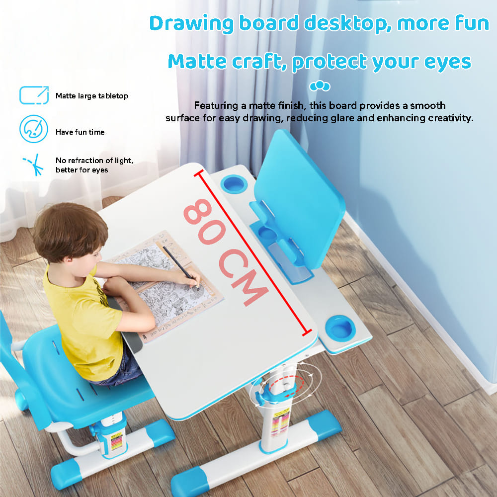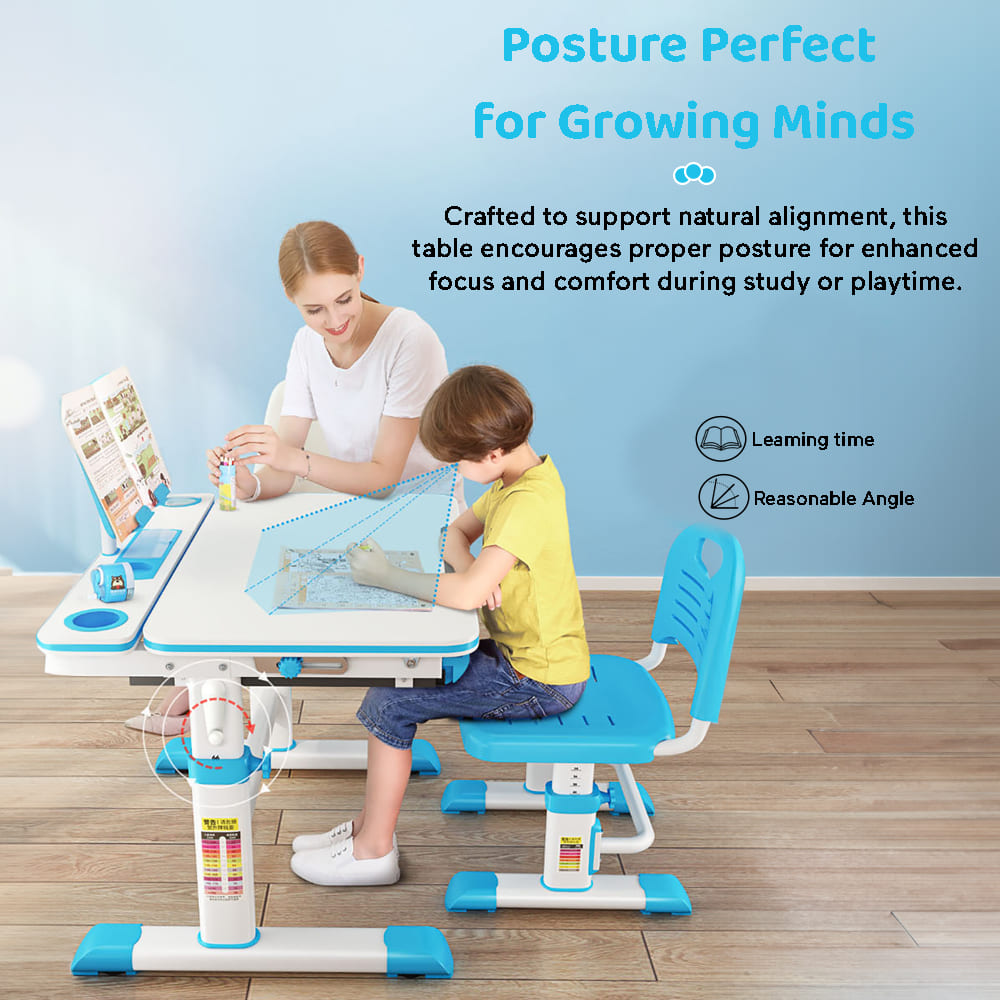 StarAndDaisy Study Table Chair Set for Kids with Adjustable Height, Smart Storage, Flexible Desk, and Book Holder – 80A Blue