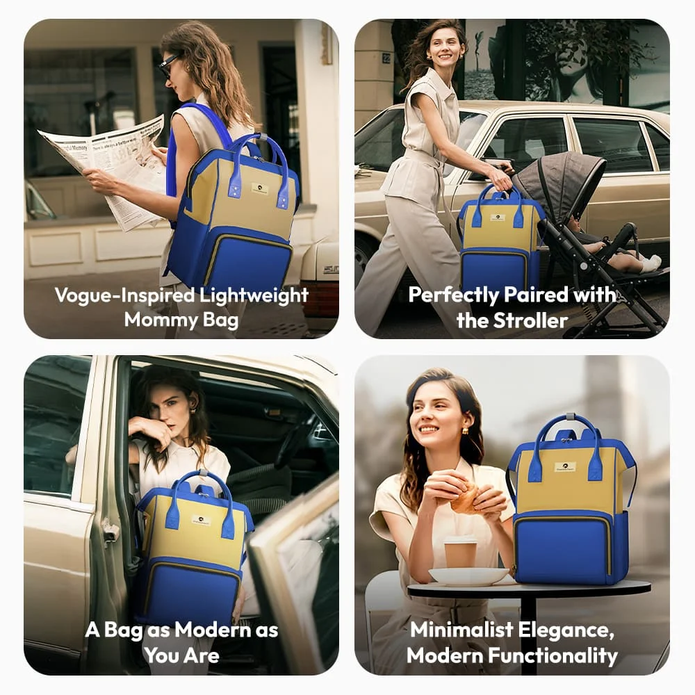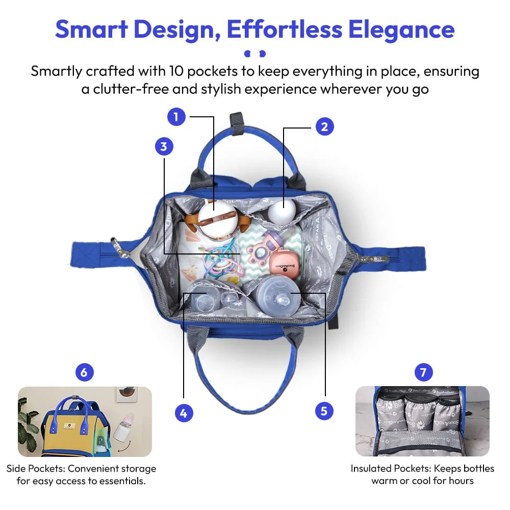 StarAndDaisy Stylish Diaper Bag with Multi-Compartments, Insulated Bottle Pocket – Blue Yellow
