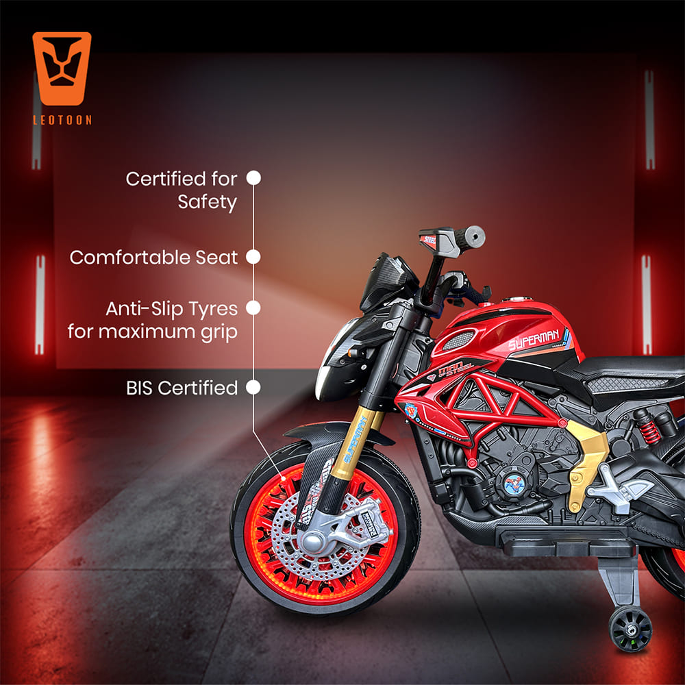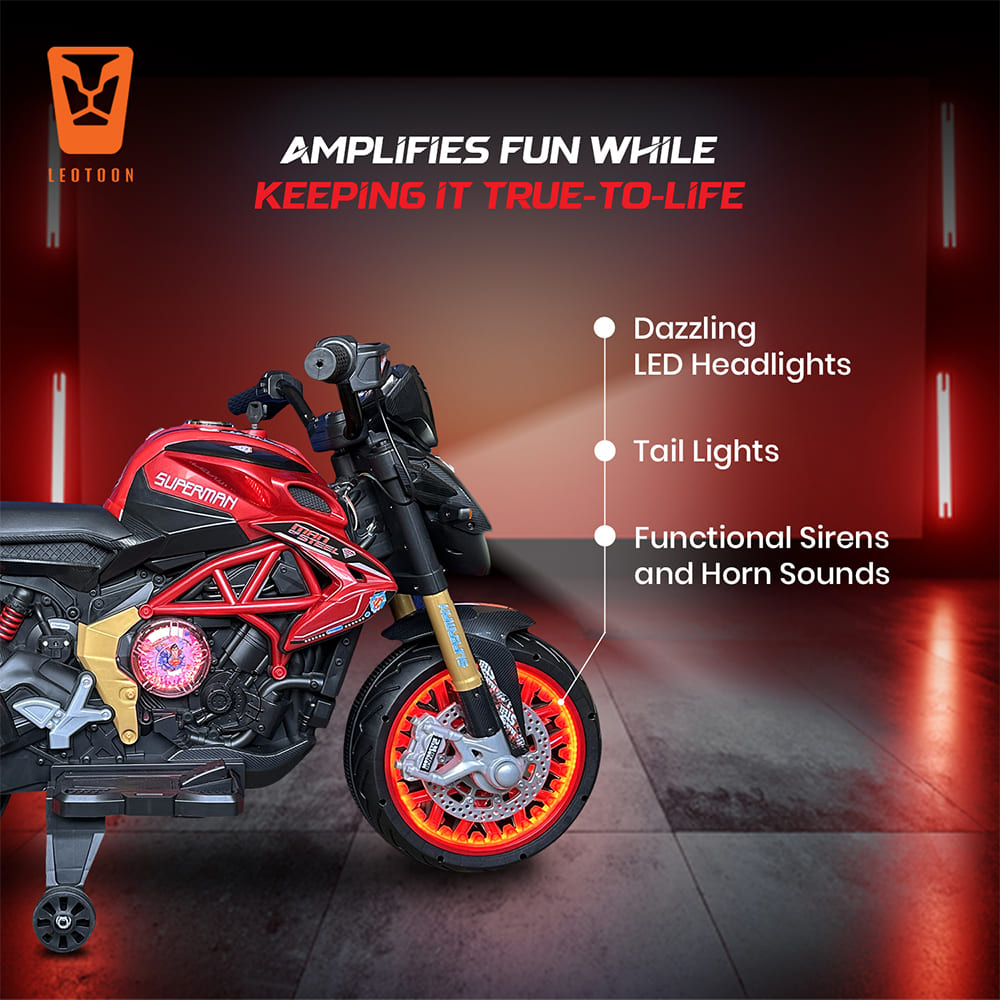 StarAndDaisy Superman Electric Bike for Kids, Battery Operated Mini Bike with Lights and Sound, Motorcycle Toys for Boys