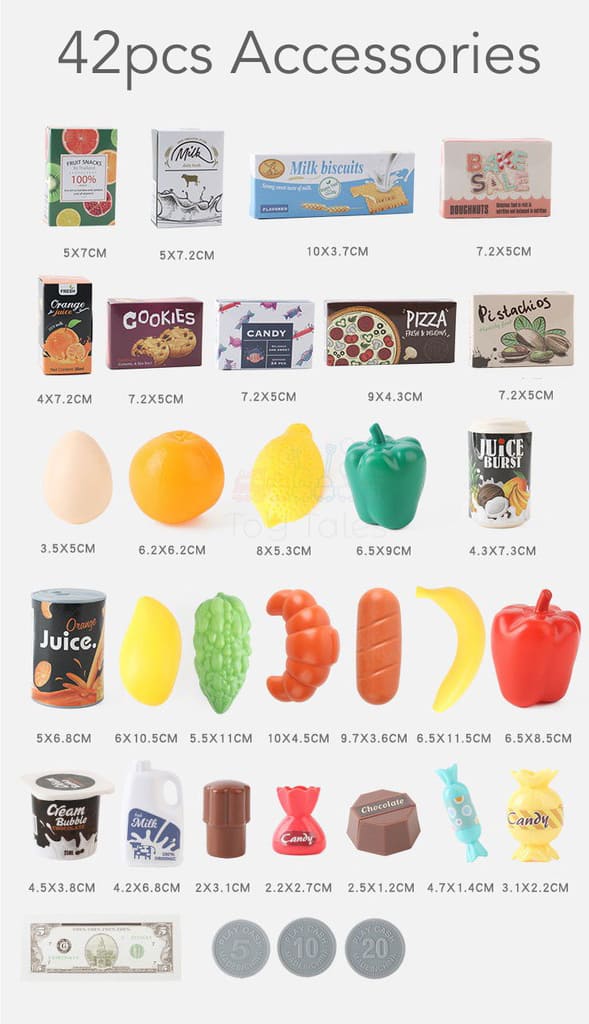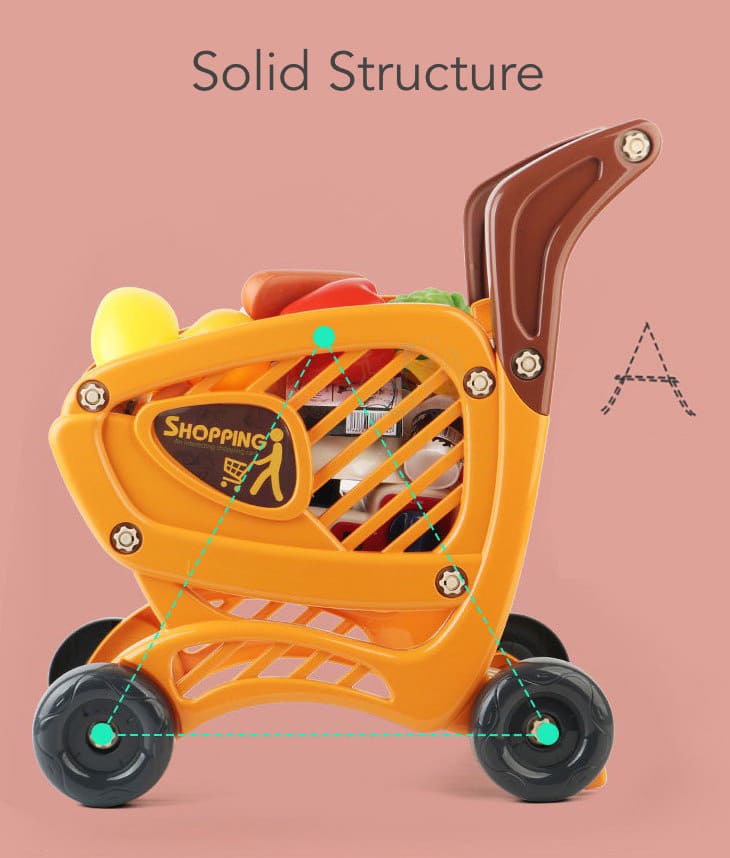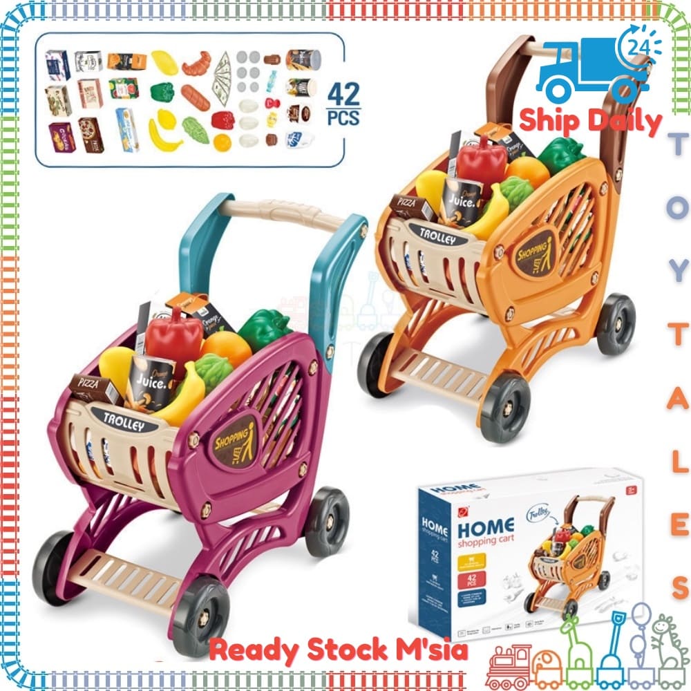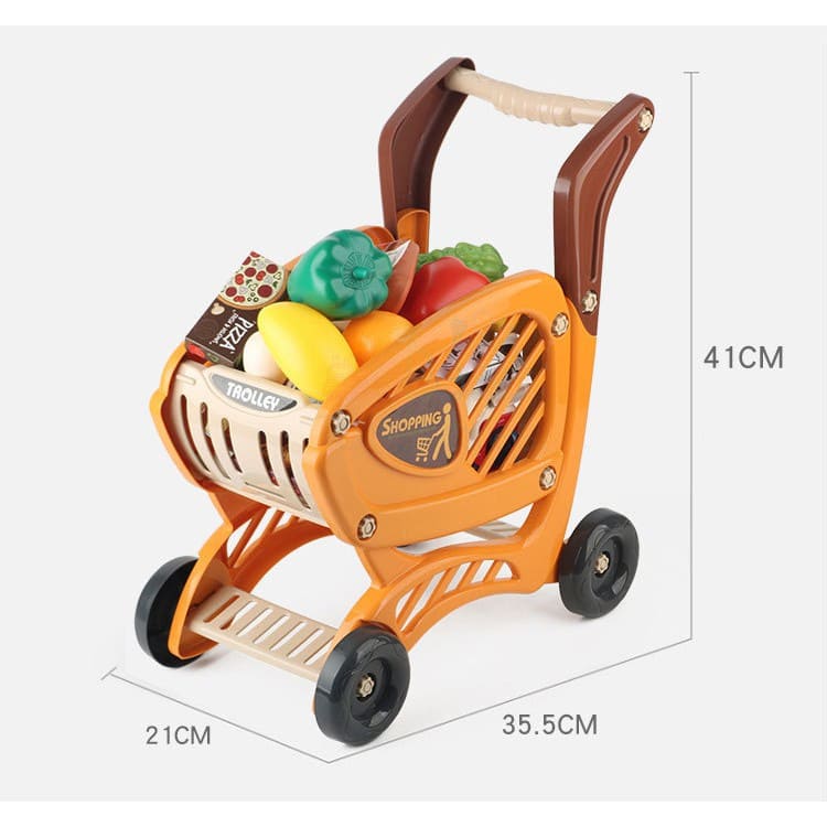 Supermarket Trolley Pretend Play Toys Kids Role Push Shop Store Shopping Cart Cashier Cooking (42 Pcs. Accessories)