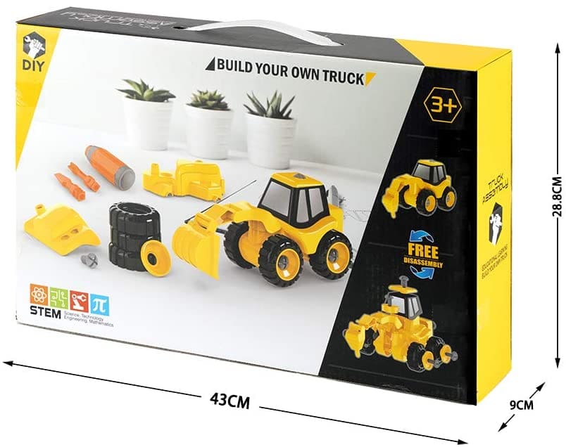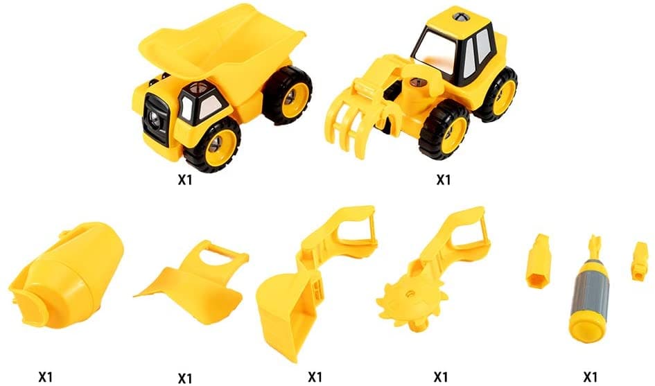 Take Apart Construction Vehicles 2 in 1 – STEM Building Set with 6 Detachable Interchangeable Attachments Engineering Assemble Toy Set for Kids Assembly Learning Play Kit
