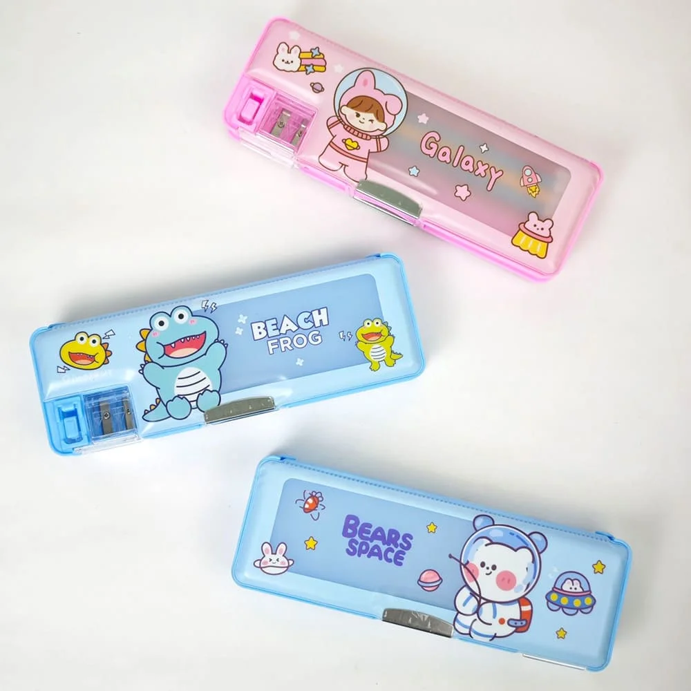 Uonibaby by StarAndDaisy Trendy Pencil Box for Kids, Durable and Spacious Stationery Organizer, Multi-Compartment School Pencil Case – Beach Frog Blue